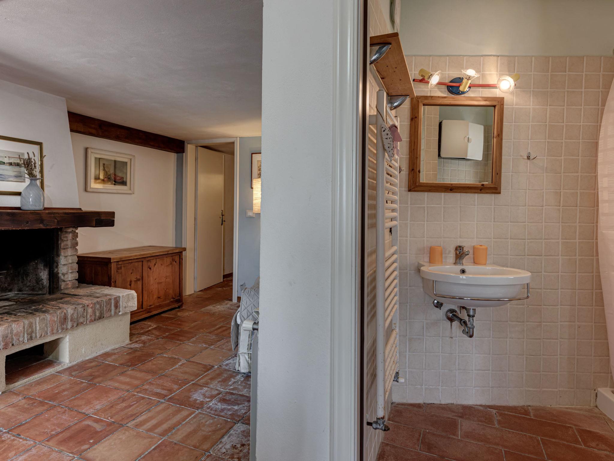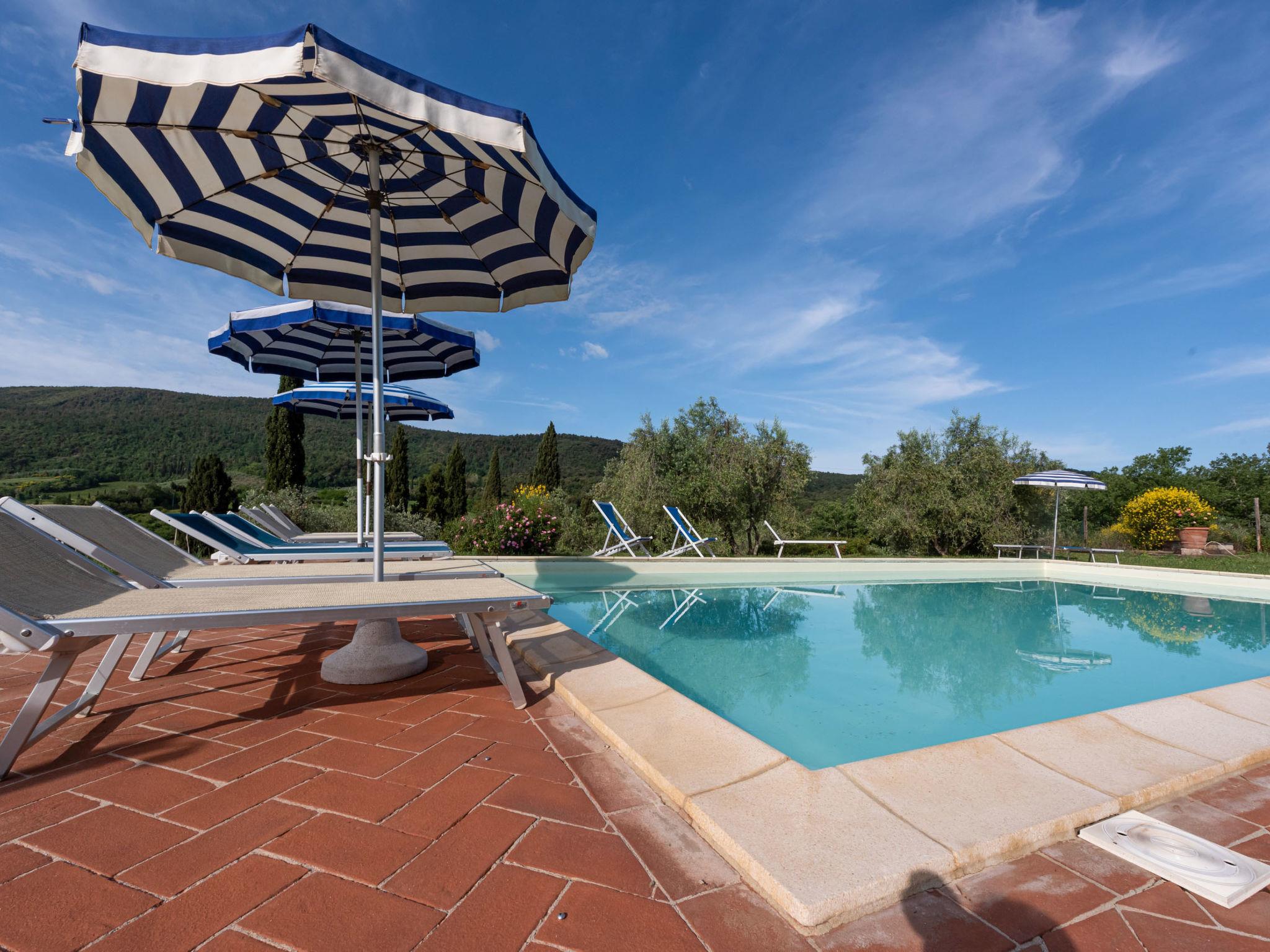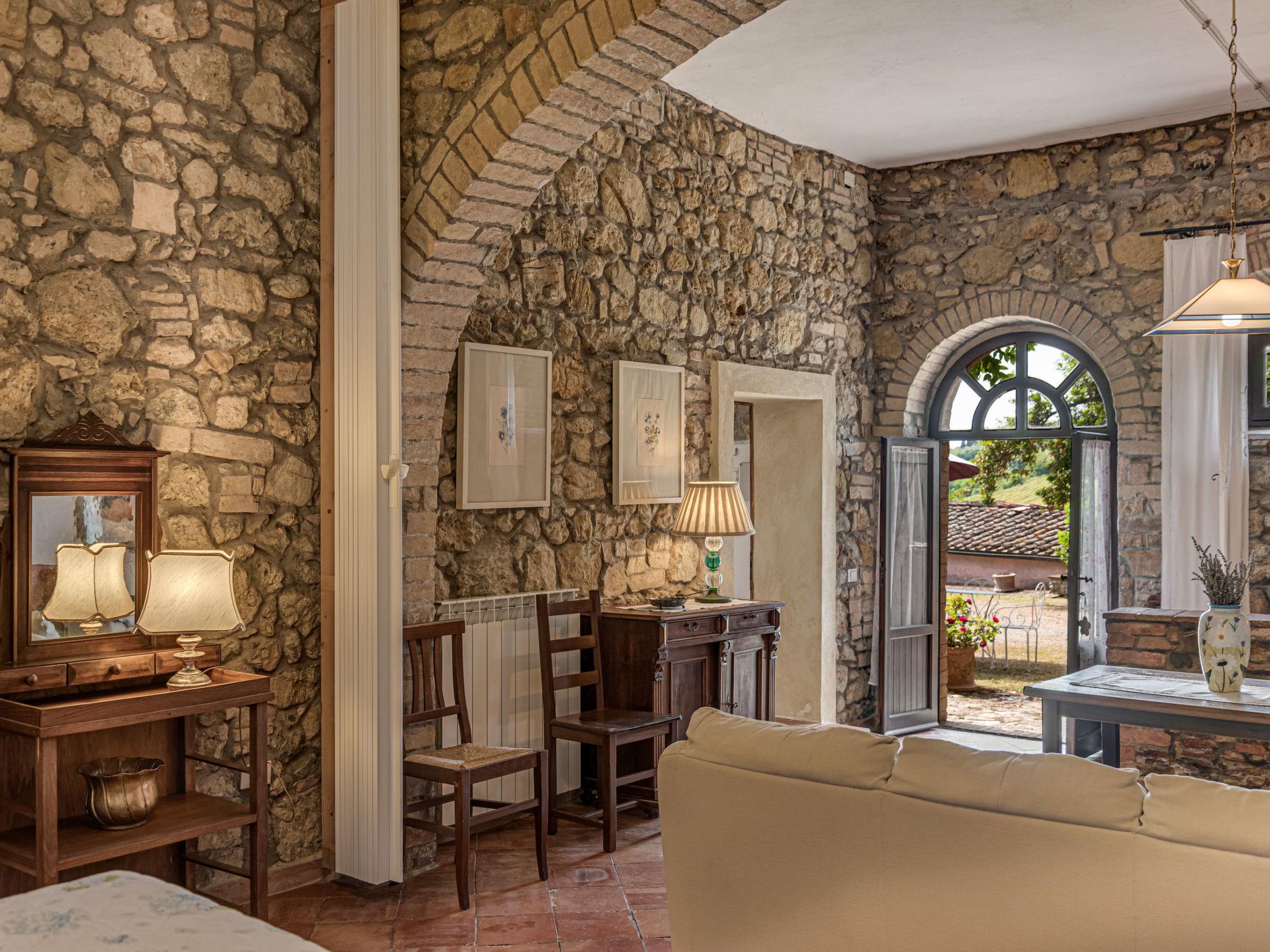 Cosy, rustic agricultural estate "Le Sodole", surrounded by meadows, fields and vineyards. 2 houses in the residence. 5 apartments in the residence. Property composed of main house and outbuilding 4 km from the centre of San Gimignano, 13 km from the centre of Poggibonsi, 53 km from the centre of Siena, in a sunny position on top of a hill, 70 km from the sea, in the countryside. For shared use: property 10 ha, large terraced garden (not fenced) with plants and trees, natural garden, swimming pool (12 x 7 m, depth 120 cm, seasonal availability: 15.May. - 15.Oct. pool opening hours: 09:00-19:00) with salt-electrolysis pool-cleaning system. Outdoor shower, terrace, barbecue, pool maintenance by the owner/gardener. In the complex: reception, WiFi, washing machine (for shared use, extra). 600 m long bumpy motor access (via unmade road). Parking on the premises. Shop 2 km, grocery 2 km, supermarket 4 km, restaurant 4 km, bakery 2 km, bicycle rental 4 km, bus stop 5 km, railway station "Certaldo" 11 km, sandy beach "Cecina Mare" 70 km, indoor swimming pool 13 km. Nearby attractions: Certaldo 11 km, Volterra 27 km, Firenze 61 km, Pisa 74 km. Please note: car recommended. Suitable for families, baby equipment (included). Groups of teenagers on request only. Local sale of farm products. All houses/apartments are individually designed/furnished. Obligation to wear bathing caps.