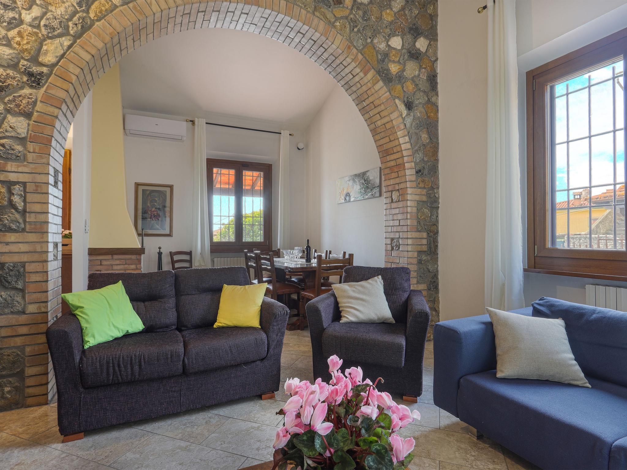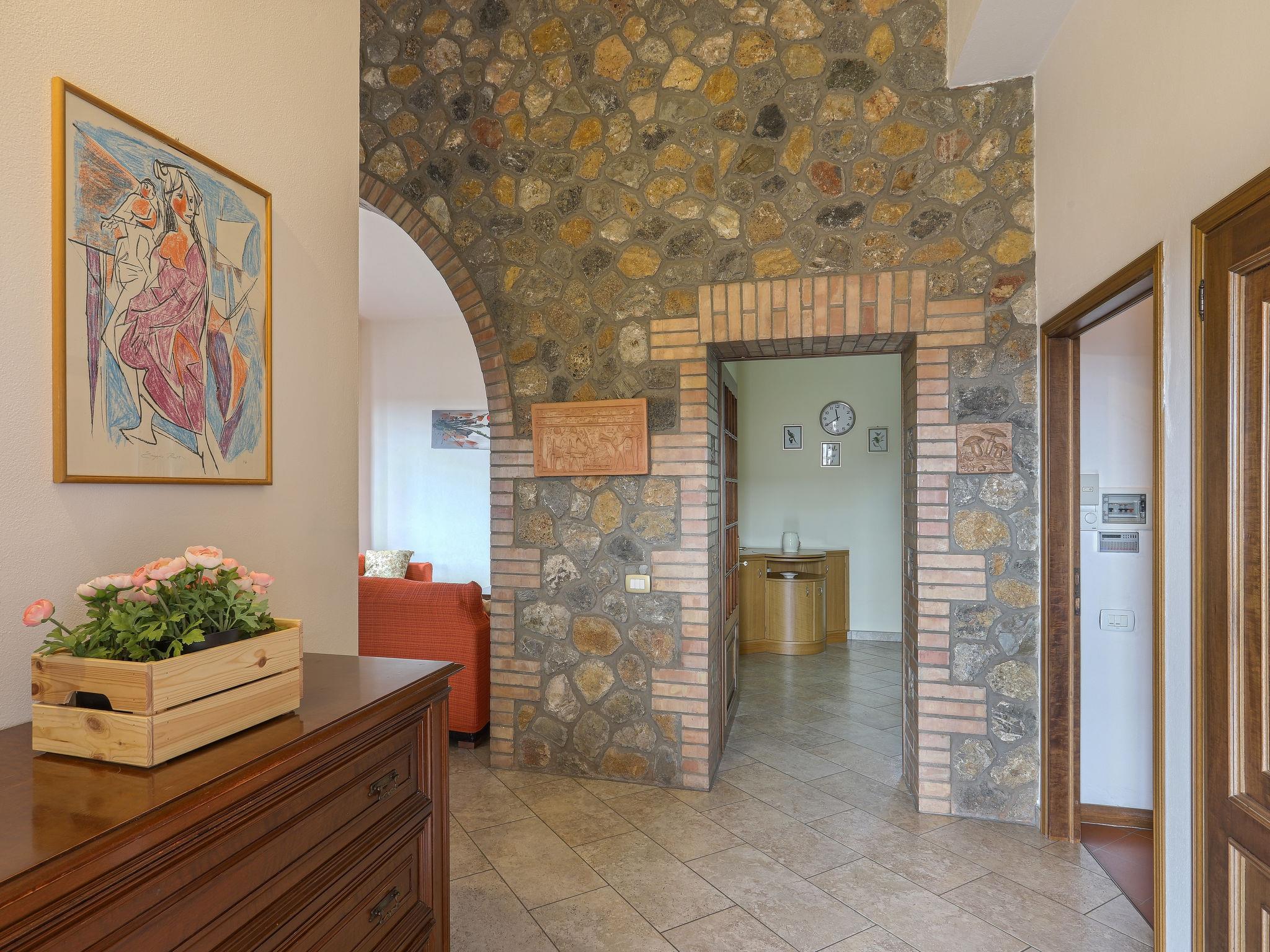"Casa Alfredo", 4-room house 120 m2 on 2 levels. Spacious and bright, comfortable and cosy furnishings: open large living/dining room with open-hearth fireplace and TV (flat screen), air conditioning. 2 double bedrooms, each room with air conditioning. Large kitchen-/living room (oven, dishwasher, Gas stove, 5 gas rings, toaster, kettle, microwave, electric coffee machine) with dining table and air conditioning. Shower/bidet/WC, hydro massage shower. Upper floor: 1 double bedroom with shower/bidet/WC and air conditioning. Heating (extra), air-conditioning. Natural stone floors. Terrace roofed. Terrace furniture, balcony furniture, deck chairs, covered balcony, box-room. Very beautiful panoramic view of the countryside. Facilities: washing machine, iron, mosquito net, children's high chair, baby cot for up to 2 year olds, hair dryer. Internet (WiFi, free). Parking (fenced 3 cars). Please note: suitable for families. Non-smokers only. Maximum 1 pet/ dog allowed. Private entrance. The pool mentioned in the description is for private use. No mandatory extra charges to be paid on-site except for local tax. Bedlinen, towels, final cleaning and all energy costs are included. IT052012C2TOCMY3R2