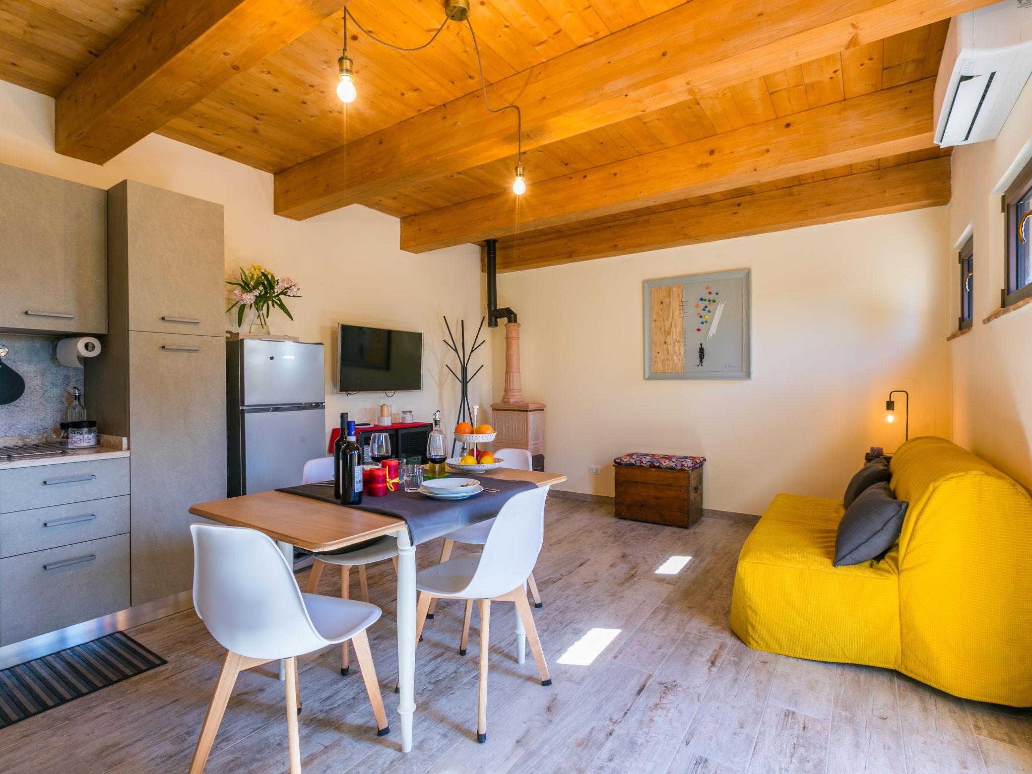 "Il Fienile diLeo", 2-room house 55 m2 on 2 levels. Object suitable for 2 adults + 2 children. Bright, fully renovated in 2025, beautiful and cosy furnishings: living/sleeping room with 1 sofabed (140 cm), dining table, kitchen corner and TV (flat screen), wood-burning stove and air conditioning. Open kitchen (oven, dishwasher, 4 induction hot plates, kettle, microwave, electric coffee machine). Upper floor: 1 double bedroom with air conditioning. Shower/bidet/WC. Electric heating, air-conditioning. Terrace, patio. Terrace furniture, barbecue, deck chairs (2). Very beautiful panoramic view of the countryside. Facilities: washing machine, iron, children's high chair, baby cot for up to 2 year olds, hair dryer, logs (extra). Internet (WiFi, free). Parking at the house. Please note: non-smokers only. Private entrance, smoke alarm, fire extinguisher. IT052028C2Z6NVGXTG