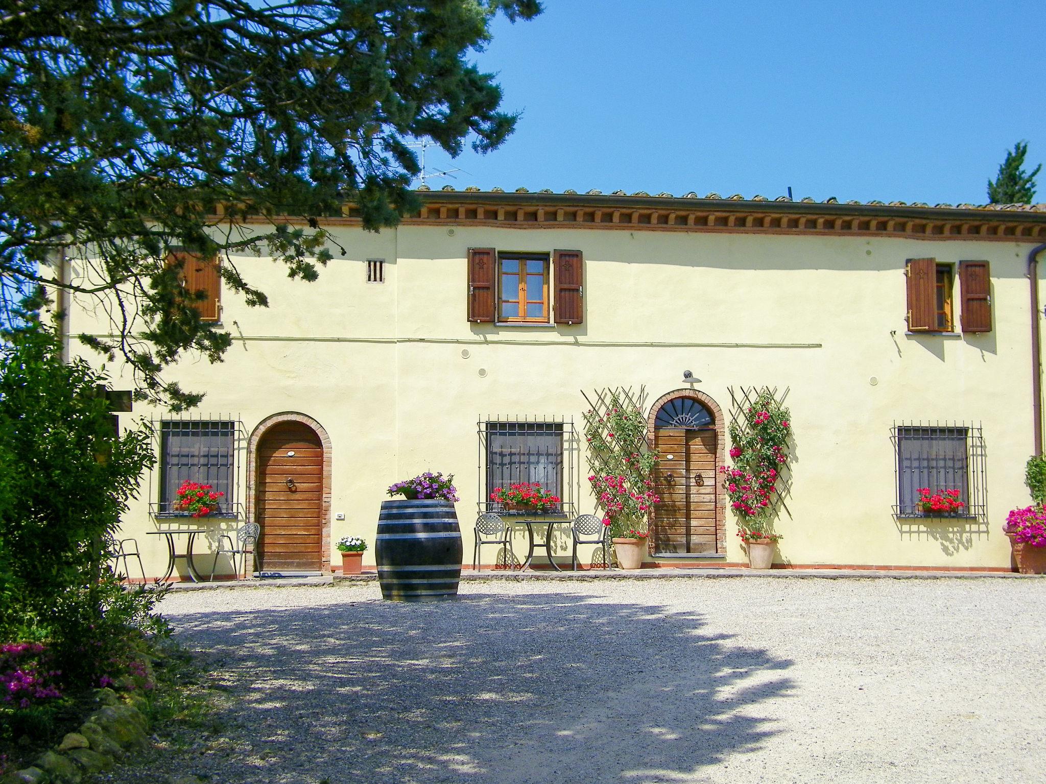 Lucignano 7 km from San Gimignano: Agriturismo on a vinyard "Casa alle Vacche", surrounded by trees, fields and vineyards. 3 houses in the residence. 6 apartments in the residence. 7 km from the centre of San Gimignano, 7 km from the centre of Certaldo, 48 km from the centre of Siena, in a secluded, elevated position, 70 km from the sea, in the countryside. For shared use: property 32 ha with plants and trees, natural garden, meadow, swimming pool fenced (14 x 6 m, seasonal availability: 01.May. - 15.Oct.). Shower/WC in the pool area, outdoor shower, terrace, garden furniture, barbecue, pool maintenance by the owner/gardener. In the house: reception, restaurant, lounge with TV, washing machine (for shared use). 700 m long motor access (via unmade road). Parking on the premises. Grocery 7 km, supermarket 7 km, restaurant 1.2 km, bicycle rental 7 km, bus stop "Certaldo" 7 km, railway station "Certaldo" 7 km, sandy beach "Cecina Mare" 70 km, outdoor swimming pool 7 km, indoor swimming pool 7 km. Nearby attractions: Volterra 33 km, Firenze 64 km, Pisa 83 km. Please note: suitable for families, baby equipment (included). Local sale of farm products. All houses/apartments are individually designed/furnished.