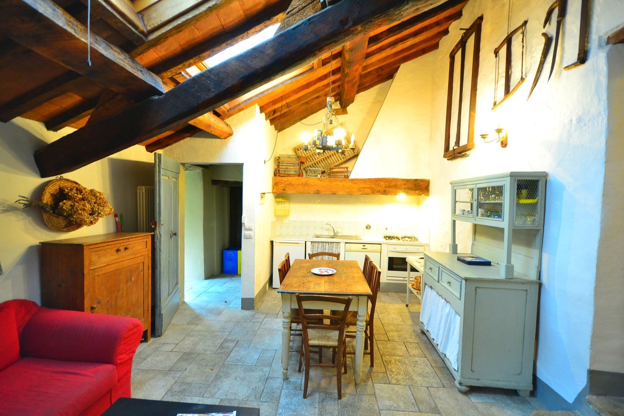 Denne indbydende, kæledyrsvenlige lejlighed i San Godenzo tilbyder en rolig flugt i hjertet af Toscana. Det ligger på første sal i en traditionel villa og har en hyggelig stue med pejs og satellit-tv, åbent køkken med ovn og opvaskemaskine samt tre soveværelser med dobbeltsenge. To badeværelser, det ene med badekar og dobbelte håndvaske, sikrer komfort for familier eller små grupper. En lys udestue tilføjer et strejf af elegance og naturligt lys. Gæsterne kan nyde fælles faciliteter, herunder en rummelig have med møbler, en 12x7 m swimmingpool (åben juni til september) og legeredskaber til børn. En vaskemaskine er tilgængelig til fælles brug, og opvarmning holder hjemmet hyggeligt i køligere måneder. En børneseng og høj stol kan stilles til rådighed efter anmodning, hvilket gør den ideel til familier, der rejser med små. Omgivet af skovklædte bakker og kun 1 km fra en fredelig sø, er beliggenheden perfekt for naturelskere. Udforsk nærliggende attraktioner som Cascata di Calabuia-vandfaldet, det naturskønne Passo del Muraglione og det historiske Abbazia di San Gaudenzio. Til spisning kan du nyde rustikke toscanske retter på La Bottega di Castagneto eller den hyggelige Osteria Il Rifugio, begge kun 2 km væk. Uanset om du vandre på Monte Falterona eller slapper af ved poolen, tilbyder dette hjem en ægte smag af Toscana.