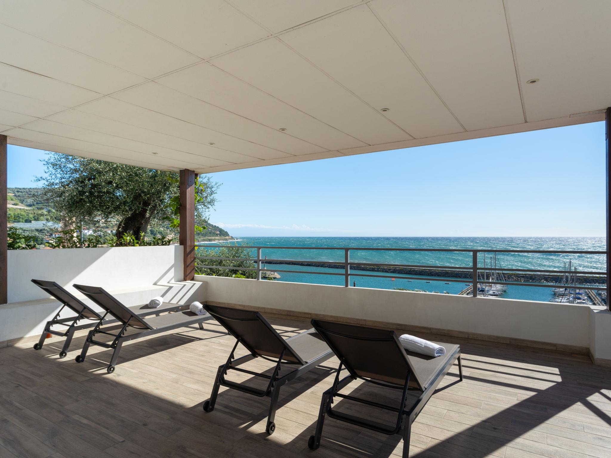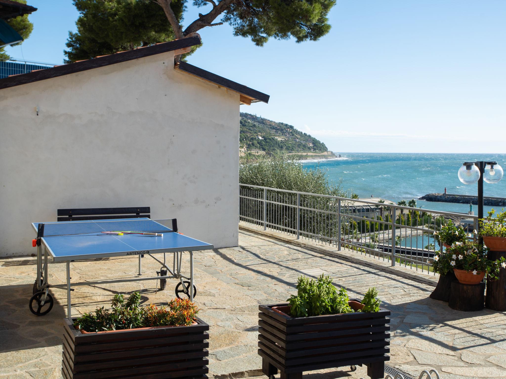 Small, modern resort "Baia dei Gabbiani", built in 2017. 6 houses in the residence. 500 m from the centre of San Lorenzo al Mare, on the outskirts, 3.5 km from the centre of Imperia (Porto Maurizio), 15 km from the centre of San Remo, on a slope, in the residential district, 200 m from the sea, 500 m from the beach, road to cross. For shared use: well-kept terraced garden, 1'600 m2 (fenced). Terrace, garden furniture. In the complex: reception, WiFi, table tennis, washing machine (for shared use). Stepped path (12 steps) to the house. Shop, grocery, restaurant, bar, bakery, café 500 m, bicycle rental 300 m, bus stop 6.8 km, sandy beach 500 m. Marina 200 m, cycle lane 50 m. Please note: residence with electric gates. Main road close by.