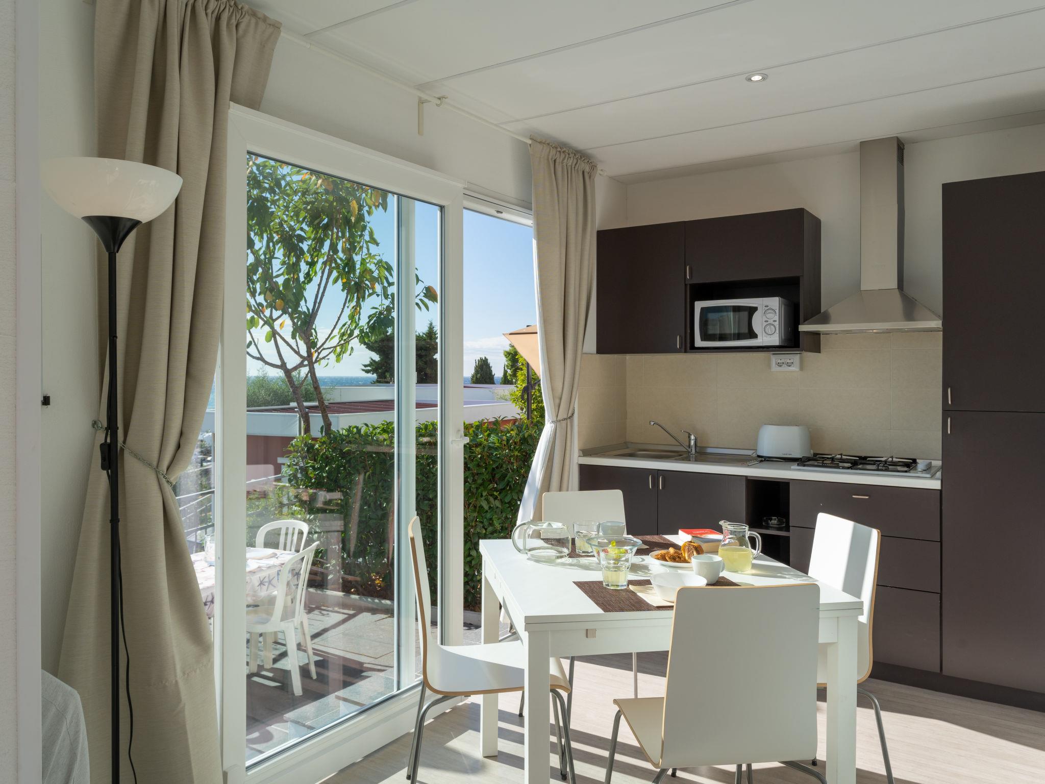 "Bouganvilla (SLR402)", 3-room bungalow 36 m2. Bright, modern furnishings: 1 room with 1 french bed (160 cm), shower/WC. 1 room with 2 beds (80 cm). Kitchen-/living room (4 gas rings, toaster, microwave, freezer, electric coffee machine) with dining table, satellite TV. Exit to the terrace. Shower/WC. Heating, air-conditioning. Terrace. Terrace furniture, deck chairs (2). Very beautiful view of the sea. Facilities: children's high chair, baby cot. Parking (1 car). Please note: non-smokers only. Maximum 1 pet/ dog allowed. IT008054B1553SB4JB