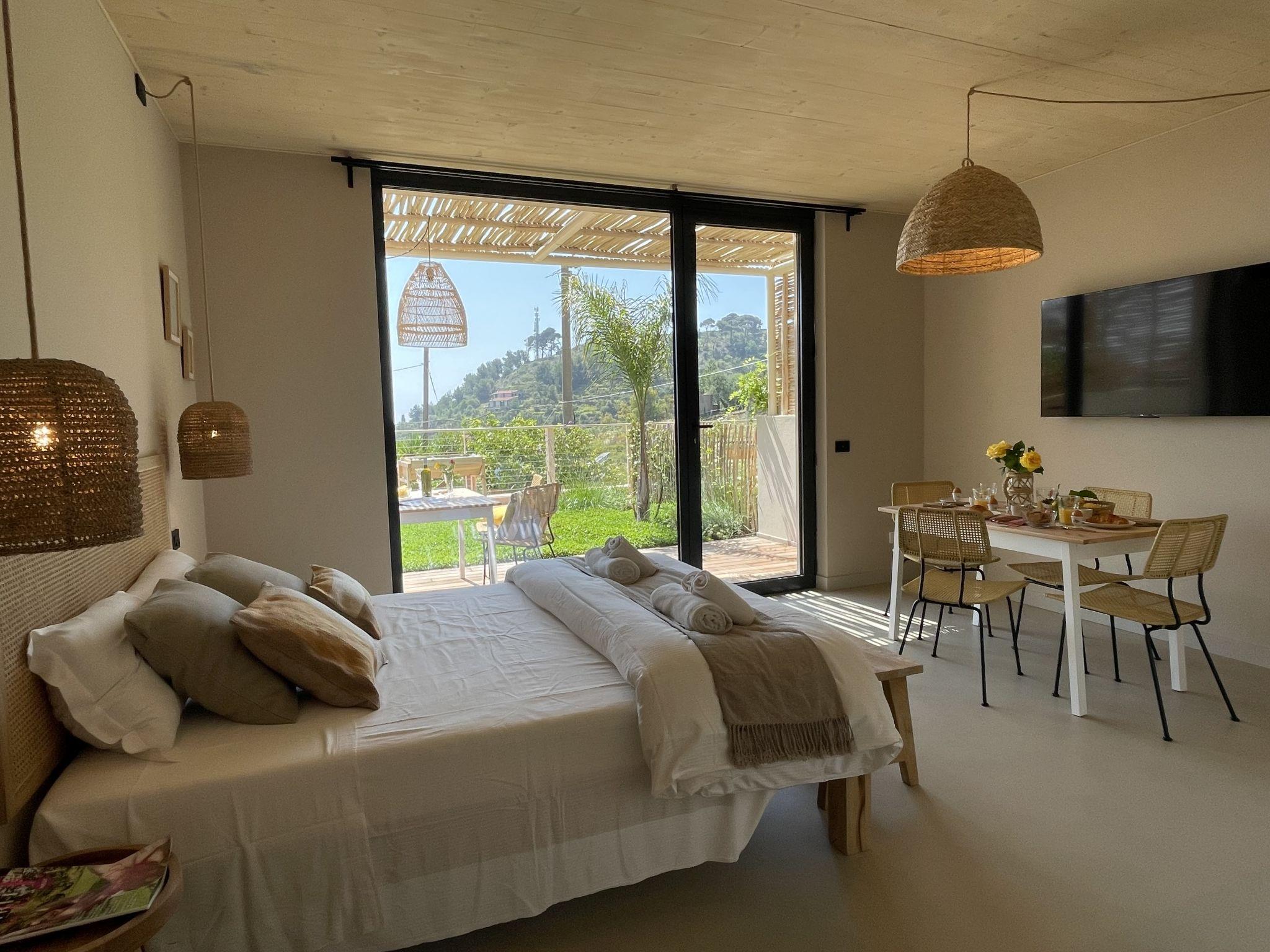 "Casa Mia 4", 2-room apartment 42 m2, on the ground floor. Comfortable and tasteful furnishings: living/sleeping room with panoramic window with 1 double bed (1 x 160 cm), dining table and satellite TV. Exit to the garden, to the terrace. 1 room with 1 double bed (1 x 160 cm), satellite TV. Kitchenette (oven, 2 induction hot plates, toaster, kettle, electric coffee machine, Capsules for coffee machine (Nespresso) extra) with dining table. Shower/bidet/WC. Air-conditioning, forced-air heating. Terrace, small patio. Terrace furniture. Beautiful panoramic view of the sea and the mountains. Facilities: children's high chair, baby cot, hair dryer. Internet (WiFi). Blu-ray player, iPod docking station. Parking (2 cars). Please note: non-smokers only. IT008024B4T75ZC83P