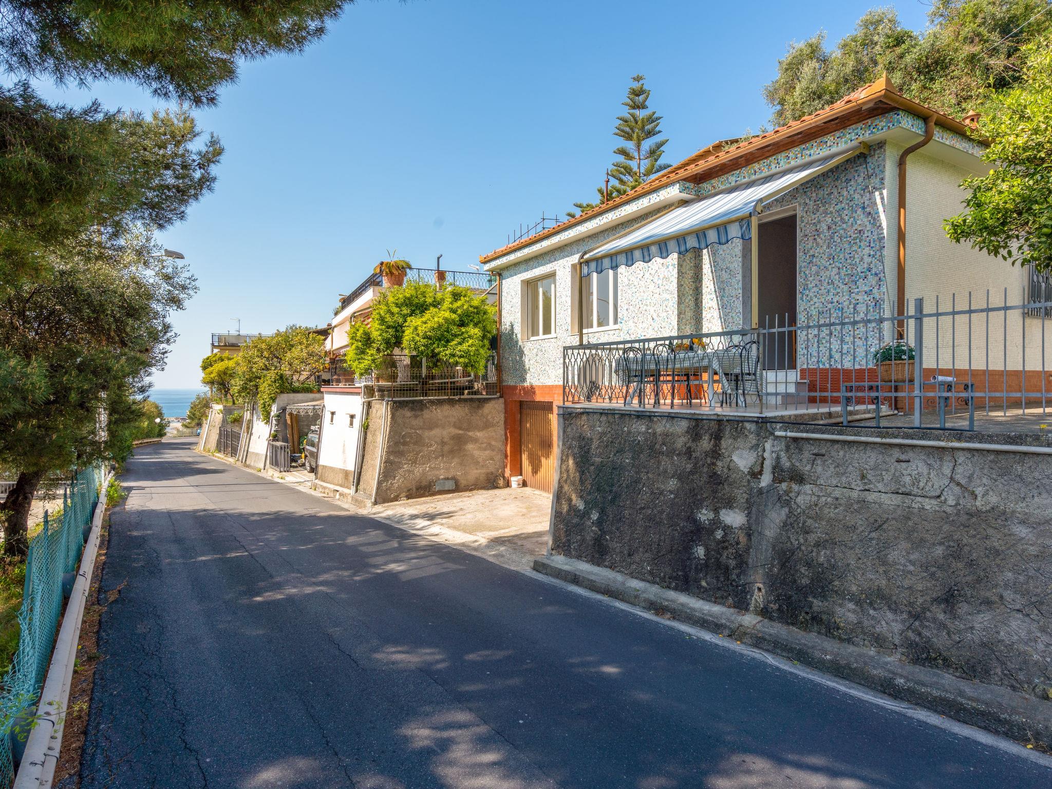 Small single-family house "Alfreda". 500 m from the centre of San Lorenzo al Mare, on the outskirts, 5 km from the centre of Imperia/Porto Maurizio, 19 km from the centre of San Remo, in the residential district, 500 m from the sea, located by a road. Private: natural state property 40 m2 (fenced) with trees. In the house: storage room for bicycles. Parking (for 2 cars) at the house. Grocery 50 m, supermarket, restaurant 500 m, bar, bus stop 500 m, railway station "Imperia / Porto Maurizio" 6 km, sandy beach, indoor swimming pool 6 km. Marina 500 m, cycle lane.