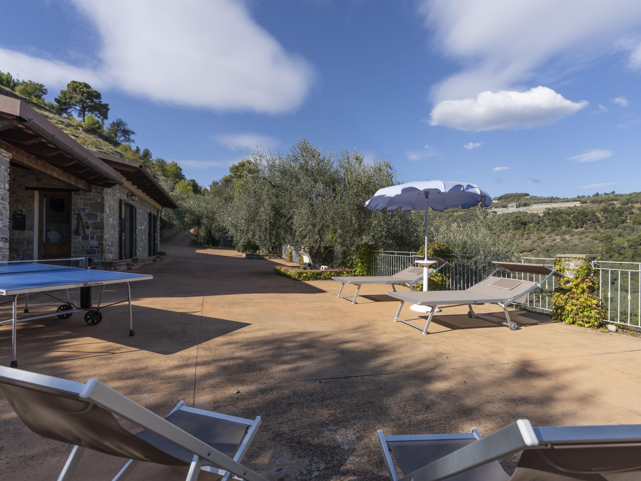 Cosy house, built in 2012, surrounded by fields and vineyards. 2.5 km from the centre of San Lorenzo al Mare, 12 km from the centre of Imperia, 20 km from the centre of Sanremo, in a secluded, sunny position on a slope, 2.5 km from the sea, in the countryside. For shared use: table tennis. Private: natural state property 1'500 m2 (fenced) with trees, swimming pool (above ground) (6 x 3 m, depth 130 cm, seasonal availability: 01.Apr. - 30.Nov.). Outdoor shower. In the house: table football. Parking (for 2 cars) on the premises. Supermarket 4 km, bus stop 8.8 km, railway station "Imperia / Porto Maurizio" 10 km, sandy beach "San Lorenzo al Mare" 2.5 km pebble beach "San Lorenzo al Mare" 2.5 km, indoor swimming pool 10 km, bathing lake "Torre Paponi" 3 km.