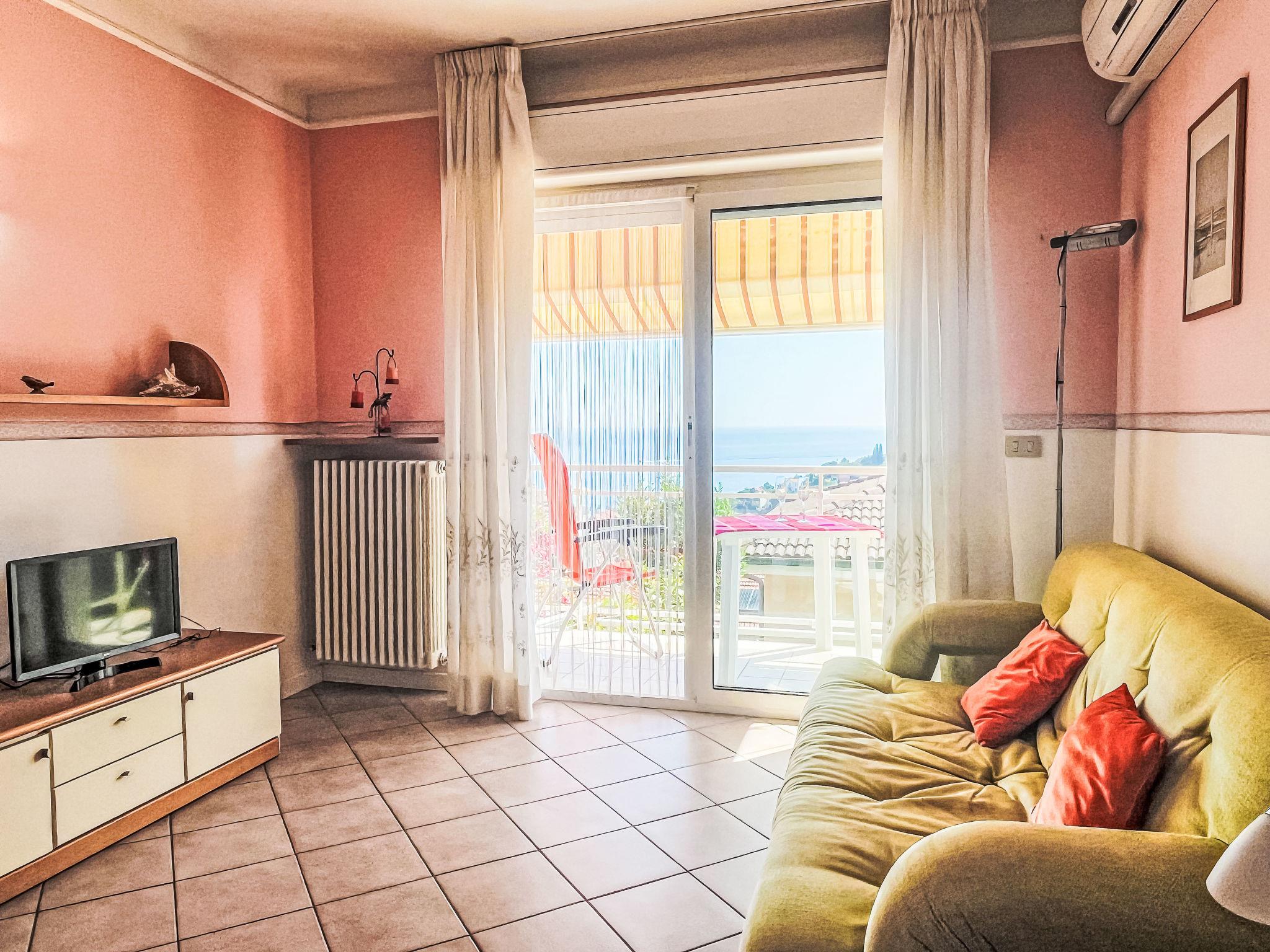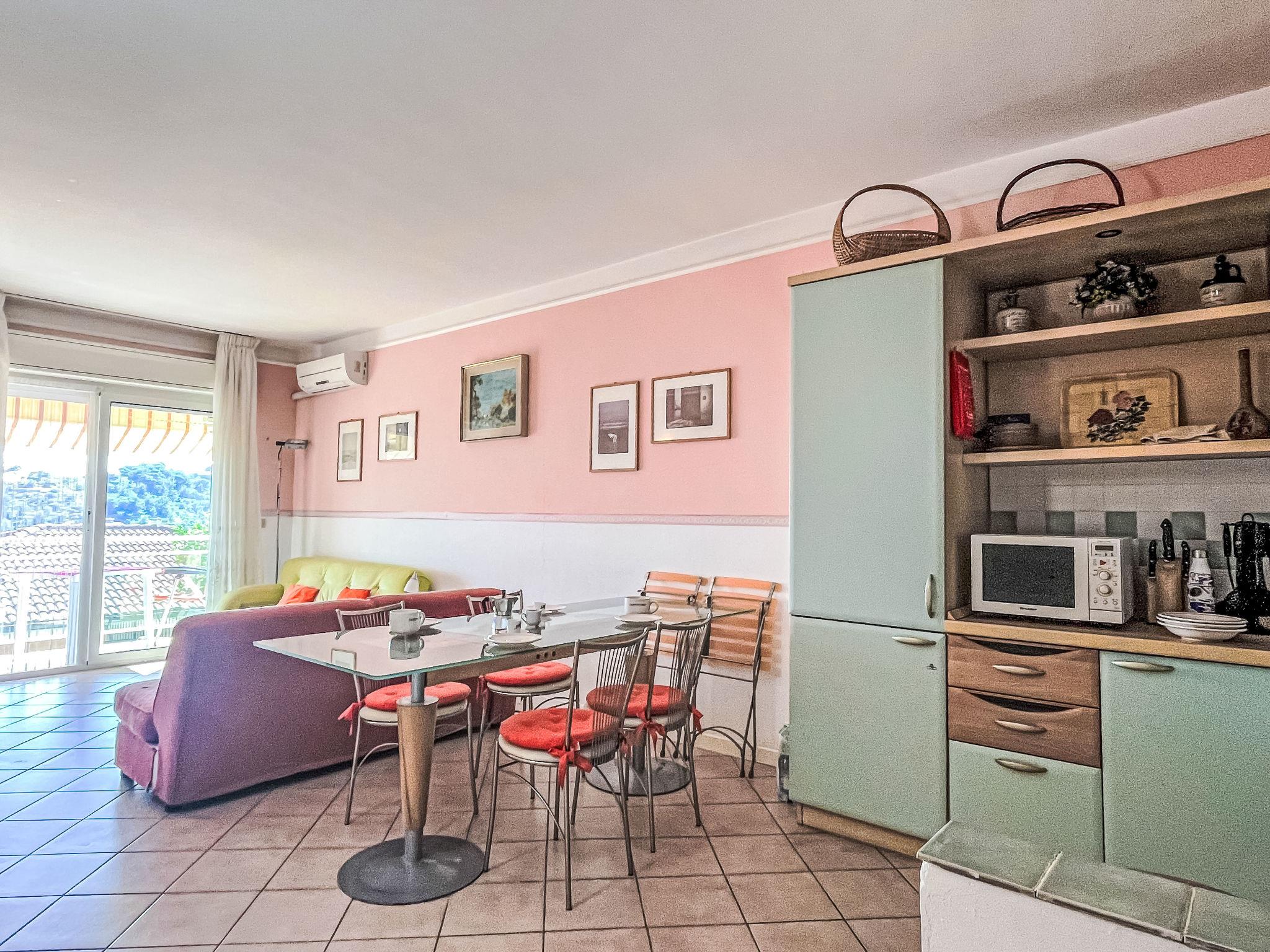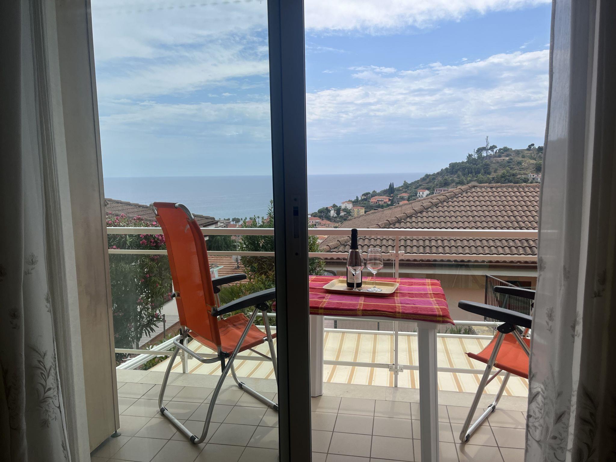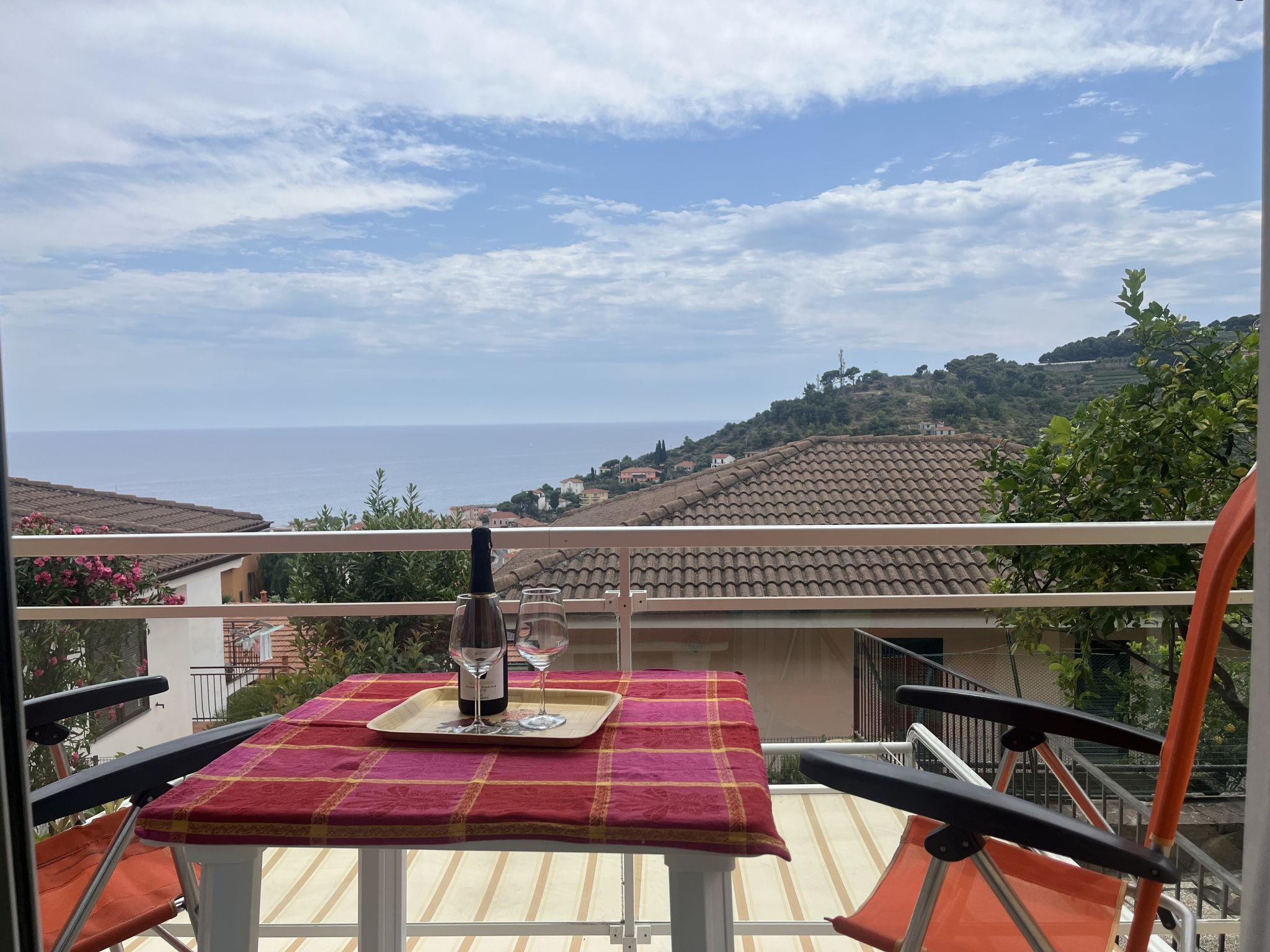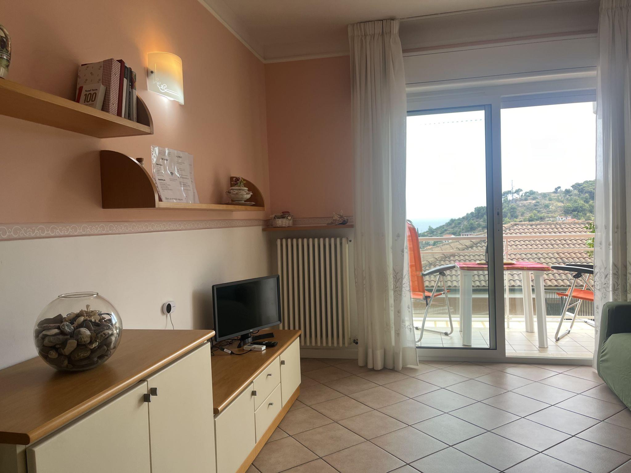 2-room apartment 53 m2 on 1st floor. Spacious and bright, beautiful and cosy furnishings: living/sleeping room with 1 double sofabed (1 x 140 cm, length 200 cm), satellite TV. Exit to the terrace. 1 room with 1 double bed (1 x 160 cm, length 200 cm). Kitchenette (dishwasher, Gas stove, 4 gas rings, toaster, microwave, freezer, electric coffee machine) with dining table. Bath/bidet/WC. Air-conditioning. Terrace. Terrace furniture. Very beautiful panoramic view of the sea, the valley and the resort. Facilities: washing machine, iron, hair dryer. Internet (WiFi, free). Please note: smoke alarm, fire extinguisher. IT008054C2MKNF69V9