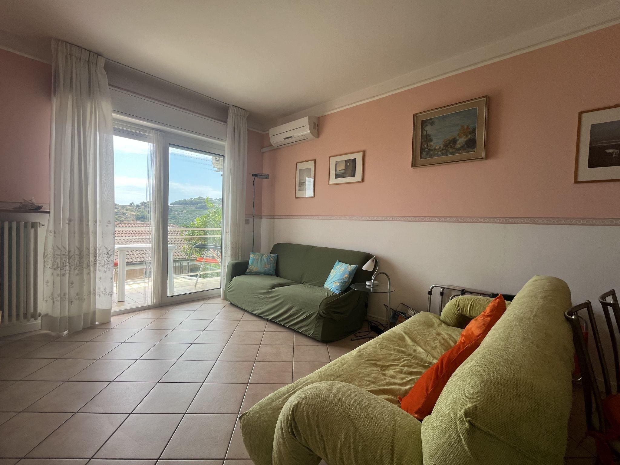 Beautiful apartment block "Le Vele", 2 storeys, renovated. 12 apartments in the property. Above San Lorenzo al Mare 5 km from the centre of Imperia Porto Maurizio, 20 km from the centre of San Remo, in a quiet, sunny position on top of a hill, in the residential district, 450 m from the sea. Public parking 10 m on the road. Grocery, restaurant, bar, bakery, café, pedestrian zone, bicycle rental 450 m, 10 minute walk to the centre, bus stop 450 m, railway station "Imperia Oneglia" 7 km, sandy beach, pebble beach, rocky beach 450 m. Cycle lane, children's playground 450 m. Nearby attractions: Pista ciclabile lungo mare 450 m, Porto Maurizio Altstadt Parasio 5 km, Laghetti, Felswasserbecken in Fluss 5 km. Hiking paths: Monte Faudo (1149 m) Mountainbike Trails 5 km.