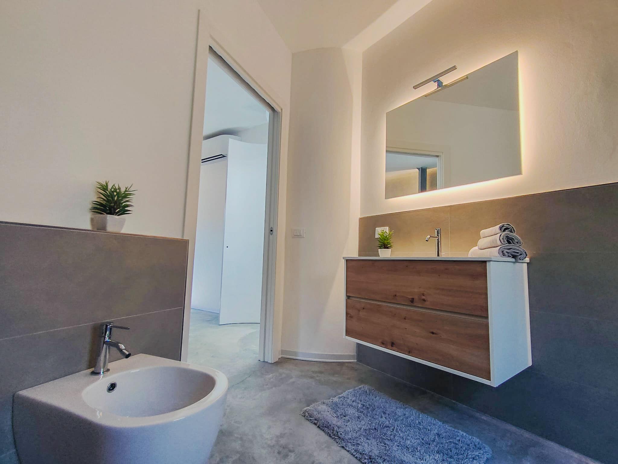 "Villa Vasca", 2-room Loft 30 m2. Bright, modern and stylish furnishings: 1 double bedroom with shower/bidet/WC. Living room with satellite TV. Kitchenette (oven, dishwasher, 4 ceramic glass hob hotplates, toaster, kettle, freezer, electric coffee machine, Capsules for coffee machine (Nespresso) free) with dining table. Electric heating, air-conditioning. Patio roofed. Terrace furniture, deck chairs (4). View of the garden. Facilities: washing machine. Internet (WiFi, free). Maximum 2 pets/ dogs allowed. IT008022B55QJGX93C