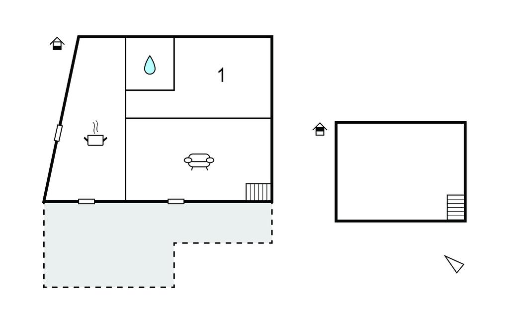 Opholdsstue 13m2 - 1 Soveplads. (Sofa, madras eller lignende).