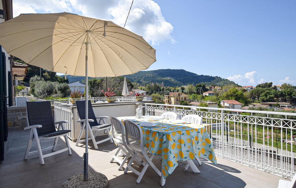 Velkommen til dette moderne og stilfuldt møblerede feriehus, hvor en afslappende ferie venter hele familien, kun få skridt fra stranden. Tilbered middelhavsretter i det moderne køkken og nyd dem ved det indbydende spisebord. Forkæl jer selv med afslappende siestaer på den komfortable sofa og lad den behagelige havbrise blæse gennem værelserne.