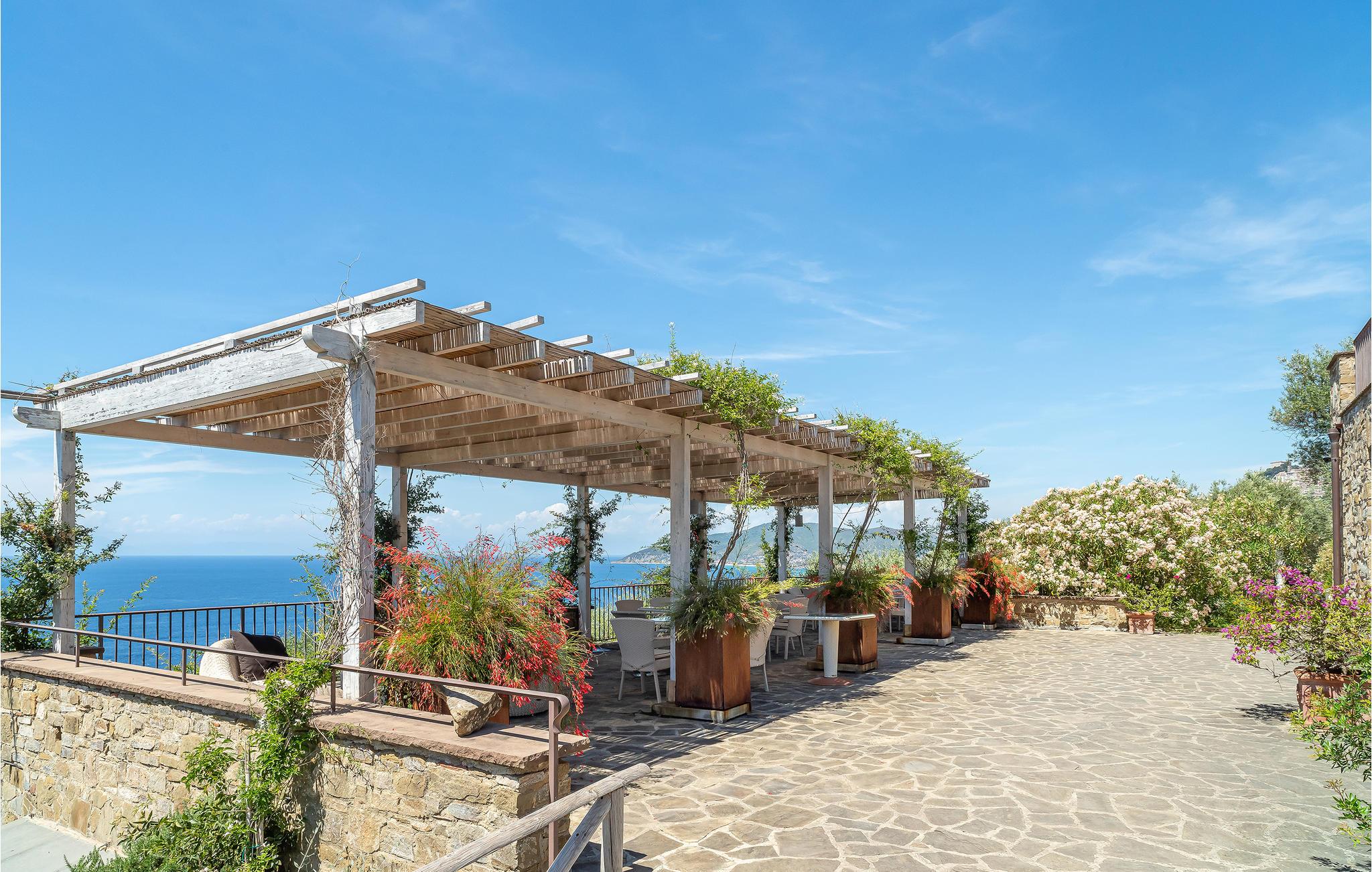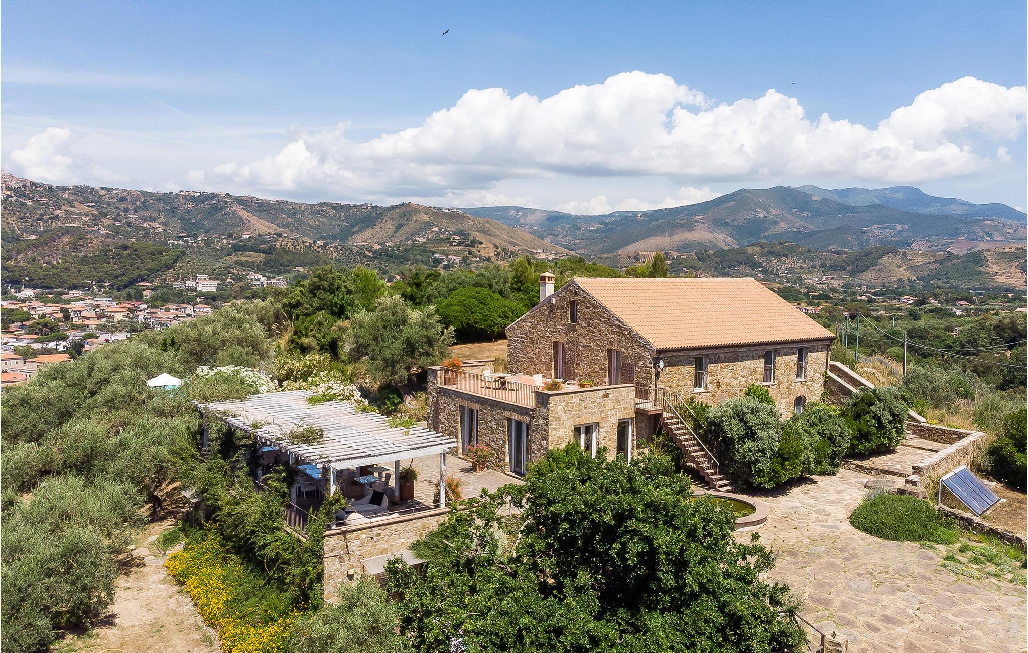 Med høj beliggenhed og spektakulær udsigt ud over det grønblå Cilentohav, ligger dette skønne feriehus, bygget af typiske rå sten fra regionen. Fra husets bakke er der også udsigt ud over den smukke lille landsby San Marco di Castellabate (ca. 800 m væk, i gåafstand). Huset var oprindeligt et bondehus, men nu omhyggeligt renoveret, med de samme materialer som det oprindelige, som frilagte loftsbjælker og flisegulve. Huset rummer et køkken der er åbent modstuen og syv soveværelser, alle med indgang udefra, og uden intern forbindelse. De kan alle lejes samlet, helt ideelt til en gruppe eller en stor familie. I en sidebygning, nedenfor villaen og fuldstændigt uafhængig af den centrale bygning, er der en lille lejlighed, hvor nøgleudlevereren opholder sig. Han tager sig af den daglige pleje af huset, pools og haven. I hovedbygningen er der syv soveværelser, det ene med hems med to senge og det andet med en sovesofa til to personer. De store åbne områder med herlig panoramaudsigt indbyder til at nyde dagens måltider i det fri. Perfekt beliggenhed, når I vil opleve Cilentos spændende byer: Castellabate med sin karakteristiske historiske bykerne (4 km), Acciaroli (12 km) og Paestum (30 km). Dagsudflugter kunne være til Amalfikysten 100 km væk, eller Pompeji 110 km og til Neapel der ligger 150 km væk.