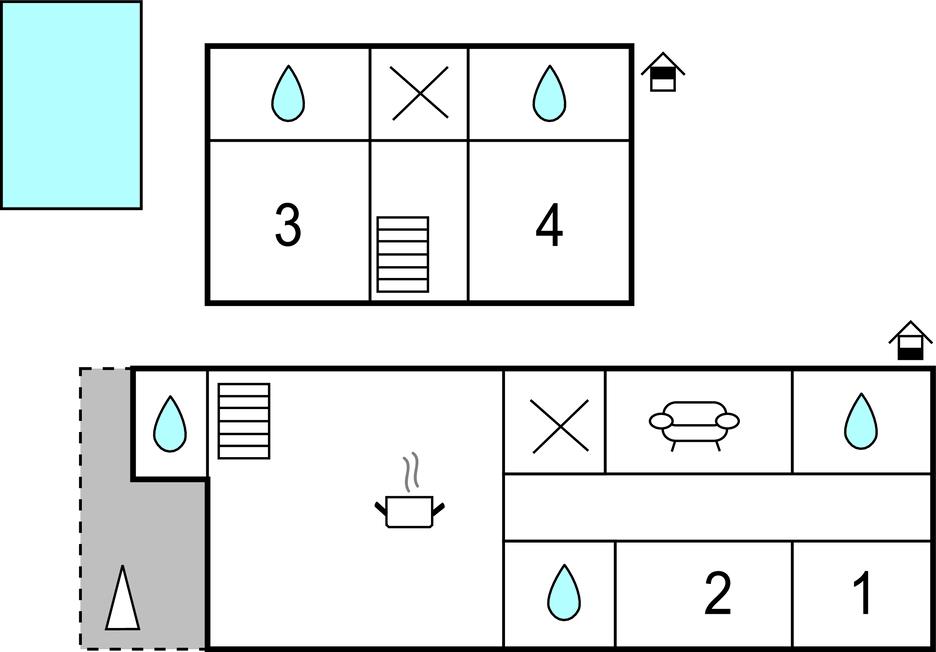 Soveværelse (nr. 1) - 1 Soveplads. (Enkeltseng(e)). 2 Sovepladser. (Dobbeltseng(e)).