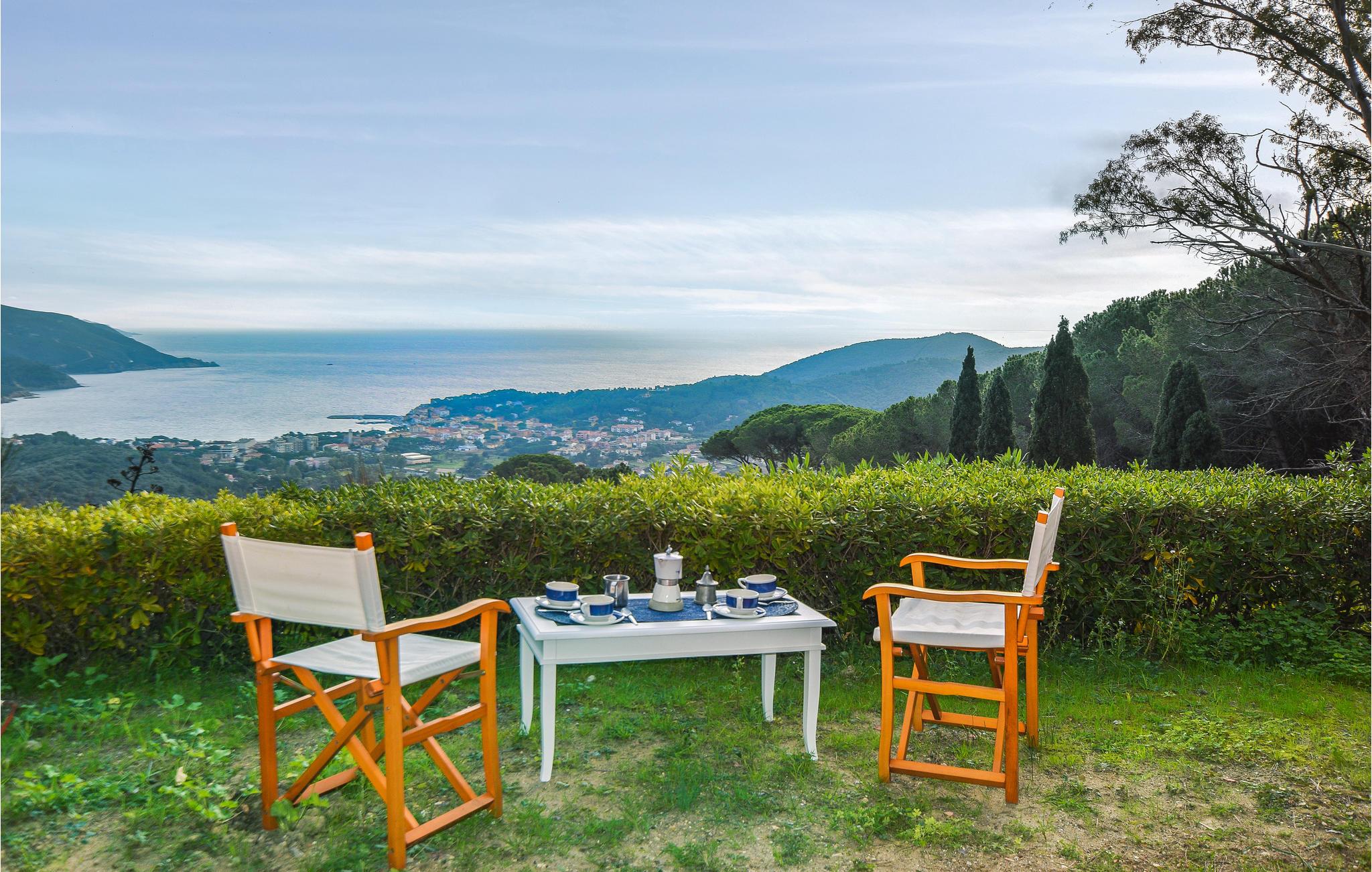I vil føle jer hjemme fra det øjeblik, I træder ind i dette hus, som venter jer nær landsbyen San Piero i Campo ved foden af Monte Capanne og er det ideelle sted for et behageligt ophold med hele familien. Føl jer hjemme i de lyse lokaler, den hjemlige indretning i landlig stil, klinkegulve og talrige smukke detaljer sørger for en behagelig stemning. Gulv-til-loft vinduer bringer det fantastiske panorama særligt godt frem. Om aftenen kan I finde jer tilpas i den hyggelige sofa i opholdsstuen og lægge planer for de næste par dage. Nyd solen udenfor foran en betagende kulisse eller slap af i skyggen af fyrretræer og spis middag sammen på terrassen.