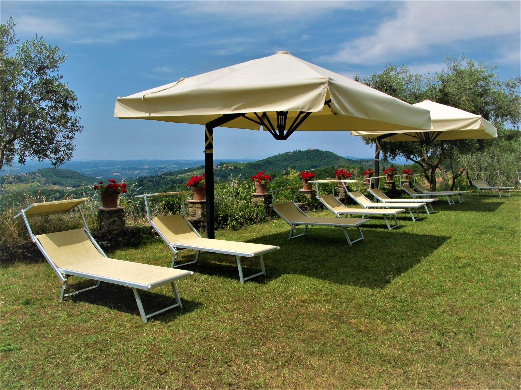 Manor house "Panzalla", detached, surrounded by fields and vineyards. 6 apartments in the residence. Property composed of main house and outbuilding 4 km from the centre of San Polo in Chianti, 16 km from the centre of Impruneta, 23 km from the centre of Firenze, in a secluded, sunny, elevated position, in the countryside. For shared use: natural state property, terraced garden with flowers and trees, meadow, swimming pool fenced (10 x 5 m, depth 150 cm, seasonal availability: 06.May. - 07.Oct.). Outdoor shower, terrace, garden furniture, barbecue, pool maintenance by the owner/gardener. In the house: reception, internet access, WiFi, washing machine (for shared use). 2 km long bumpy motor access (via unmade road). Parking on the premises. Supermarket 4 km, restaurant 4 km, bakery 4 km, bus stop "San Polo in Chianti" 4 km. Golf course (18 hole) 13 km. Nearby attractions: Greve in Chianti 20 km, Radda in Chianti 38 km, San Gimignano 58 m, Siena 75 m, Arezzo 65 m. Please note: car recommended. Suitable for families, baby equipment (included). Cooking courses bookable on request. Local sale of farm products. The owner lives on the same property. All houses/apartments are individually designed/furnished.