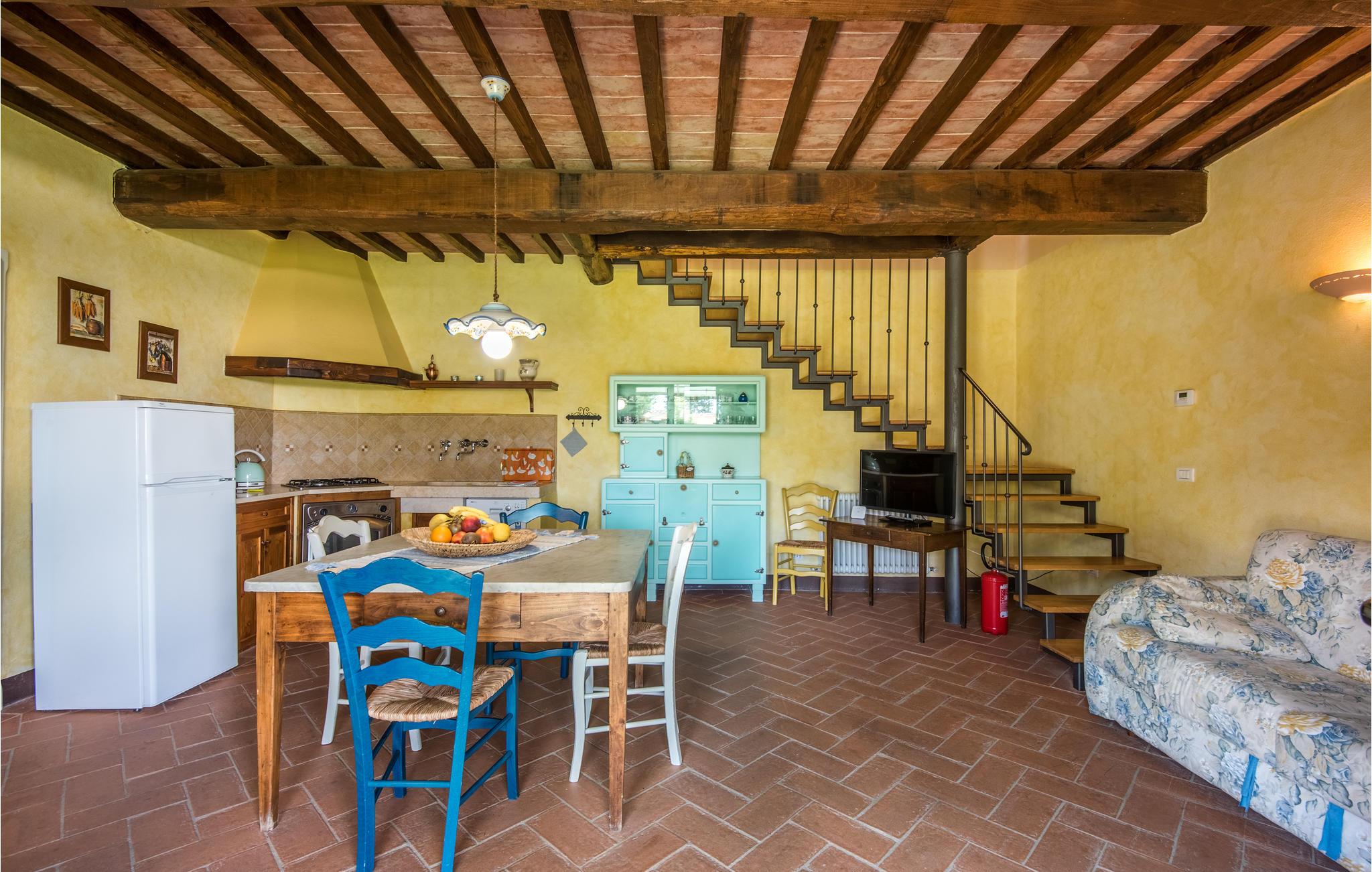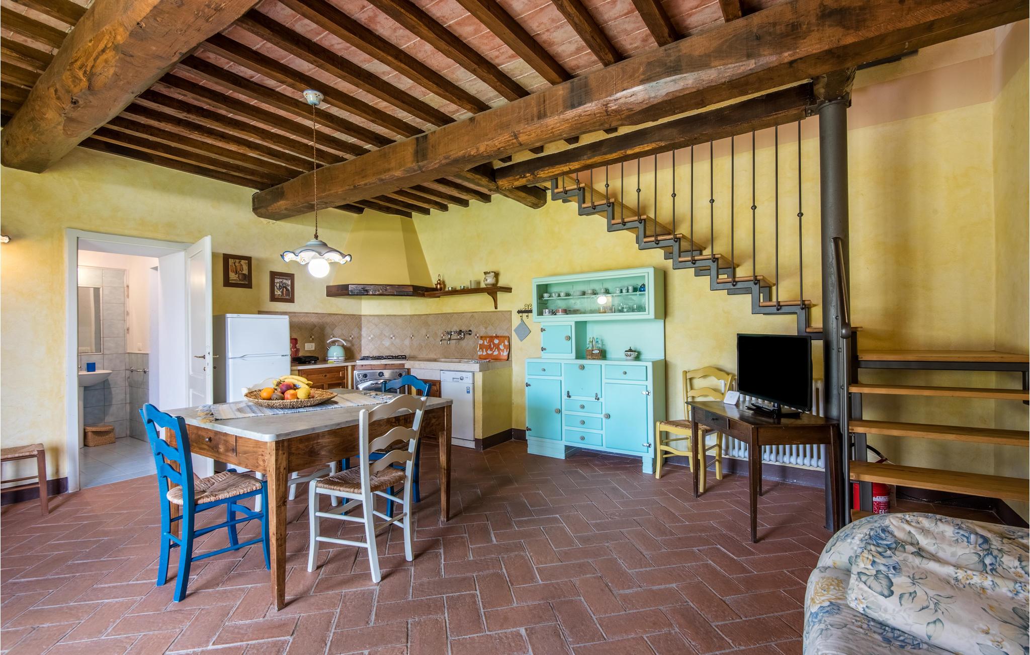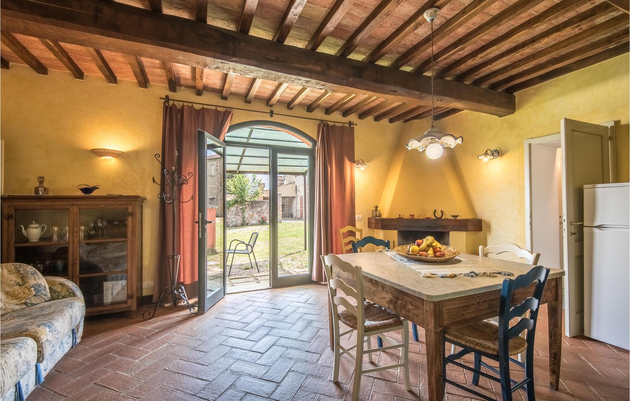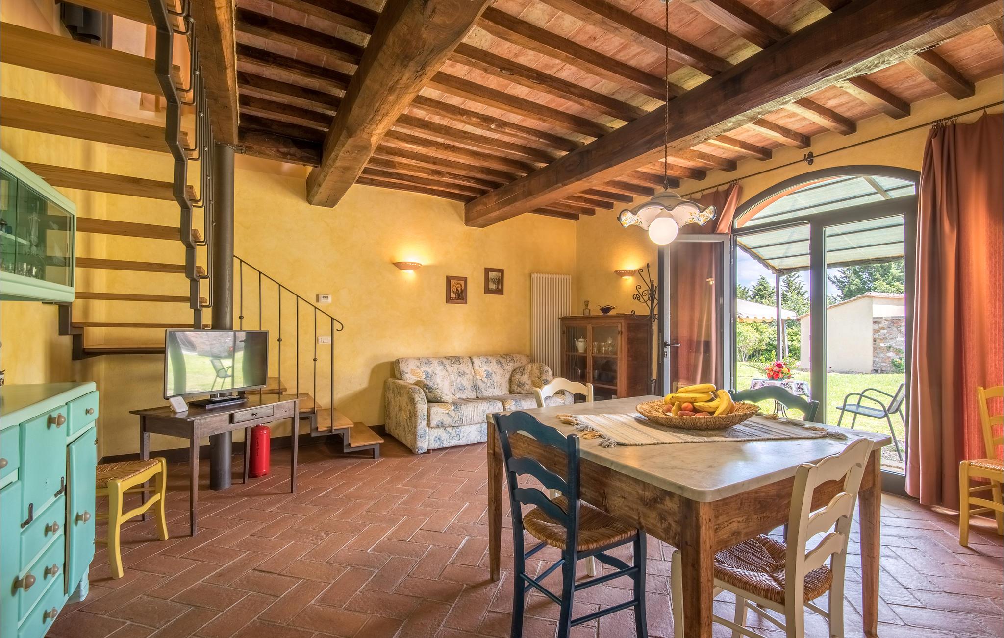 I vil føle jer hjemme fra det øjeblik, I træder ind i dette hus, som venter jer midt i de toscanske vinmarker og er det ideelle sted for et behageligt ophold med hele familien. Føl jer hjemme i de hyggelige lokaler, den hjemlige indretning i landlig stil, klinkegulve og dekorative trælofter skaber en skøn atmosfære. Om aftenen kan I finde jer tilpas i den hyggelige sofa i opholdsstuen og lægge planer for de næste par dage. I kan også gå udenfor herfra. Nyd solen og en smuk udsigt over området med sine blidt bølgende bakker med olivenlunde, vinmarker og egeskove.