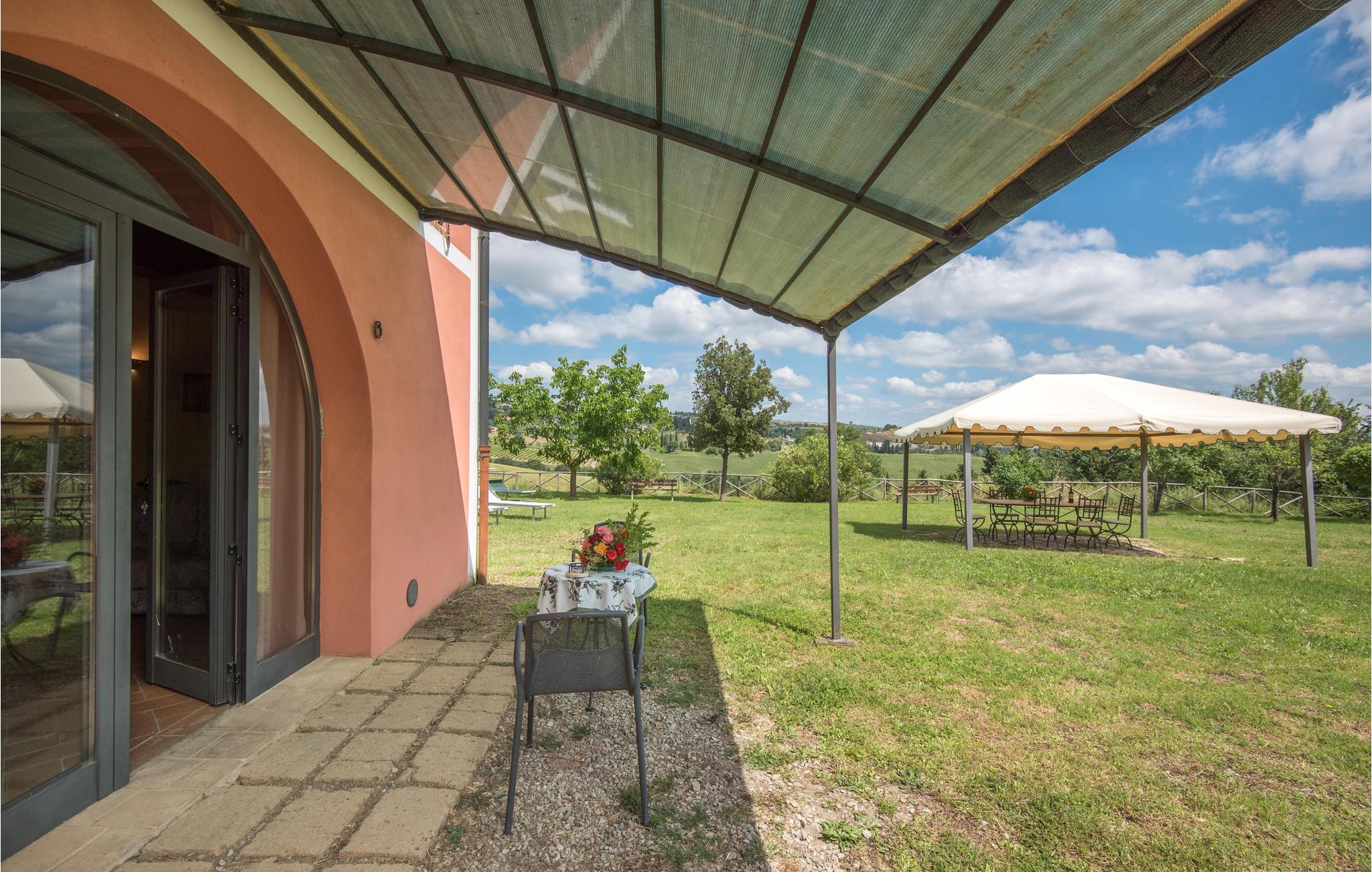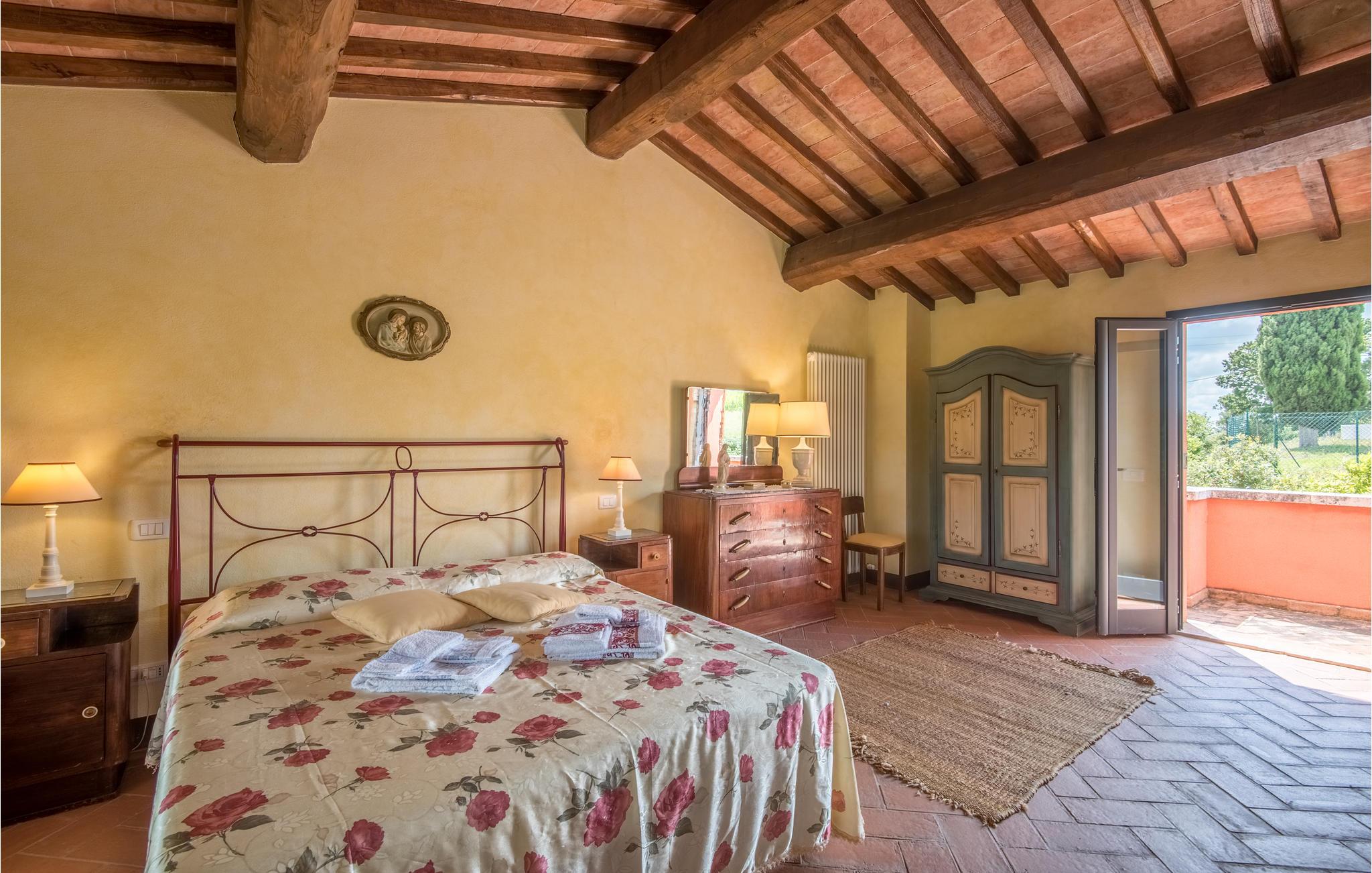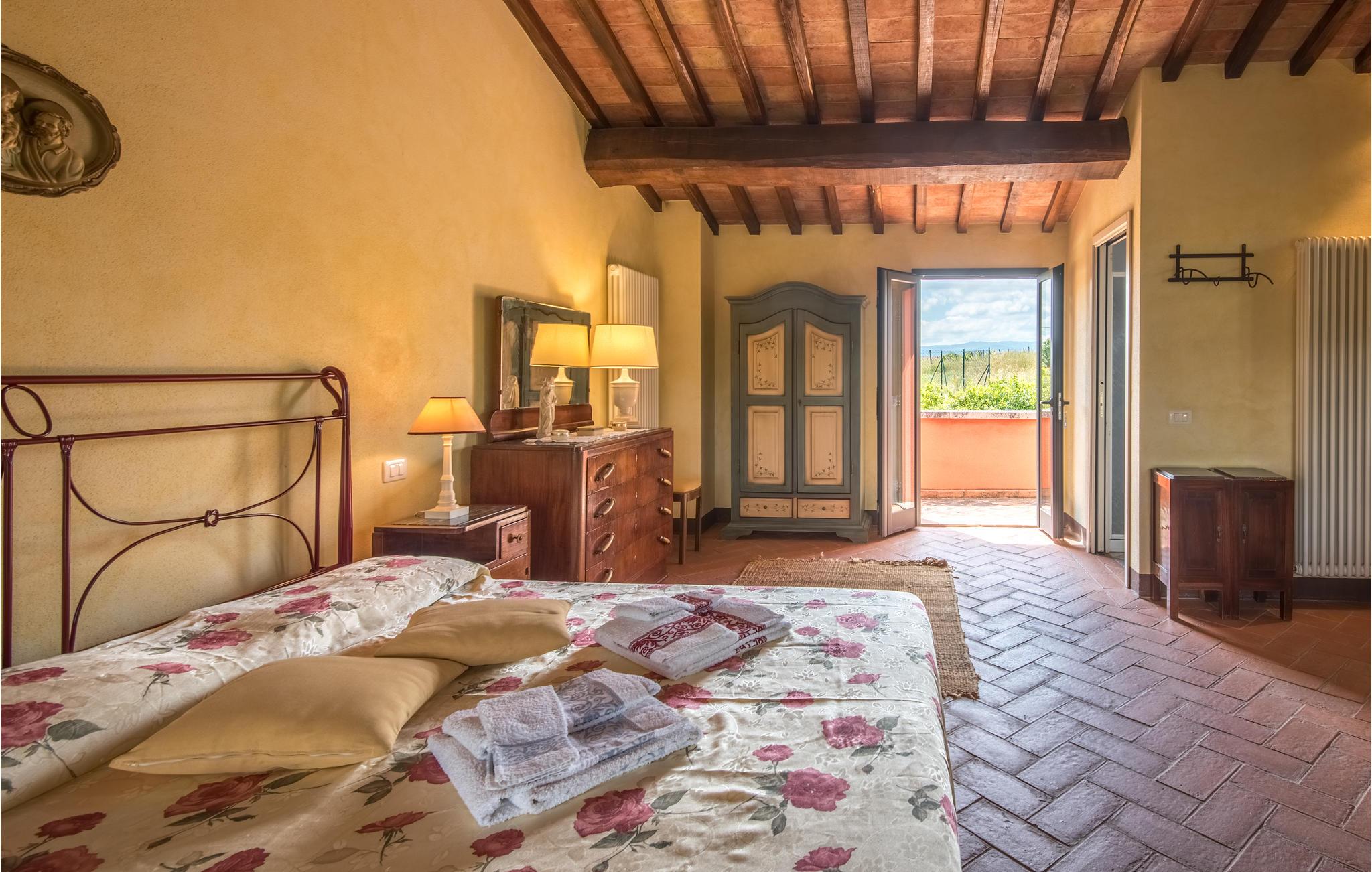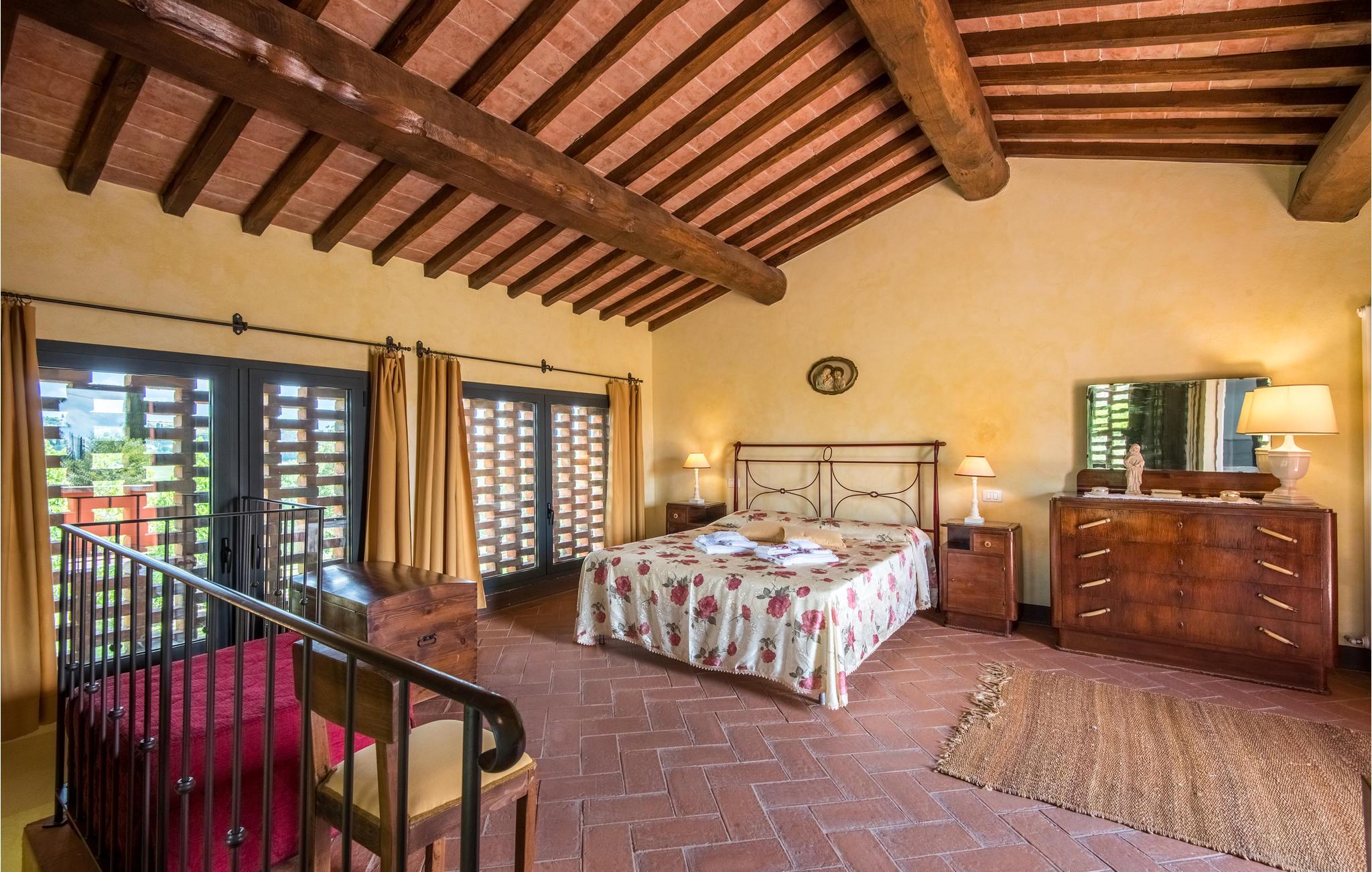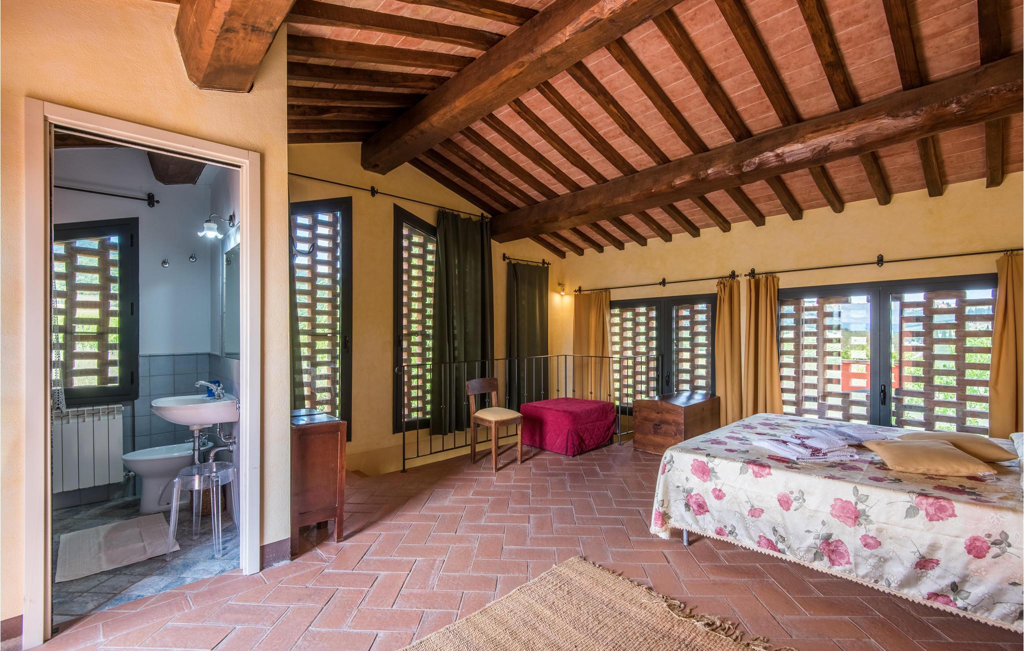I vil føle jer hjemme fra det øjeblik, I træder ind i dette hus, som venter jer midt i de toscanske vinmarker og er det ideelle sted for et behageligt ophold med hele familien. Føl jer hjemme i de hyggelige lokaler, den hjemlige indretning i landlig stil, klinkegulve og dekorative trælofter skaber en skøn atmosfære. Om aftenen kan I finde jer tilpas i den hyggelige sofa i opholdsstuen og lægge planer for de næste par dage. I kan også gå udenfor herfra. Nyd solen og en smuk udsigt over området med sine blidt bølgende bakker med olivenlunde, vinmarker og egeskove.