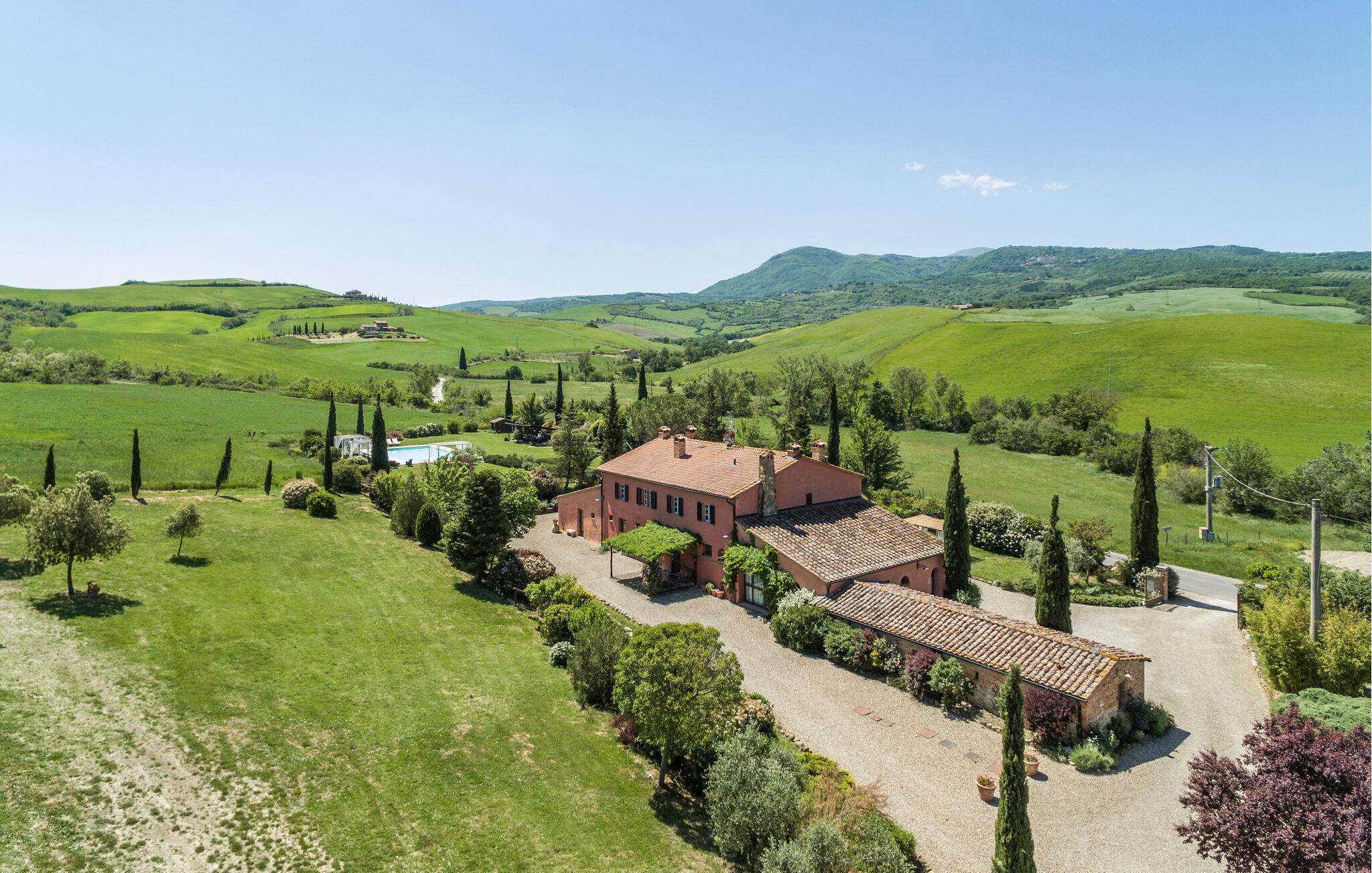 Den rummelige, velholdte ejendom med middelhavsplanter tilbyder privatliv og udstråler toscansk charme. Begynd dagene med morgenmad på terrassen, snup en frisk dukkert i den rummelige pool og tænd grillen for atmosfæriske oplevelser under stjernerne.