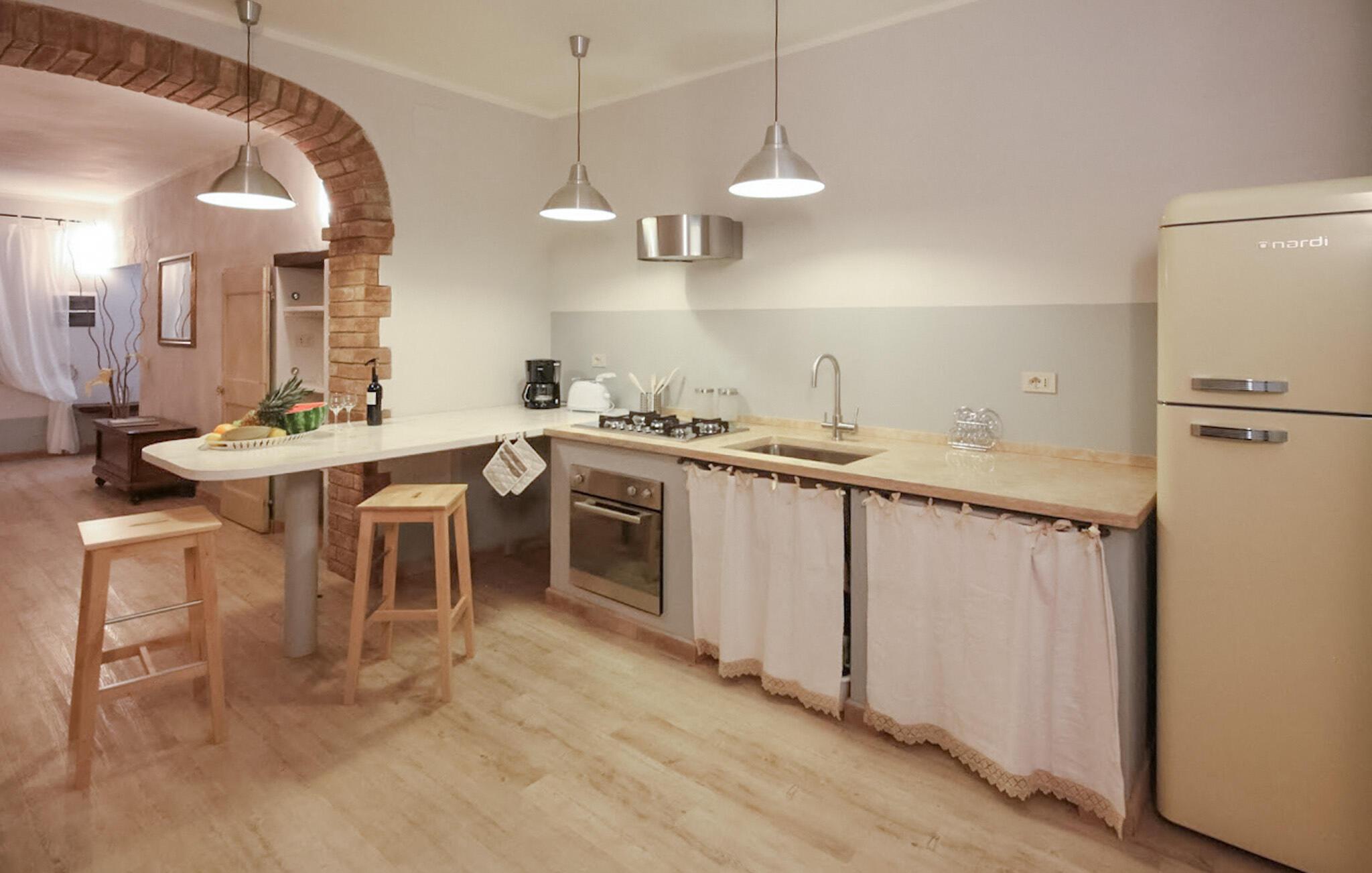 Dette nænsomt restaurerede landsted fra 1800-tallet forkæler jer med historisk charme og moderne komfort. Tilbered lækre retter i det rummelige, åbne køkken og nyd måltiderne sammen i den hyggelige spisestue. find jer godt til rette på sofaen til en filmaften, og lad brændeovnen give ekstra komfort på kølige dage.