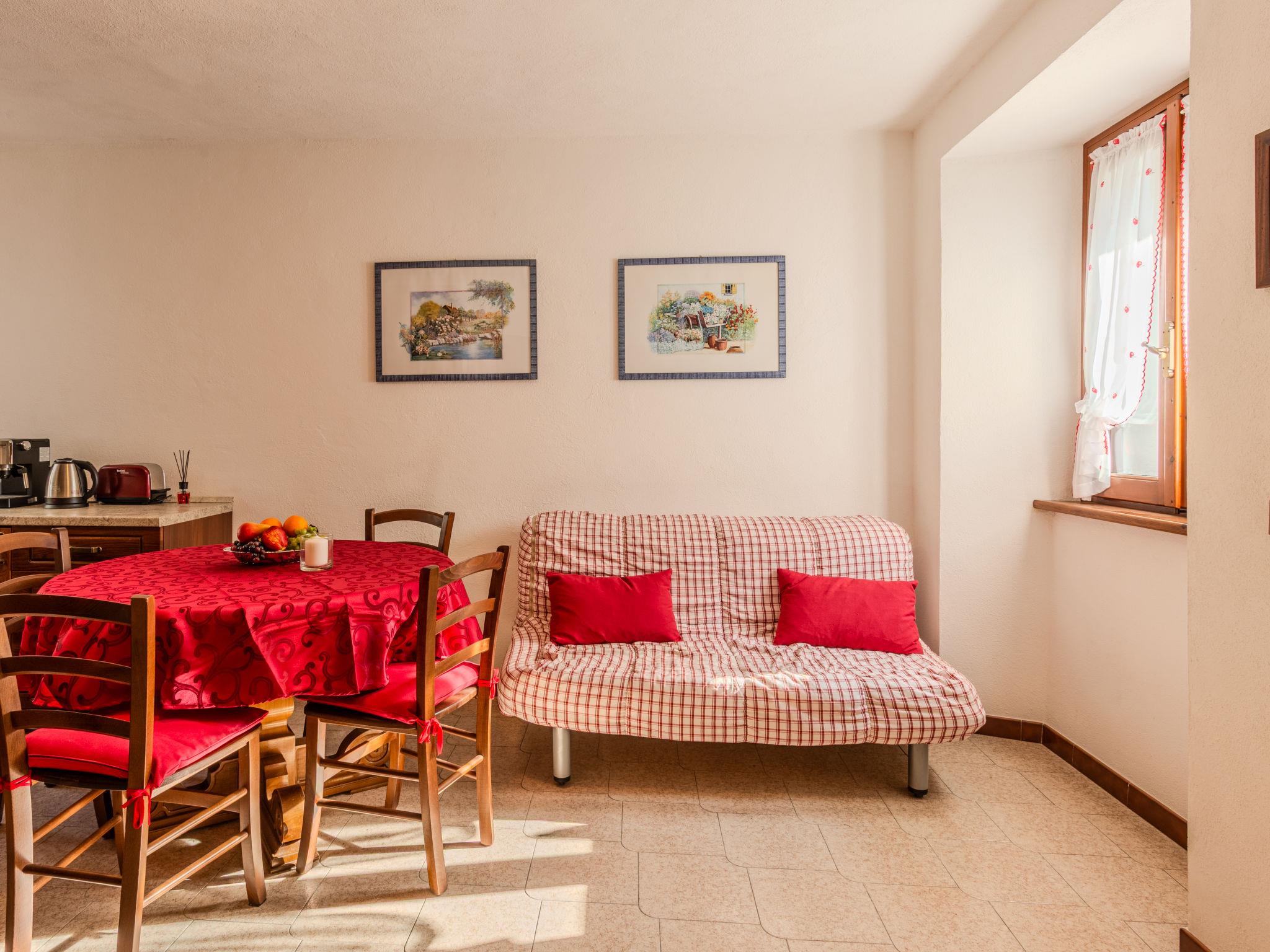 2-room apartment 50 m2, on the ground floor. Practical and beautiful furnishings: open living/sleeping room with 1 double sofabed (160 cm, length 190 cm), TV (flat screen). Exit to the garden, to the terrace. 1 double bedroom. Open kitchen (oven, Gas stove, 4 gas rings, toaster, kettle, microwave, freezer, electric coffee machine) with dining table. Shower/bidet/WC. Gas heating. Heating available only from 15.10. to 30.04. Natural stone floors. Large terrace, garden, lawn. Terrace furniture, deck chairs (2). Very beautiful view of the lake, the mountains and the resort. Facilities: hair dryer. Internet (WiFi, free). Parking space n 1 (1 car). Please note: non-smokers only. Private entrance, smoke alarm, fire extinguisher. IT013248C2P3R7QIGH