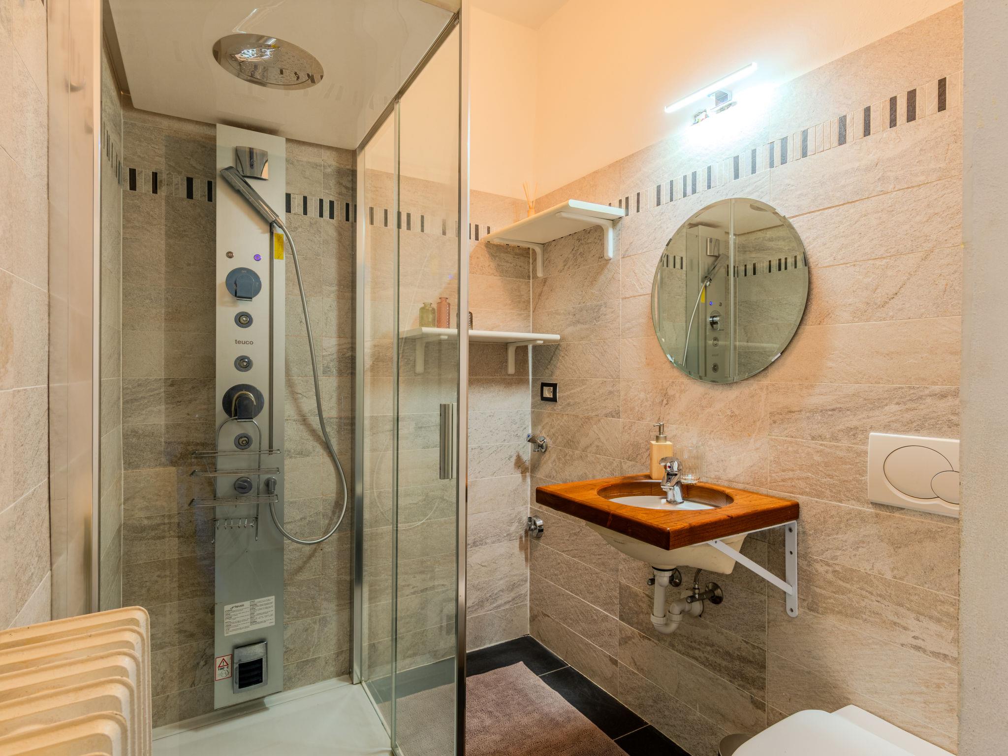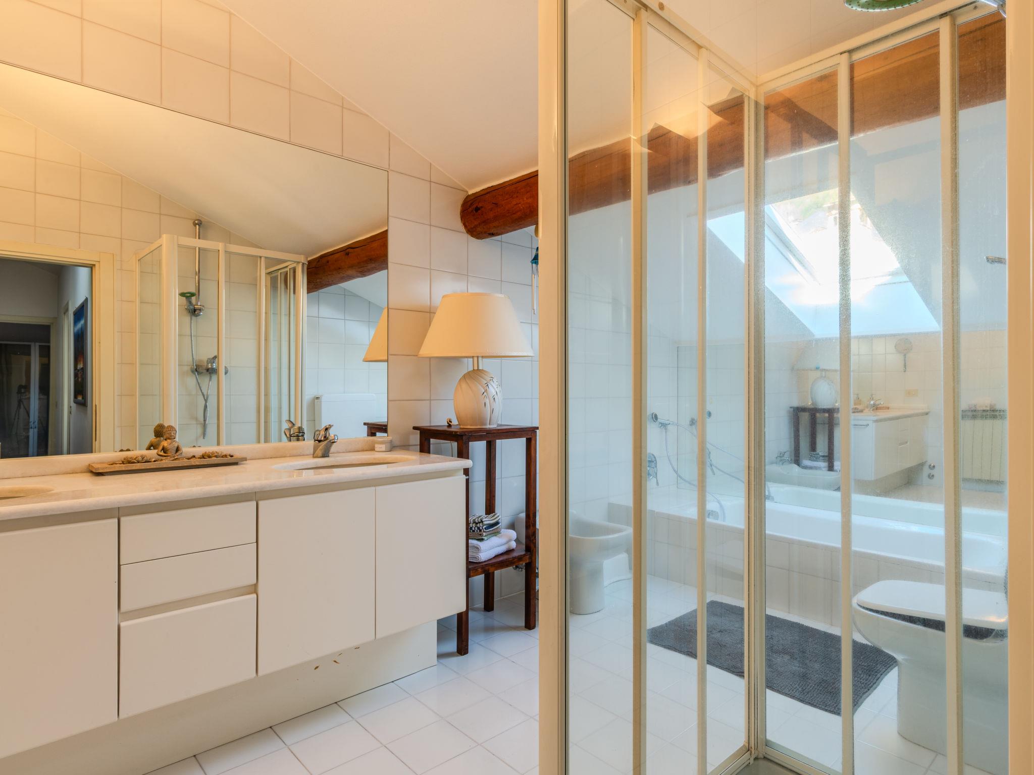 4-room maisonette 200 m2 on 2 levels on 2nd floor. Spacious, partly with sloping ceilings, comfortable and beautiful furnishings: large living/dining room with dining table and satellite TV (flat screen). Kitchen (oven, dishwasher, Gas stove, 4 gas rings, toaster, kettle, microwave, freezer, electric coffee machine) with dining table, open-hearth fireplace (only for decoration). Shower/WC. Upper floor: open large living/sleeping room with sloping ceilings with 1 double sofabed. 1 double bedroom with sloping ceilings. 1 room with sloping ceilings with 2 beds. Bath/shower/bidet/WC. Gas heating. Heating available only from 15.10. to 30.04. Parquet floors, natural stone floors. Marvellous view of the lake and the mountains. Facilities: washing machine, children's high chair, baby cot for up to 2 year olds, hair dryer. Internet (WiFi, free). Please note: non-smokers only, no parking. Smoke alarm, fire extinguisher, no lift. IT013248C2VZKX7E8B