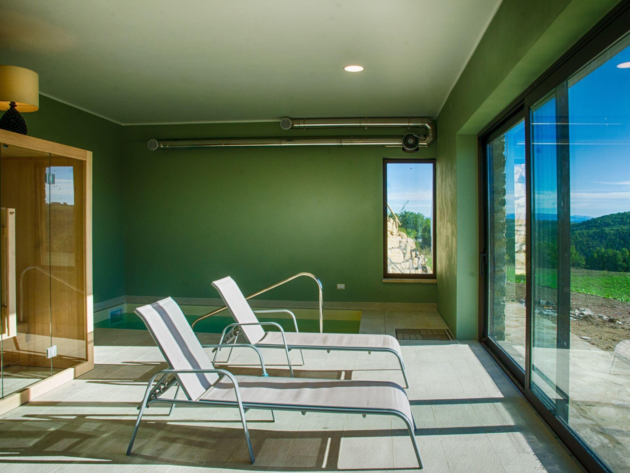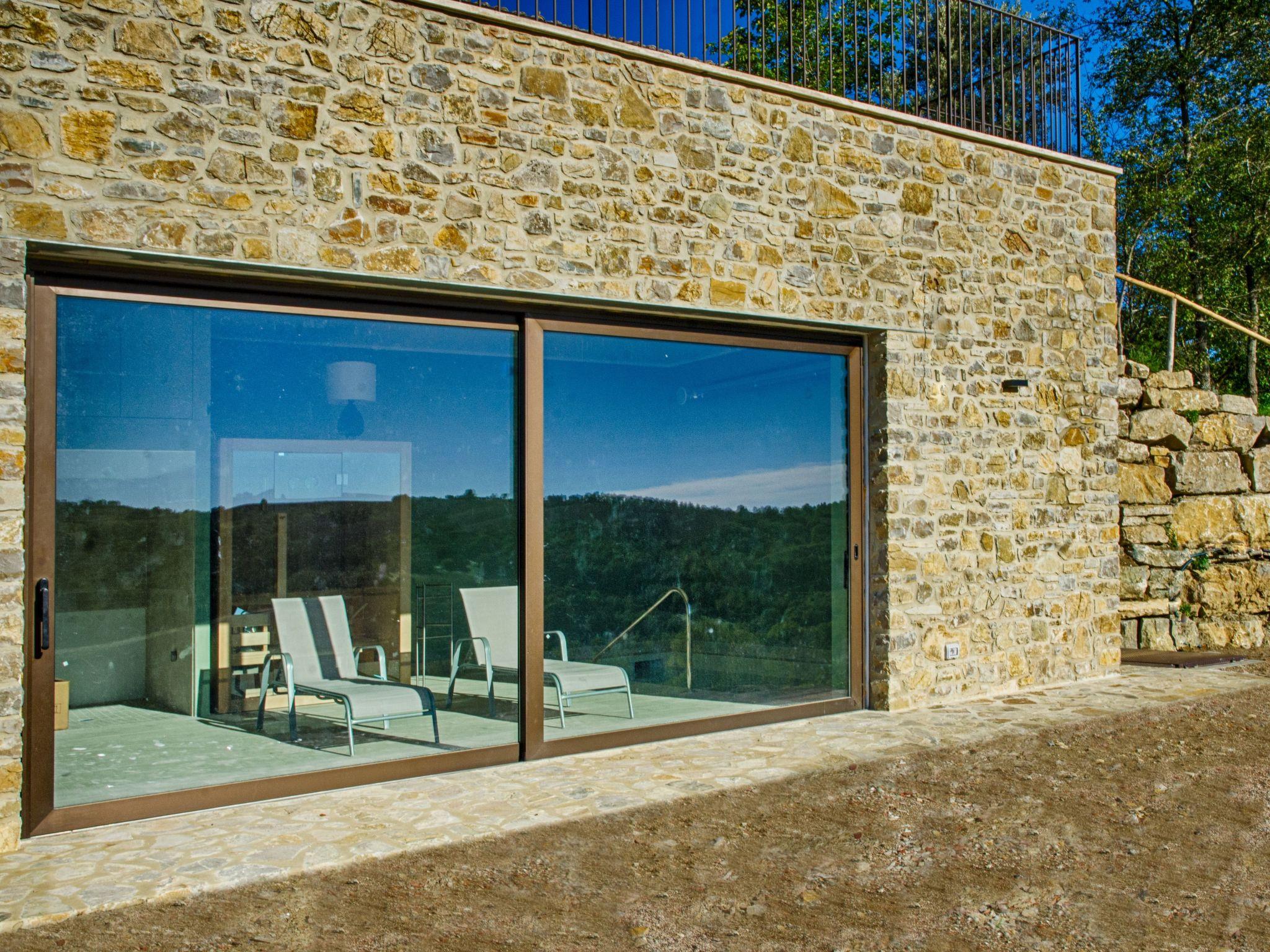 Outside there is a covered, shaded terrace with tables and chairs, a barbecue and a panoramic view.
