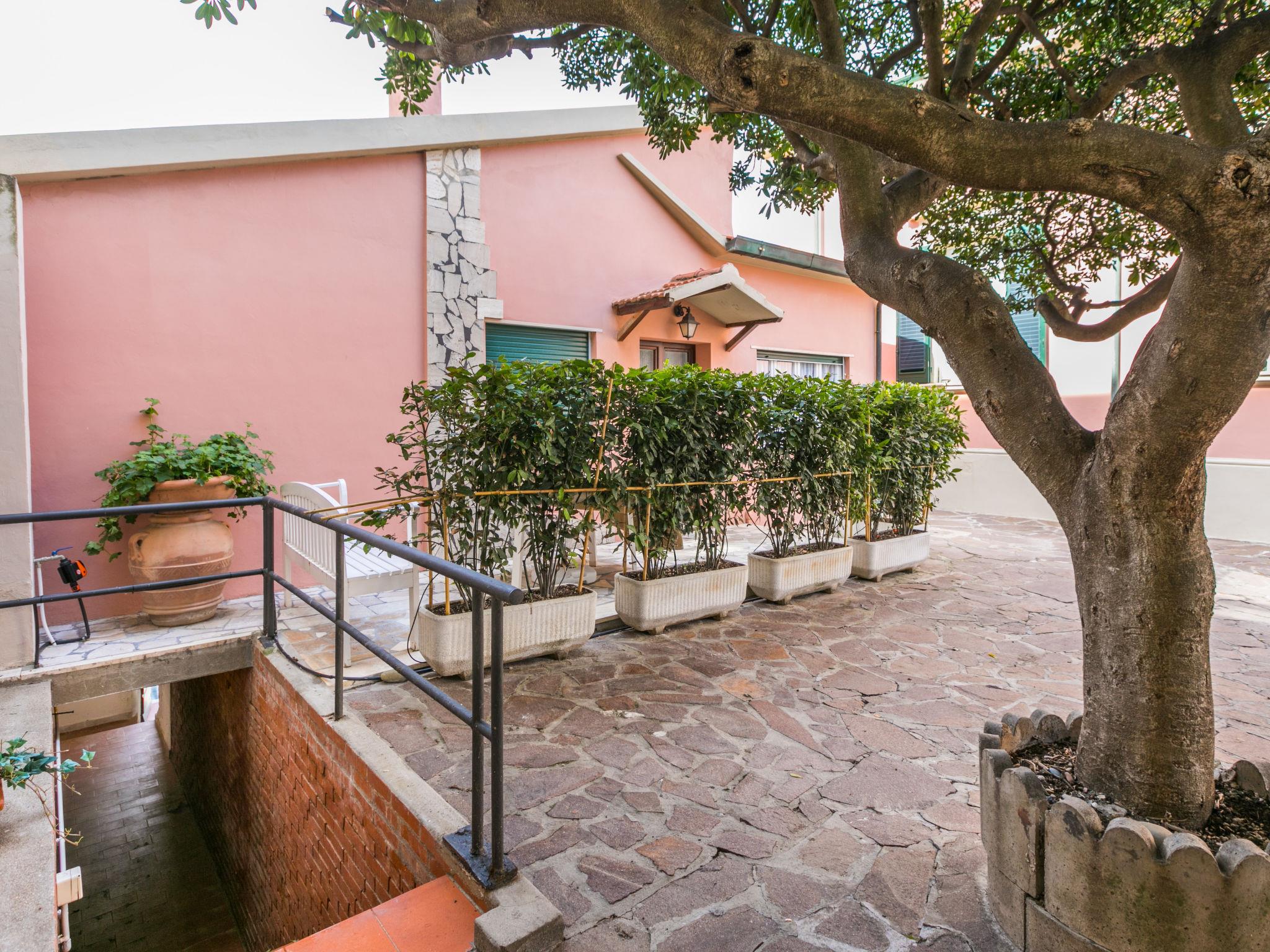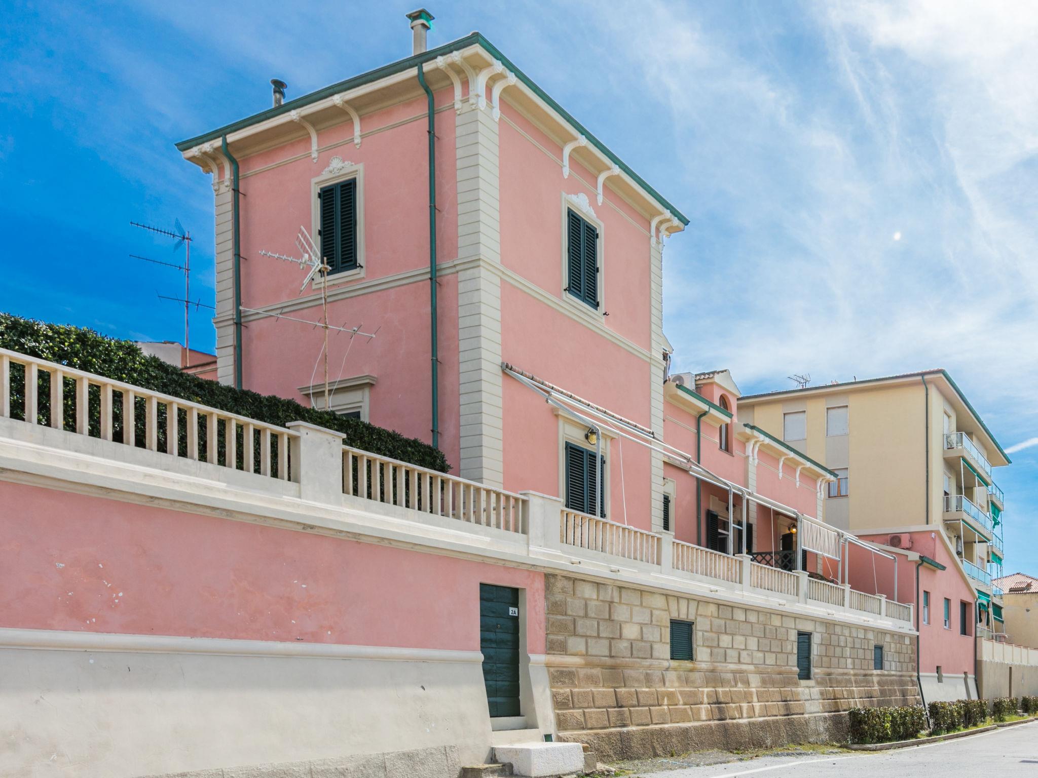The beautiful house, built in Art Nouveau style, is centrally located directly above the port (50 m as the crow flies) of San Vincenzo. A direct path leads to the pedestrian area along the pier and the nearby free beach. Beautiful, historical apartment block "La Rosa dei Venti", 2 storeys, semi-detached. 3 apartments in the property. Property composed of main house and outbuilding, in the centre of San Vincenzo, excellent location: right in the centre but still quiet, 50 m from the sea, 180 m from the beach, direct access to the beach. For shared use: property (fenced). In the house: washing machine (extra) (for shared use), drying room. Linen change (suppl. charge extra). Towel change (suppl. charge extra). Parking on the premises. Shop 100 m, supermarket 500 m, restaurant 100 m, bakery 500 m, bus stop 190 m, railway station "San Vincenzo" 350 m, sandy beach "Spiaggia di Rimigliano" 6 km. Marina 50 m. Nearby attractions: Golfo di Baratti 13 km, Follonica 30 km, Siena 120 km. Well-known ski regions can easily be reached: Dog/Hunde Beach Strand 4 km. Please note: the owner lives in the same residence.
