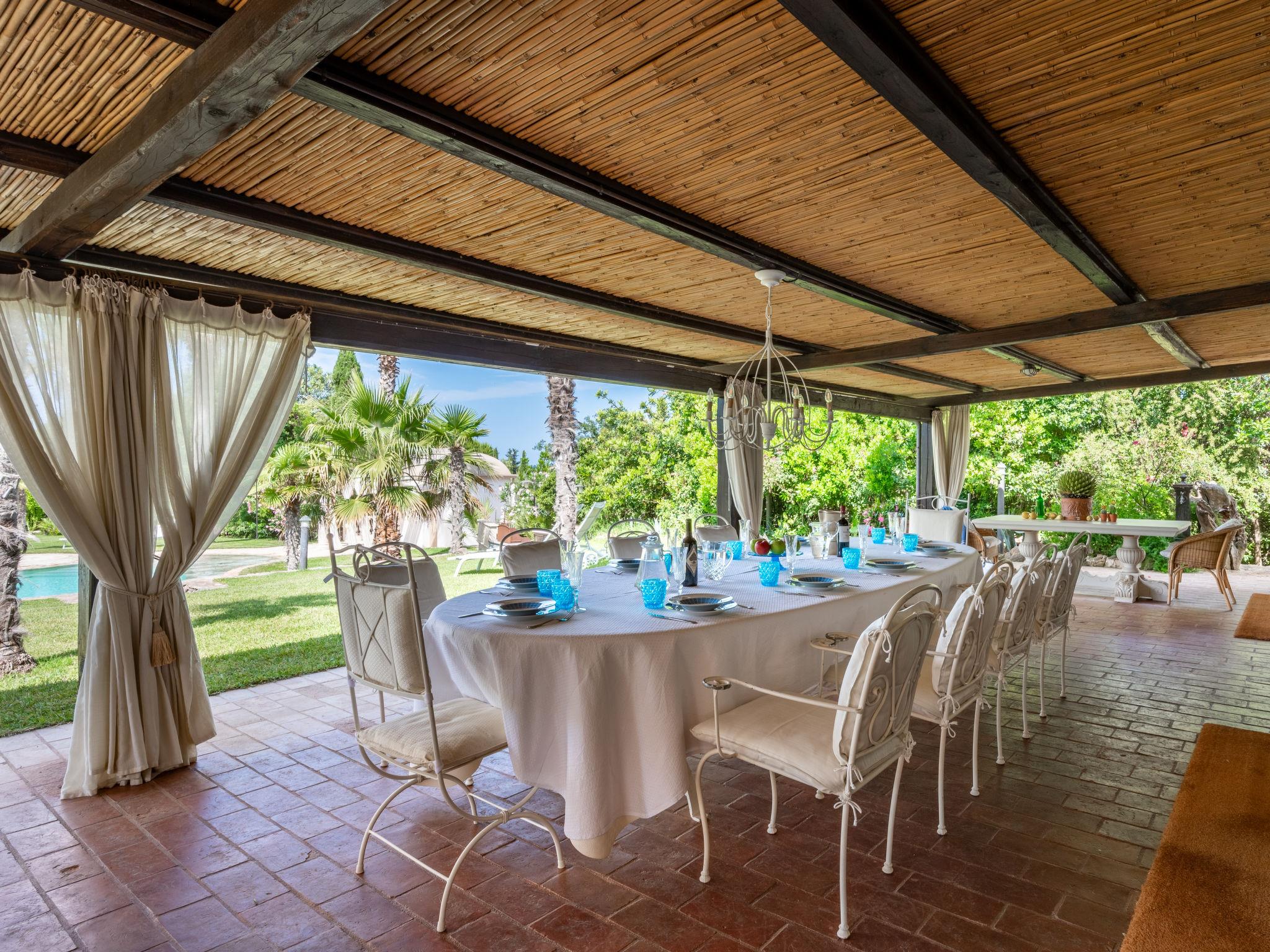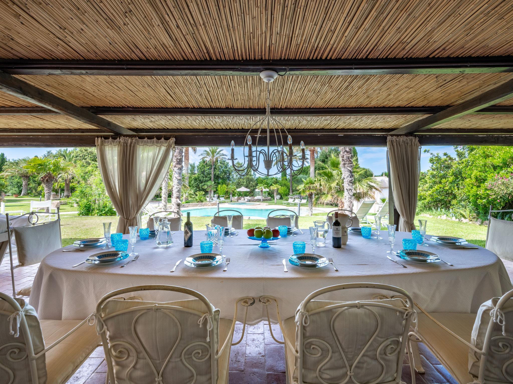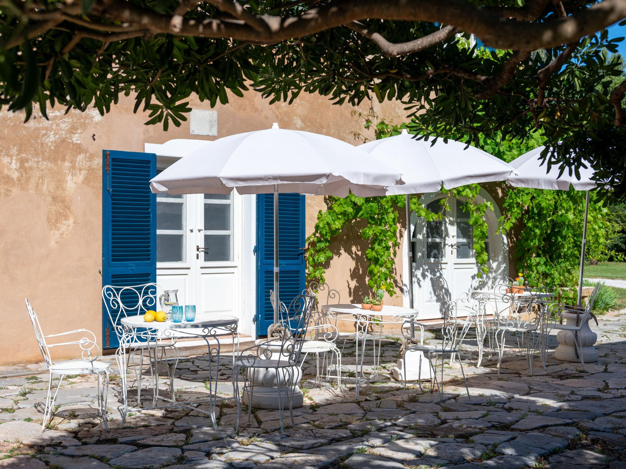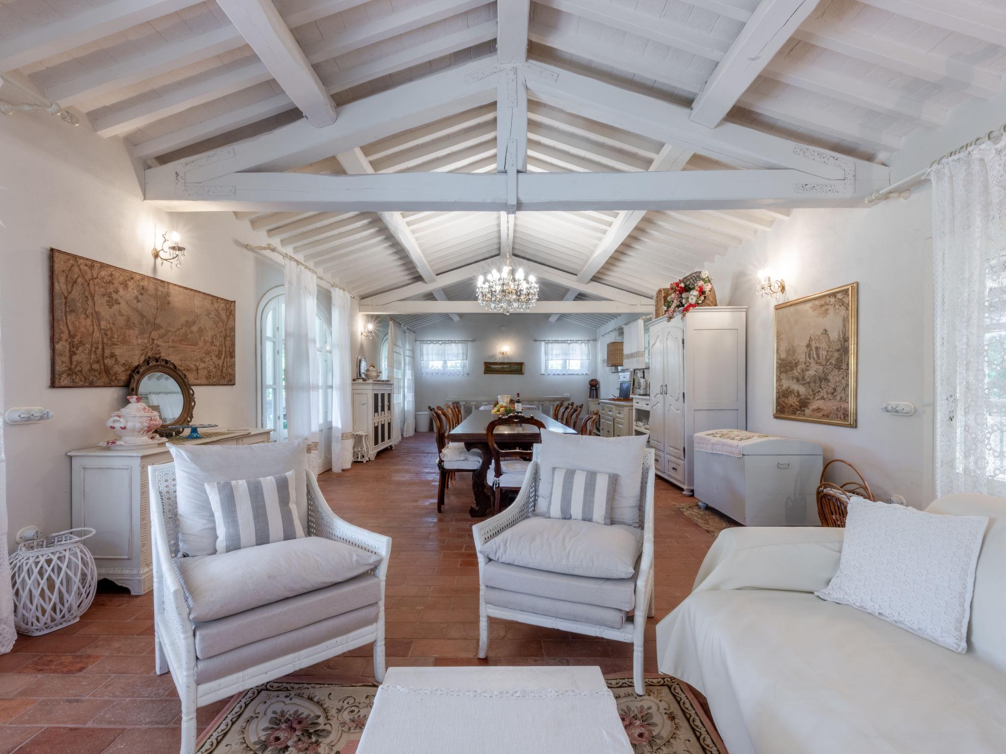 9-room villa. Very comfortable and tasteful furnishings: living/sleeping room with 1 double bed, dining table, kitchen corner, satellite TV, flat screen, electric heating and air conditioning. Exit to the garden. Living room with open-hearth fireplace, kitchen corner and satellite TV. Exit to the garden. Living/sleeping room with 1 double bed, shower/bidet/WC, satellite TV, electric heating and air conditioning. Exit to the garden. Large living/dining room with dining table, kitchen corner, shower/bidet/WC, satellite TV, flat screen, Home cinema electric heating and air conditioning. Exit to the terrace. Open kitchen (oven, dishwasher, 4 gas rings, kettle, freezer, electric coffee machine). Exit to the garden. 4 showers/bidet/WC. Gas heating. Upper floor: 1 room with 1 double bed, electric heating and air conditioning. 1 room with 1 bed, 1 double bed, hand-basin, electric heating and air conditioning. Exit to the loggia. 1 room with 1 french bed (150 cm), electric heating and air conditioning. Exit to the garden. Shower/bidet/WC. 4 terraces partly covered, patio. Terrace furniture, barbecue electric barbecue, deck chairs (12), box-room. Facilities: washing machine, iron, mosquito net, children's high chair, baby cot, hair dryer. Internet (WiFi, free). Please note: suitable for families. Non-smokers only. Maximum 2 pets/ dogs allowed. Fire extinguisher. No internal connecting door between the separated properties. The entire country estate with the main house and 3 outbuildings for exclusive use, a total of approx. 290m² of living space. 3-room main house, 2 floors, approx. 130 m². Annex house: 2-room house, 2 floors, approx. 35 m². Garden house: 1-room house, approx. 25 m². Pool house: approx. 70 m² with living room with sofa bed, games and TV area, carom billiards. Bedlinen, towels, final cleaning and all energy costs are included. IT049002C212U652F3