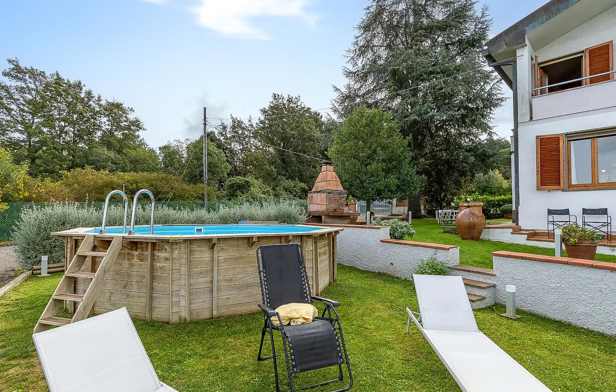 Lad børnene plaske af hjertens lyst i poolen og lege på den friske græsplæne, mens I snakker i skyggen af ??træerne over et glas vin og forbereder en stemningsfuld grillmiddag.