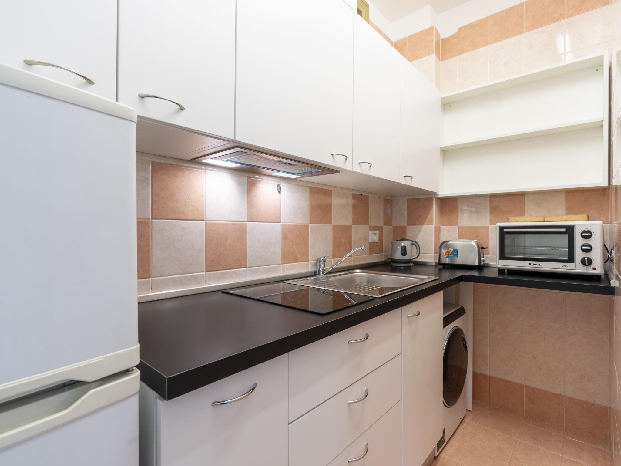 "Mediterranee", 1-room apartment 40 m2. Modern and tasteful furnishings: living/dining room with 1 double wall-trunk bed (160 cm, length 200 cm). Exit to the balcony. Kitchenette (mini-oven, toaster, kettle). Shower/bidet/WC. Air-conditioning, forced-air heating. Balcony 4 m2. Balcony furniture. Very beautiful view of the sea and the resort. Facilities: washing machine, hair dryer. Internet (WiFi, free). IT008055C2KXEKZXCS