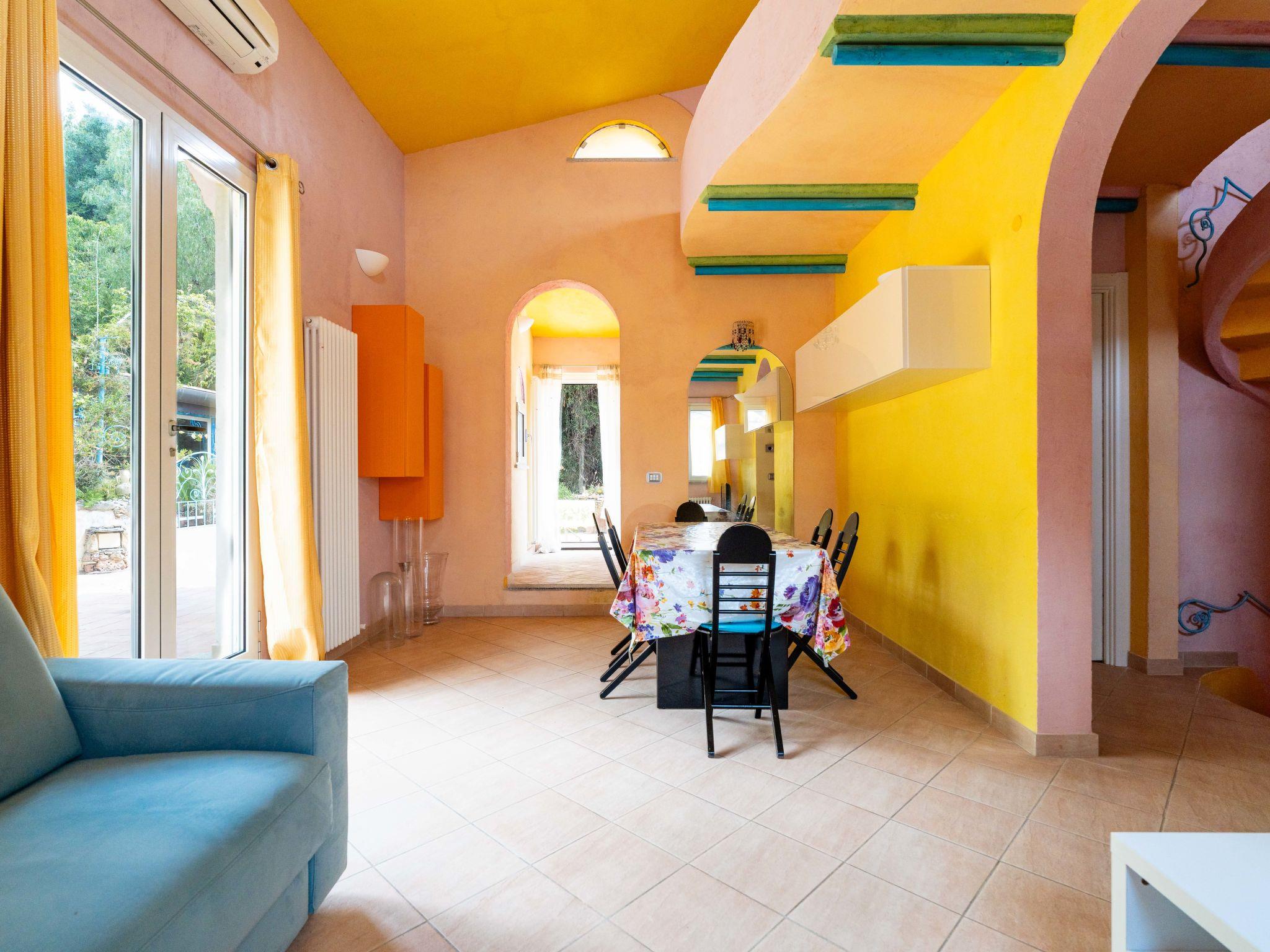 "Melograno", 3-room semi-detached house 100 m2, on the ground floor. Comfortable and cosy furnishings: living/dining room with 1 sofabed (140 cm, length 200 cm). Exit to the terrace. Kitchenette (oven, dishwasher, 4 gas rings). Exit to the terrace. Shower/bidet/WC. Gas heating, air-conditioning, forced-air heating. Heating available only from 01.11. to 15.04. On the lower ground floor: 1 double bedroom with shower/bidet/WC and TV. Upper floor: 1 double bedroom. Terrace 100 m2. Beautiful view of the sea and the resort. Facilities: washing machine, baby cot for up to 2 year olds, hair dryer. Internet (WiFi, free). Parking at the house. Please note: private entrance. IT008055B4B83W8L6J