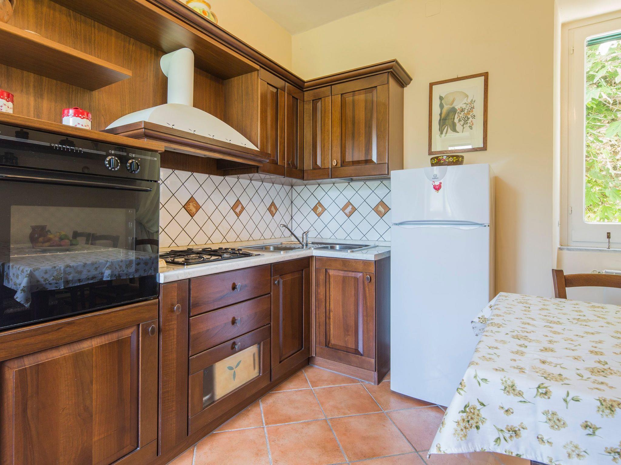 The house has an independent entrance and is built on two floors on the ancient fortified walls. On the first floor is the circular living room with a double sofa bed, fireplace, bookcase, TV, desk, and a large kitchen complete with appliances and utensils. On the first floor there is a bathroom with washbasin, bathtub/shower and bidet.