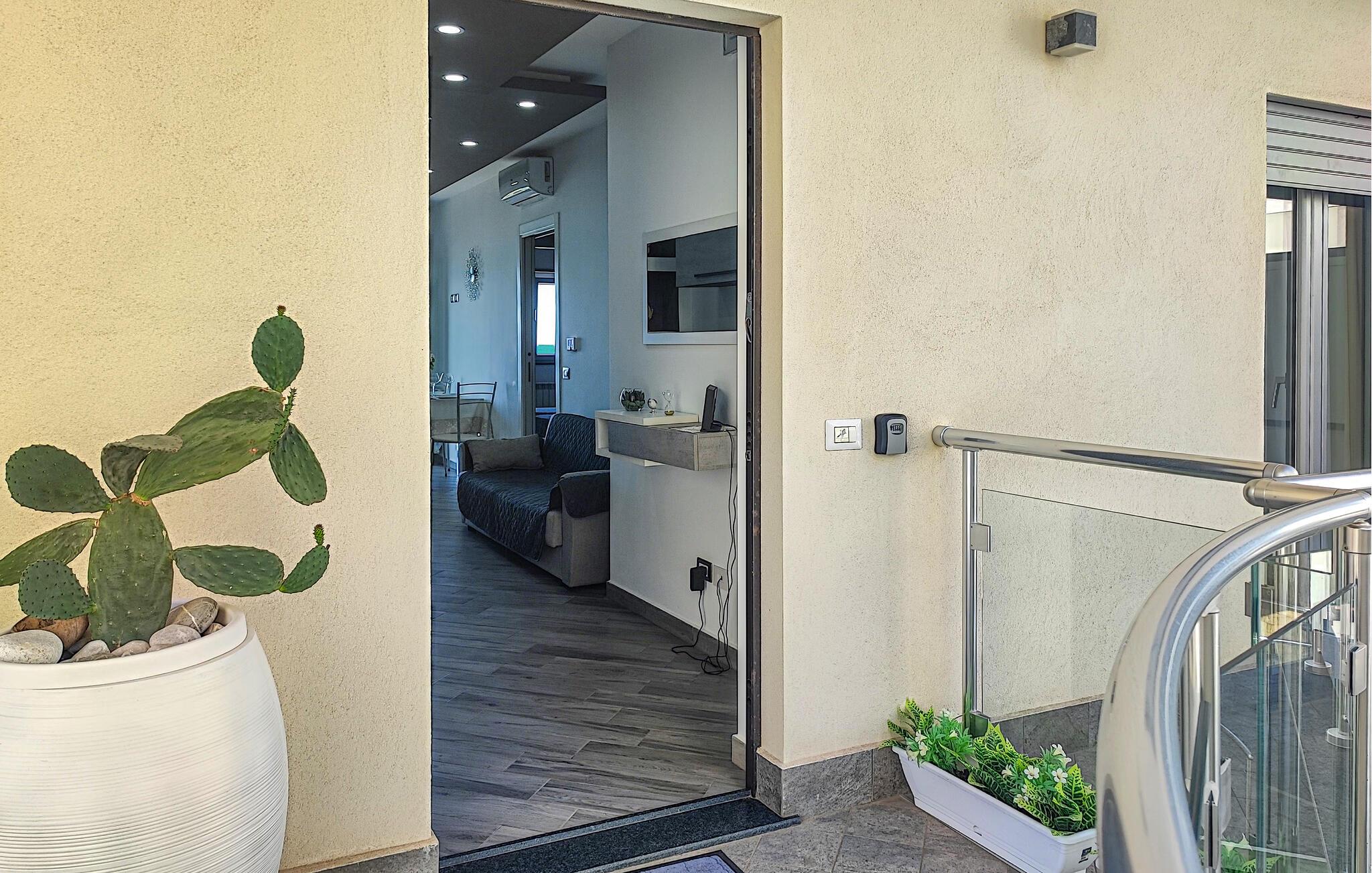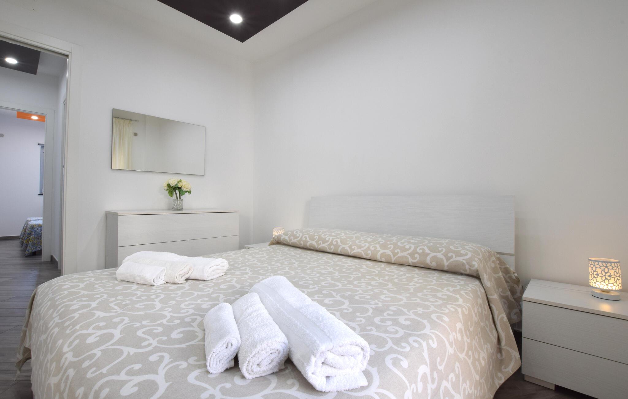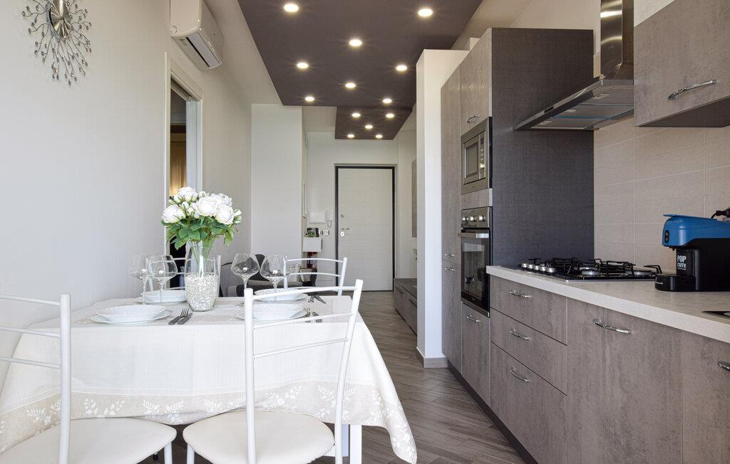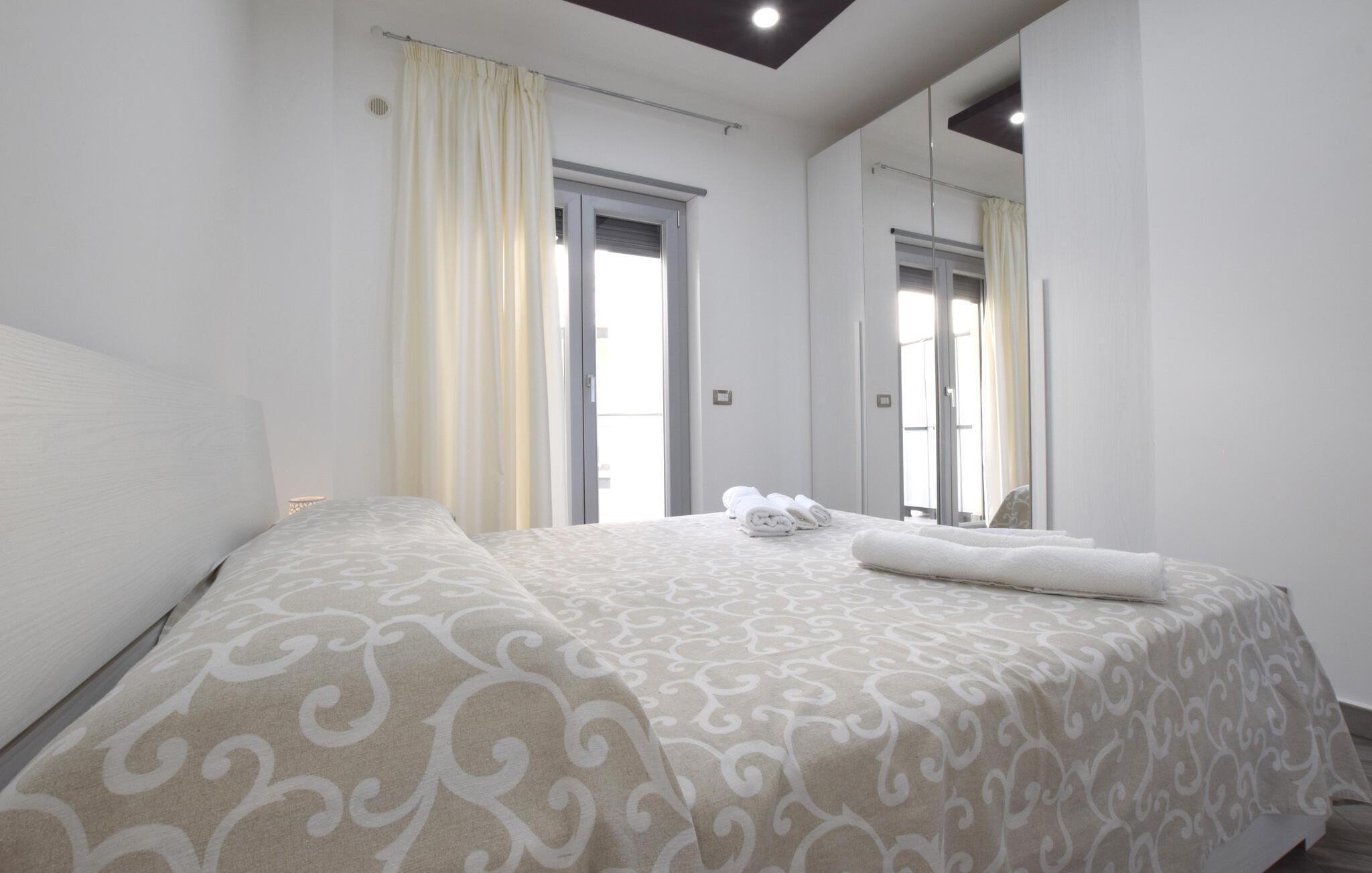 Nyd en smuk havudsigt fra denne komfortable lejlighed ved stranden. Velkommen til denne moderne lejlighed, der ligger direkte på sandstranden i Sant'Agata di Militello, hvor I kan nyde solrige dage med udsigt over det blå hav. Lad den behagelige brise strømme gennem de smagfuldt møblerede værelser, mens I tryller lækre pastaretter frem og serverer dem ved det stilfuldt dækkede spisebord. Snak på altanen over et glas vin og lad jer fortrylle af udsigten, som I kan nyde fuldt ud. Slentr gennem den charmerende gamle bydel med dens caféer og markeder, besøg det imponerende Castello Gallego, og nyd friskfanget fisk lige ved havnen. Tag på vandretur i den nærliggende Parco dei Nebrodi, hvor vilde landskaber, vandfald og udsigtspunkter med udsigt over de Lipariske Øer venter på jer. Kør langs kysten til Cefalù og beundr den berømte normanniske katedral, eller slap af på de lange sandstrande. For et rigtigt eventyr kan I tage en båd til de Lipariske Øer – Lipari eller Vulcano byder på imponerende natur og krystalklart vand.