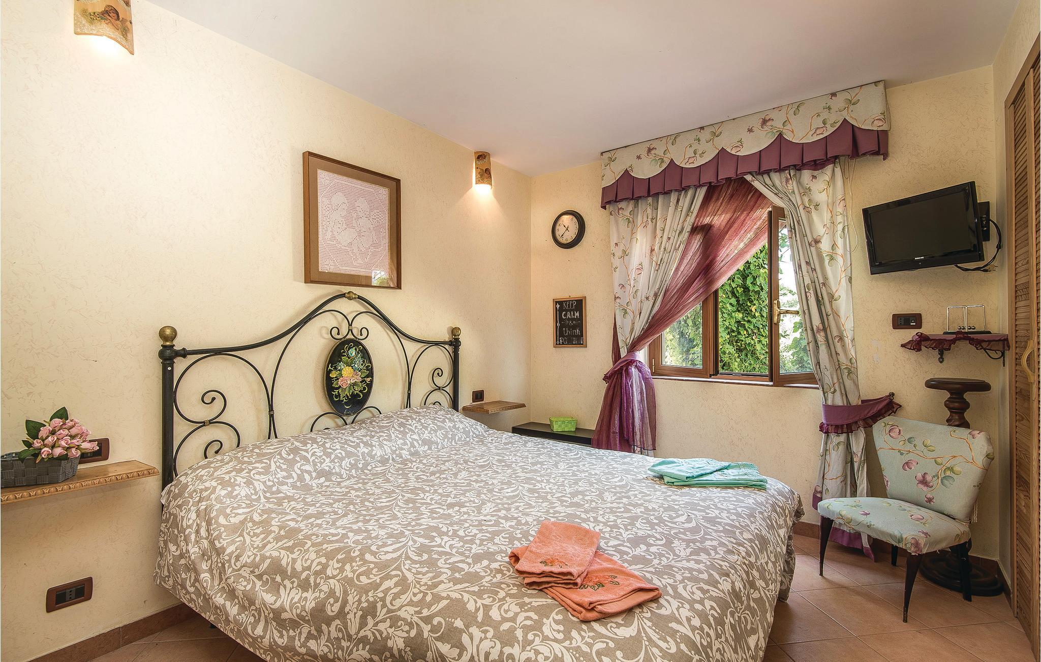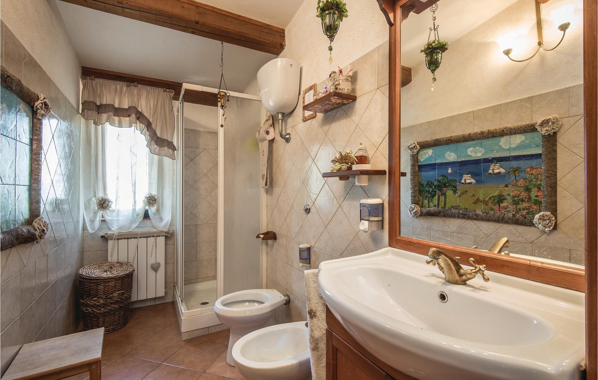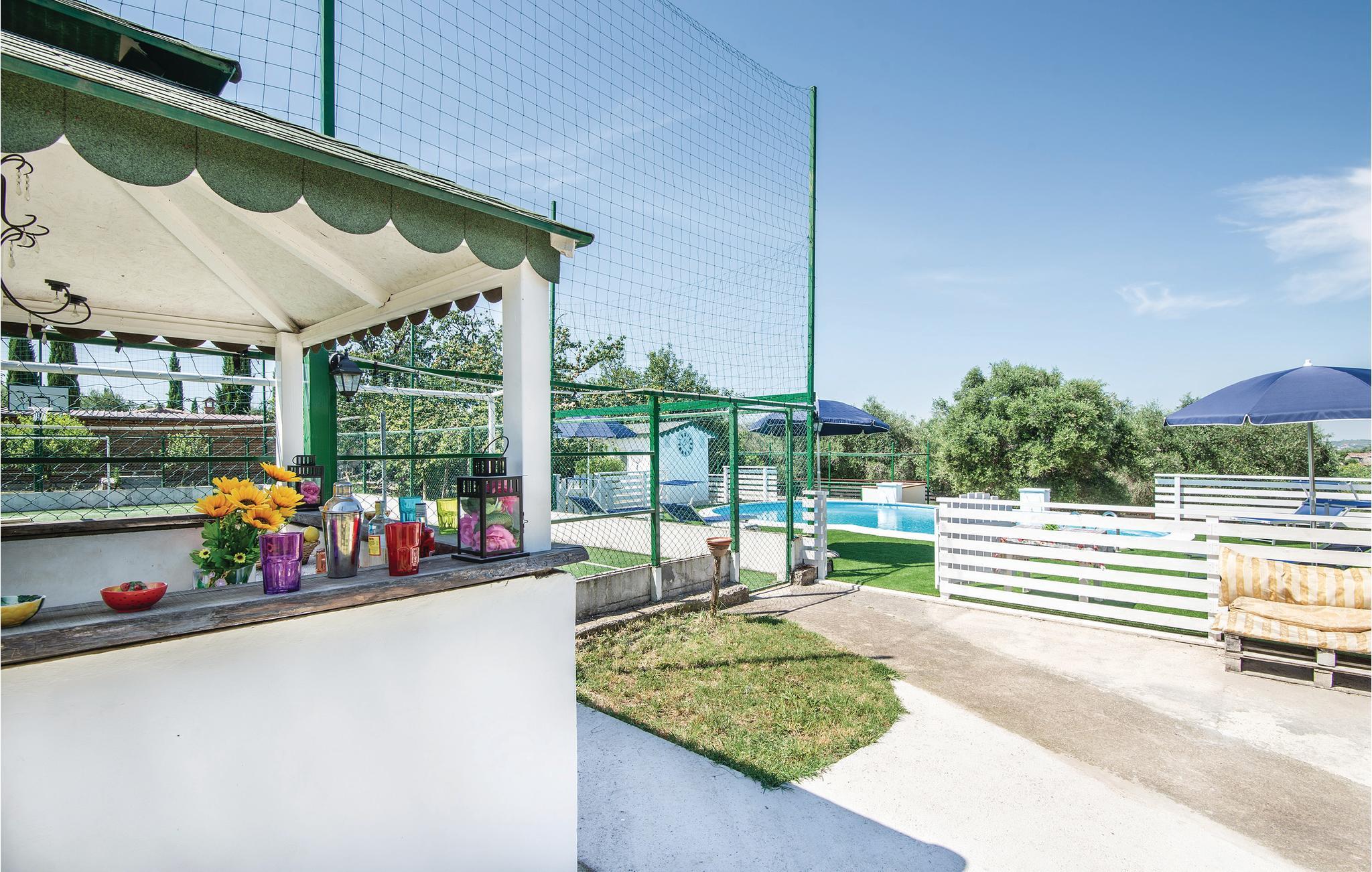 Smukt feriehus i Sant'Angelo Romano (Guidonia 4 km) med fantastisk udsigt over de omkringliggende bakker. Huset er enkelt, men komfortabelt indrettet og fordelt på to gode niveauer. Det har et godt udendørs område og en privat pool. En trampolin, et område med mulighed fodbold, tennis og basketball, bowling og bueskydning, et udendørs bad, et udendørs køkken og en brændeovn er til din rådighed. Huset er ideelt til en ferie med afslapning og underholdning, men også som et udgangspunkt for at besøge de vigtigste turistmål: Rom (30 km), golfbane med 18 huller (12 km), Albano-søen (40 km) til sejlsport og kano, Aniene-floden (15 km) som er ideel til rafting, det smukke naturreservat Marcigliana (10 km), de termiske bade i Tivoli (5 km), Rieti (67 km), Terni (95 km). På forespørgsel kan I fornøje jer med madlavningskurser, smag af lokale produkter, massage, tennislektioner, bueskydning, bowling, billard (betaling på stedet).
