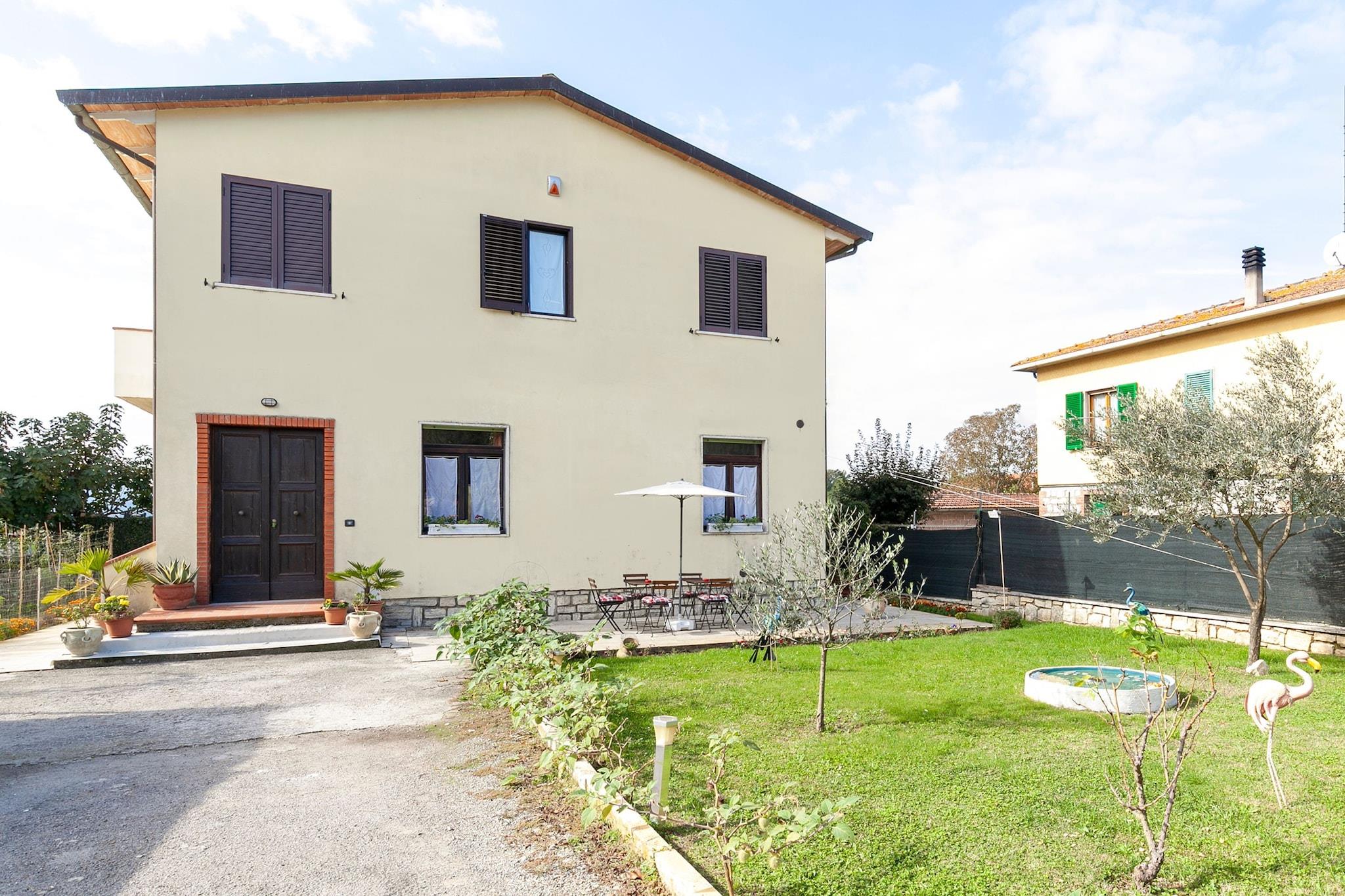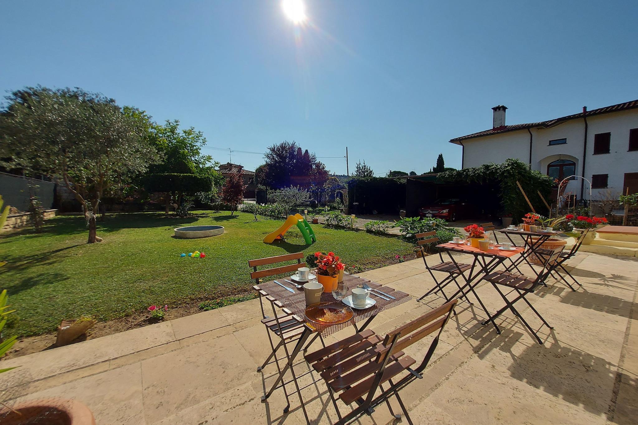 I boligområdet Santa Maria tilbyder dette tilflugtssted i stueetagen den essentielle toscanske oplevelse. Med en privat indhegnet have, en forfriskende overjordisk pool og en hyggelig terrasse, der er perfekt til udendørs spisning, er den designet til afslapning og sjov. Uanset om du nyder poolens jacuzzi-lignende dyser eller ser børnene lege med legeredskaberne, inviterer hvert hjørne dig til at slappe af. Indenfor er stedet smagfuldt møbleret og omhyggeligt udstyret med selskabsspil, bordfodbold og endda en høj stol til de små, hvilket gør det ideelt for familier eller par, der søger både komfort og glæde. Kun 1 km væk ligger den fortryllende landsby Lucignano, en skjult perle med sit unikke cirkulære layout og middelalderlige charme. Gå en tur i de brostensbelagte gader, opdag kunsthåndværkerbutikker og nyd panoramaudsigten over Valdichiana. Herfra er du perfekt placeret til at udforske Toscanas mest berømte destinationer - nyd Vino Nobile i Montepulciano (25 km), beundr renæssancekunst i Arezzo (28 km) eller sol dig i Sienas storhed (48 km). For naturelskere er de rolige bredder af Trasimenosøen (40 km) og naturskønne vandreture ved Diga del Calcione inden for rækkevidde. lover en rig blanding af kultur og udendørs eventyr. Slentr ind til Lucignano for morgenkager hos det lokale bageri eller en cappuccino på en hyggelig café kun 500 m væk. Om aftenen kan du spise under stjernerne på charmerende trattoriaer, der serverer klassisk toscansk mad – gå ikke glip af pici pasta, bistecca alla fiorentina og lokale vine. For mere variation kan du tage til det nærliggende Sinalunga eller forkæle dig selv med regionale specialiteter i Montepulcianos berømte vinkældre.