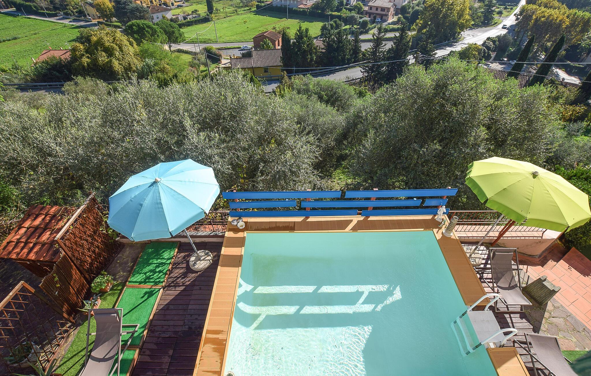 Jeres feriehus i Santa Maria a Monte er et skønt tilflugtssted, der vil overgå jeres forventninger til komfort og stil. Nyd den herlige pool, omgivet af hyggelige liggestole, perfekt til en afslappende eftermiddag i solen. Lad blikket glide over Toscanas grønne bakker, mens I slapper af på den rummelige terrasse. Start dagen med morgenmad på den solrige terrasse. Den livlige stue, indrettet med farverige møbler og moderne detaljer, lægger op til hyggelige aftener med familien. Her kan I nyde den varme atmosfære og tilbringe kvalitetstid sammen.