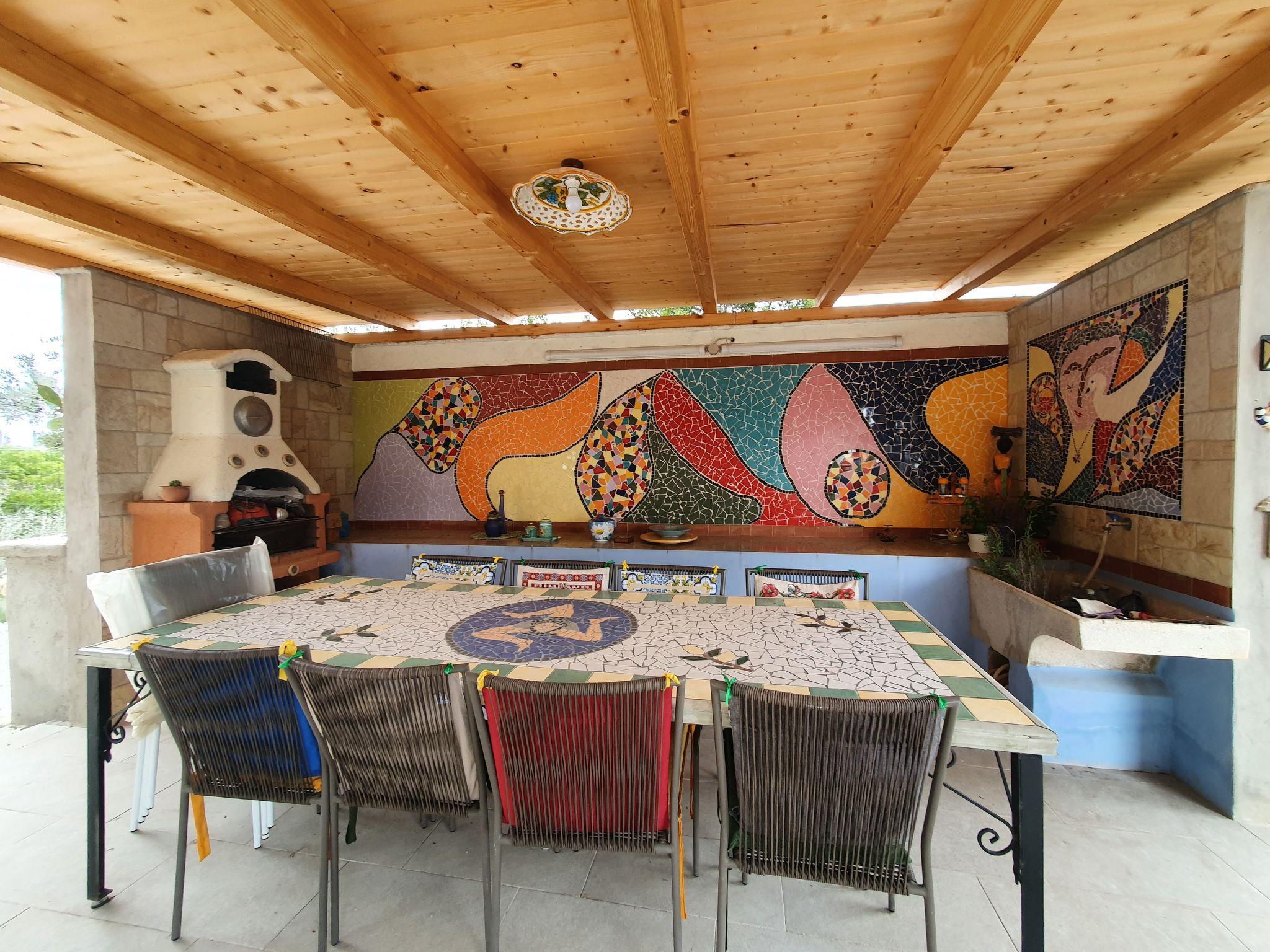 6-room villa 160 m2 on 2 levels, south facing position. Bright, comfortable and tasteful furnishings: living/dining room with TV. Exit to the terrace. 3 rooms, each room with 1 double bed, air conditioning, fan and forced-air heating. Kitchen (5 hot plates, oven, dishwasher, toaster, kettle, microwave). 3 showers/bidet/WC, bidet, sep. WC. Upper floor: (exterior staircase) living room with sloping ceilings with TV. 1 room with sloping ceilings with 1 bed, air conditioning, fan and forced-air heating. Small kitchen (4 hot plates, oven) with dining table. Shower/bidet/WC. Heating, forced-air heating. Heating available only from 01.12. to 31.03. Terrace 80 m2, roofed terrace 150 m2, porch 15 m2. Terrace furniture, barbecue, deck chairs (8). Very beautiful view of the countryside and the ocean. Facilities: washing machine, iron, mosquito net, children's high chair, baby cot for up to 2 year olds (extra), hair dryer. Internet (WiFi, free). Please note: smoke alarm, fire extinguisher. No internal connecting door between the floors. The villa is equipped with two additional outdoor kitchens located near the partially covered areas. When there are less than the maximum number of guests staying at the property, one floor will not be available for use. IT088005C2RZOVYFVJ