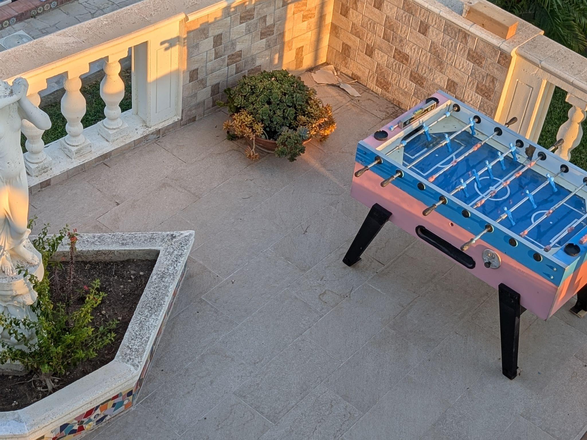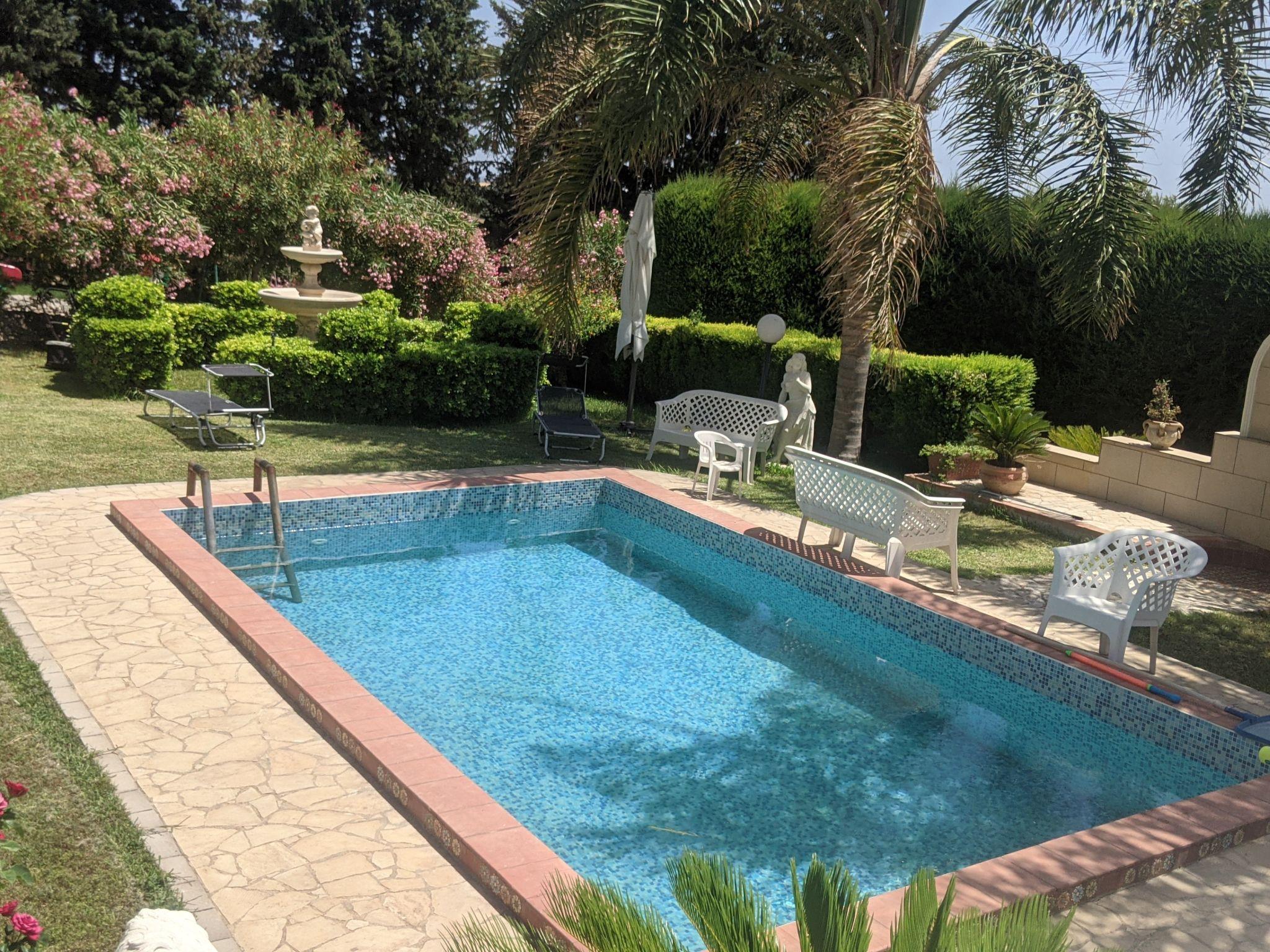 Large, cosy, comfortable villa "Morgana", 2 storeys, surrounded by trees and meadows. In the district of Santa Maria del Focallo, 3 km from the centre, 9 km from the centre of Ispica, in a secluded, quiet, sunny position on top of a hill, 5 km from the sea, 7 km from the beach. Private: property 1'000 m2 with lawn 300 m2 trees, swimming pool (6 x 4 m, depth 130 cm, seasonal availability: 01.Apr. - 31.Oct.). Outdoor shower, pool maintenance by the owner/gardener. In the house: table football. 400 m long bumpy motor access to the house. Parking (for 4 cars) on the premises. Grocery 3 km, supermarket 3 km, restaurant 3 km, bar 3 km, bus stop 3 km, railway station "Ispica" 8 km, sandy beach "Santa Maria del Focallo" 7 km, rocky beach "Punta Cirica" 6 km. Nearby attractions: Marzamemi 19 km, Isola delle Correnti punto Sud Sicilia 21 km, Portopalo di Capo Passero 22 km, Noto 28 km, Modica 32 km, Scicli 38 km. Well-known lakes can easily be reached: Riserva Naturale Laghetti del Cassibile 45 km. Hiking paths: Riserva Naturale Faunistica di Vendicari 23 km. Please note: car recommended. Residence with electric gates.