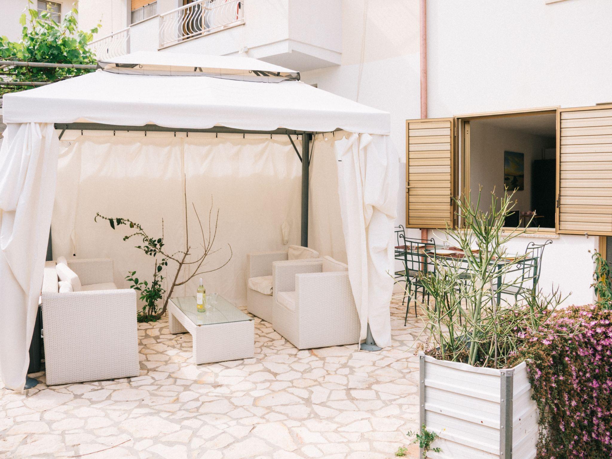 "Wendy", 3-room apartment 51 m2, on the ground floor. Beautiful and cosy furnishings: dining room with air conditioning. Exit to the garden. 1 double bedroom, window onto the courtyard with air conditioning. 1 room, window onto the courtyard with 2 beds. Kitchenette (4 gas rings, toaster, kettle, microwave, electric coffee machine). Shower/bidet/WC. Boiler. Terrace furniture, barbecue. Facilities: iron, hair dryer. Internet (WiFi, free). Parking (extra). Please note: suitable for families. Non-smokers only. Maximum 1 pet/ dog allowed. IT091006C2000T6292