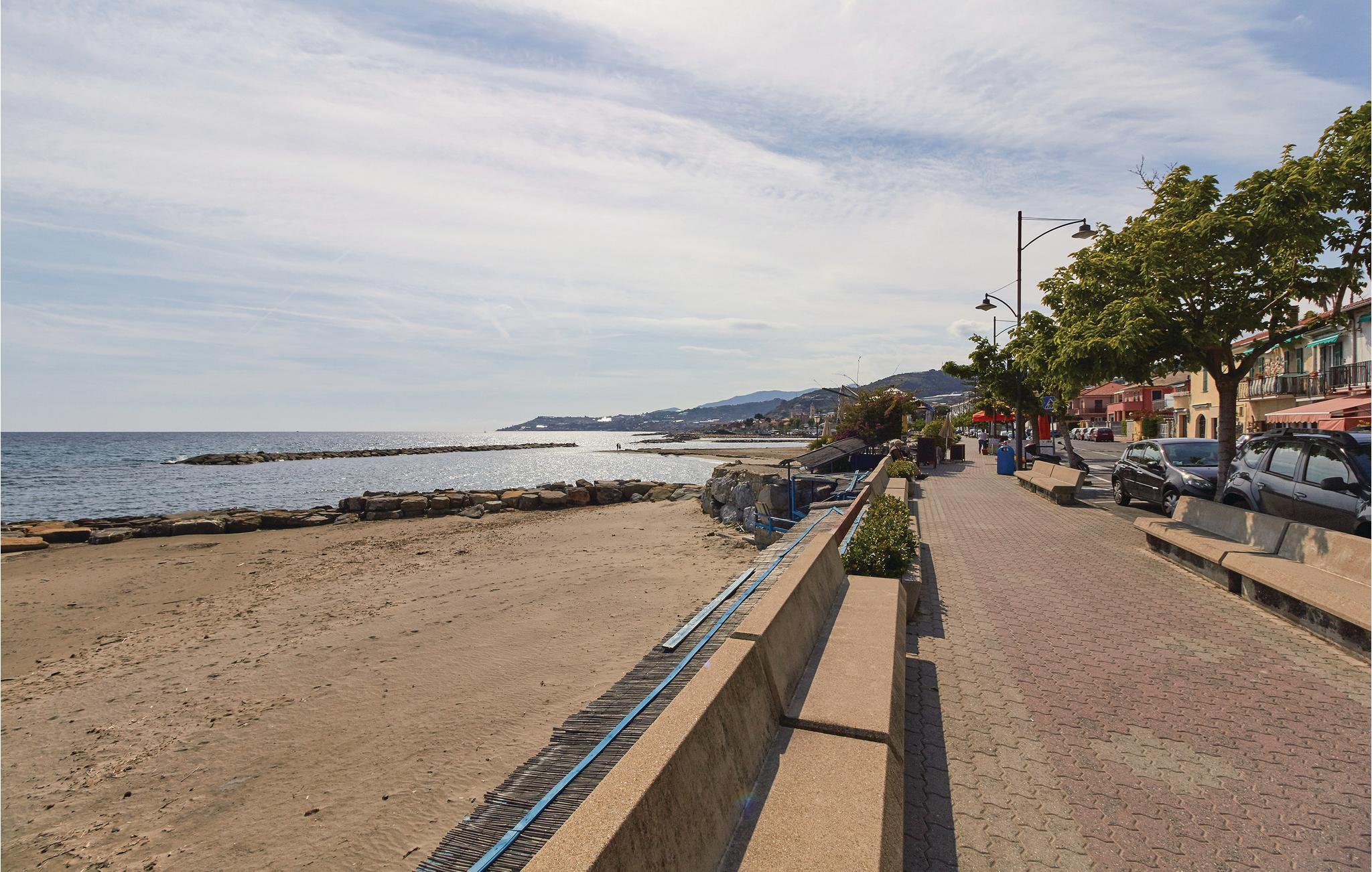 Kun 1 km fra de vidunderlige sandstrande langs Riviera dei Fiori venter denne pæne ferielejlighed på øverste sal, med adgang oppefra. Lejligheden vender mod syd og byder på en overvældende 180°-panoramaudsigt mod turisthavnen af Marina degli Aregai og til det Liguriske Hav. Fra en lille terrasse og det store, udstyrede udendørsområde nyder I godt af en dejlig udsigt til havet. Beliggenheden er ideel til ikke kun at besøge de dejlige strande af Sanremo (13 km), Riva Ligure, Santo Stefano al Mare og Arma di Taggia (6 km), men også nært beliggende Côte d’Azur (Mentone 47 km). Dertil kan I tage til de botaniske Hanbury-haver eller se de forhistoriske fund af Balzi Rossi ved Grimaldi (museum). Hvis I holder af at vandre eller cykle, så venter der ved San Lorenzo Europas længste kystvej. Langs en gammel jernbanelinje, direkte ved havet og med vidunderlig udsigt, langt bedre end fra den almindelige vej, fører vejen til Ospedaletti. 36 km herfra ligger Triora, heksenes seværdige landsby med et usædvanligt museum. Der er omkring 69 km til de imponerende huler af Toirano. Til den karakteristiske middelalderlandsby Dolceacqua med sin berømte stenbro og resterne af Doria-slottet over byen er der 46 km.