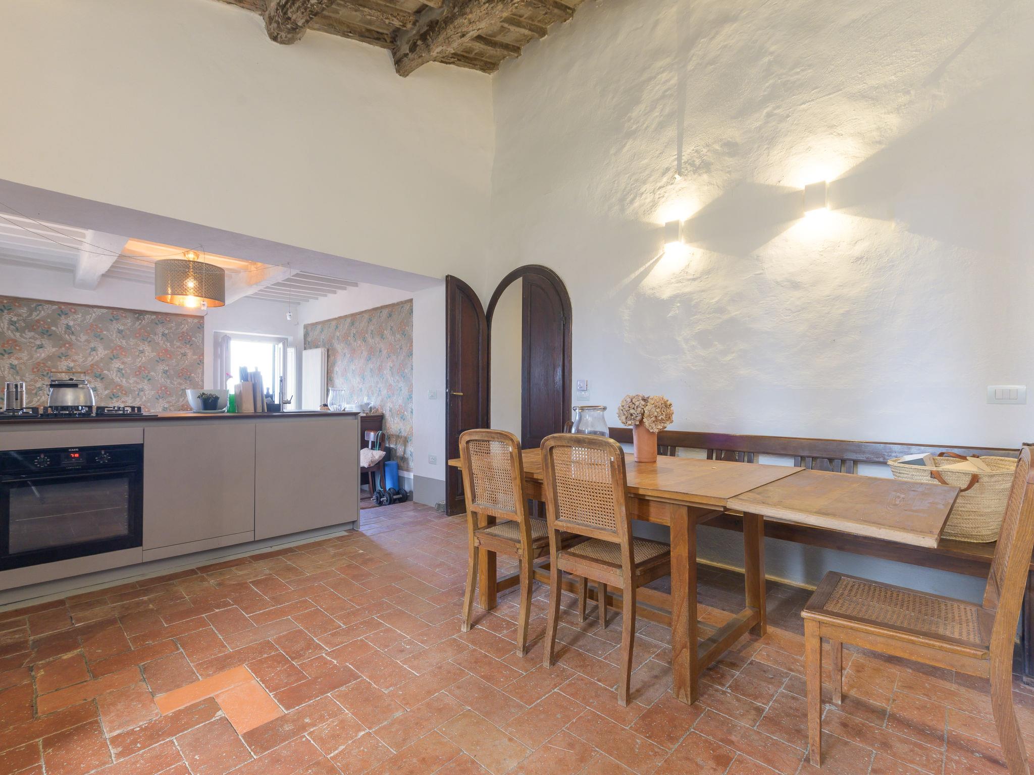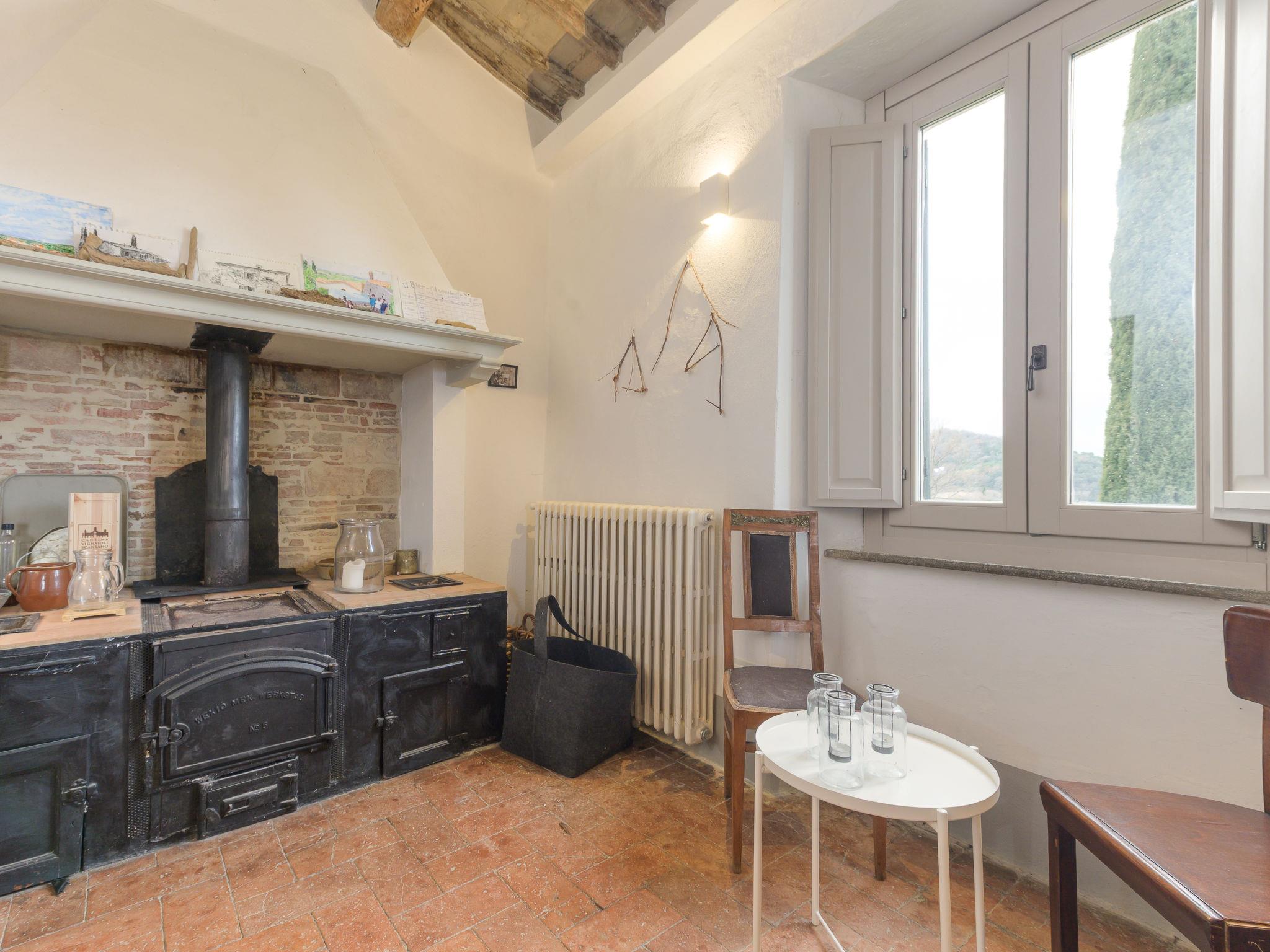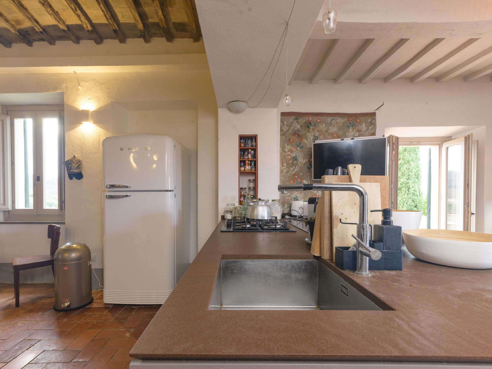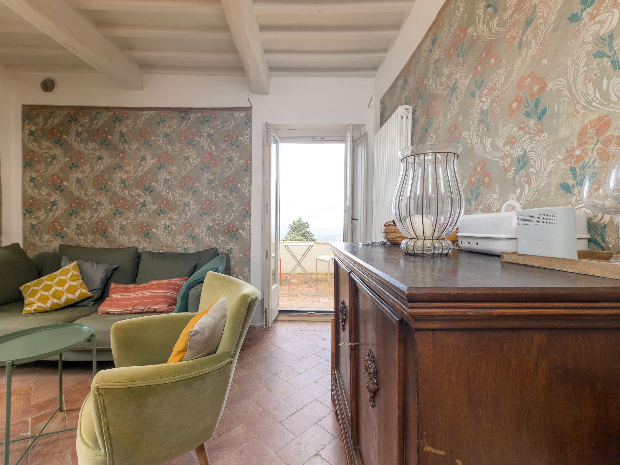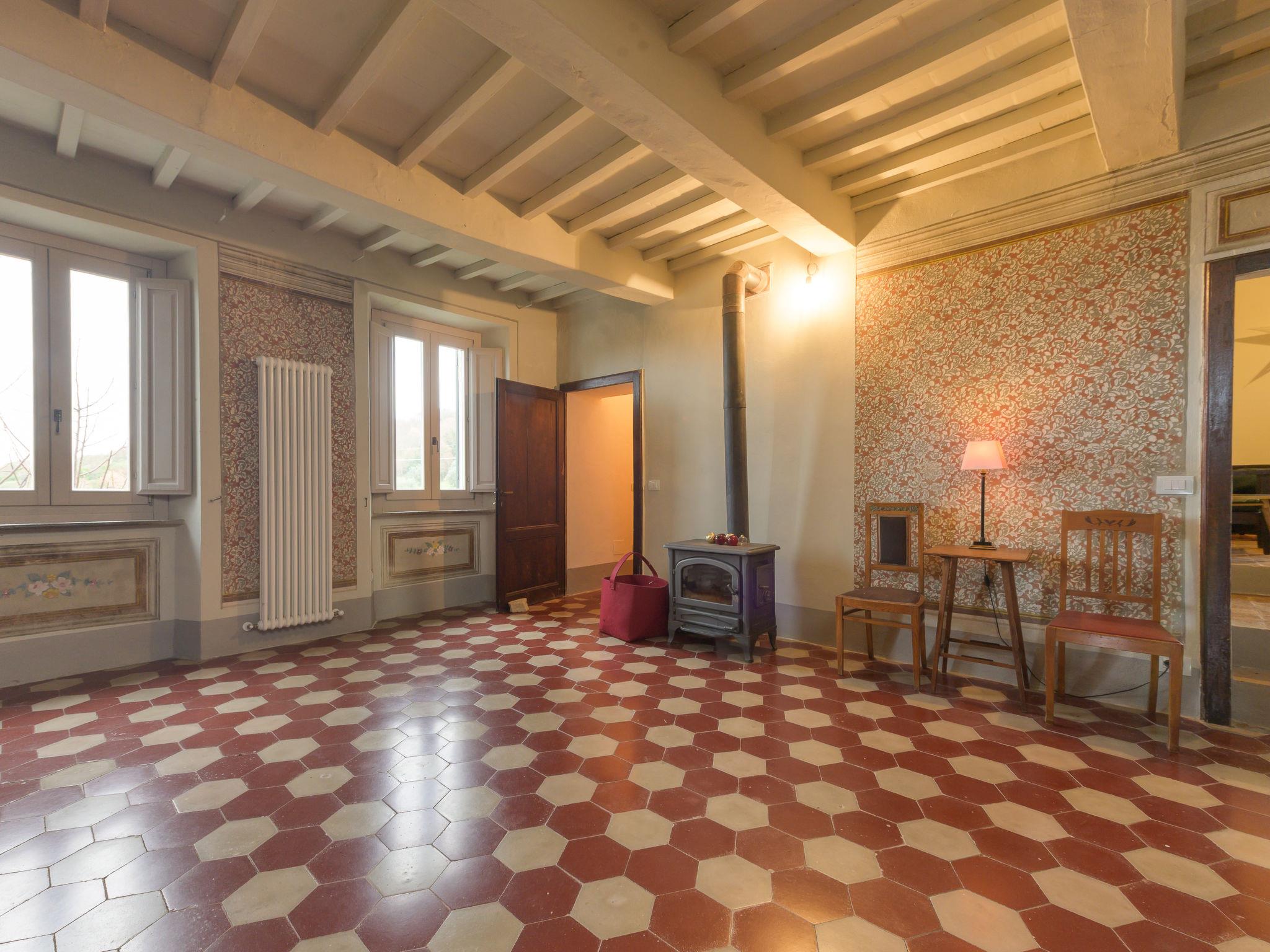 8-room villa 210 m2 on 2 levels. Tasteful and stylish furnishings: living room with TV. Exit to the garden, to the terrace. 1 double bedroom. 1 large double bedroom with sloping ceilings. Exit to the balcony. 1 double bedroom with shower/WC. Exit to the garden. Large kitchen (4 gas rings, pizza oven) with dining table. Shower/WC, double hand-basin. Upper floor: open large living/dining room with TV and wood-burning stove. Exit to the terrace. Living room. 1 double bedroom with wood-burning stove. 2 double bedrooms. Open kitchen (oven, dishwasher, 5 gas rings, toaster, kettle, microwave). Exit to the terrace. 2 showers/WC. Balcony, 2 terraces, patio. Terrace furniture. Marvellous panoramic view of the countryside. Facilities: washing machine, iron, hair dryer. Internet (WiFi, free). Parking (roofed). Please note: non-smokers only. Maximum 1 pet/ dog allowed. Private entrance, smoke alarm, fire extinguisher. IT053023C2T9WPGO9V