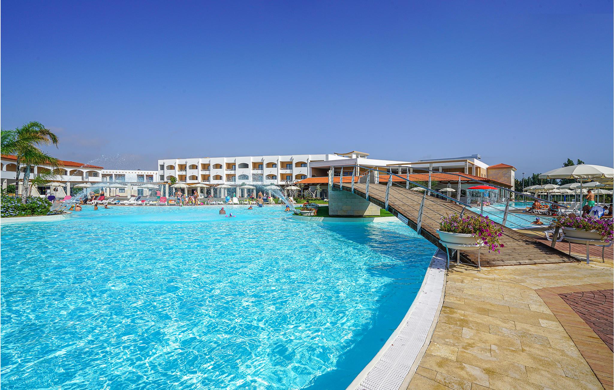 Velkommen til et feriekompleks fuld af aktivitetsmuligheder. Her er pool, udendørsteater, wellnessområder og kun 350 meter til den gyldne sandstrand og det azurblå hav.