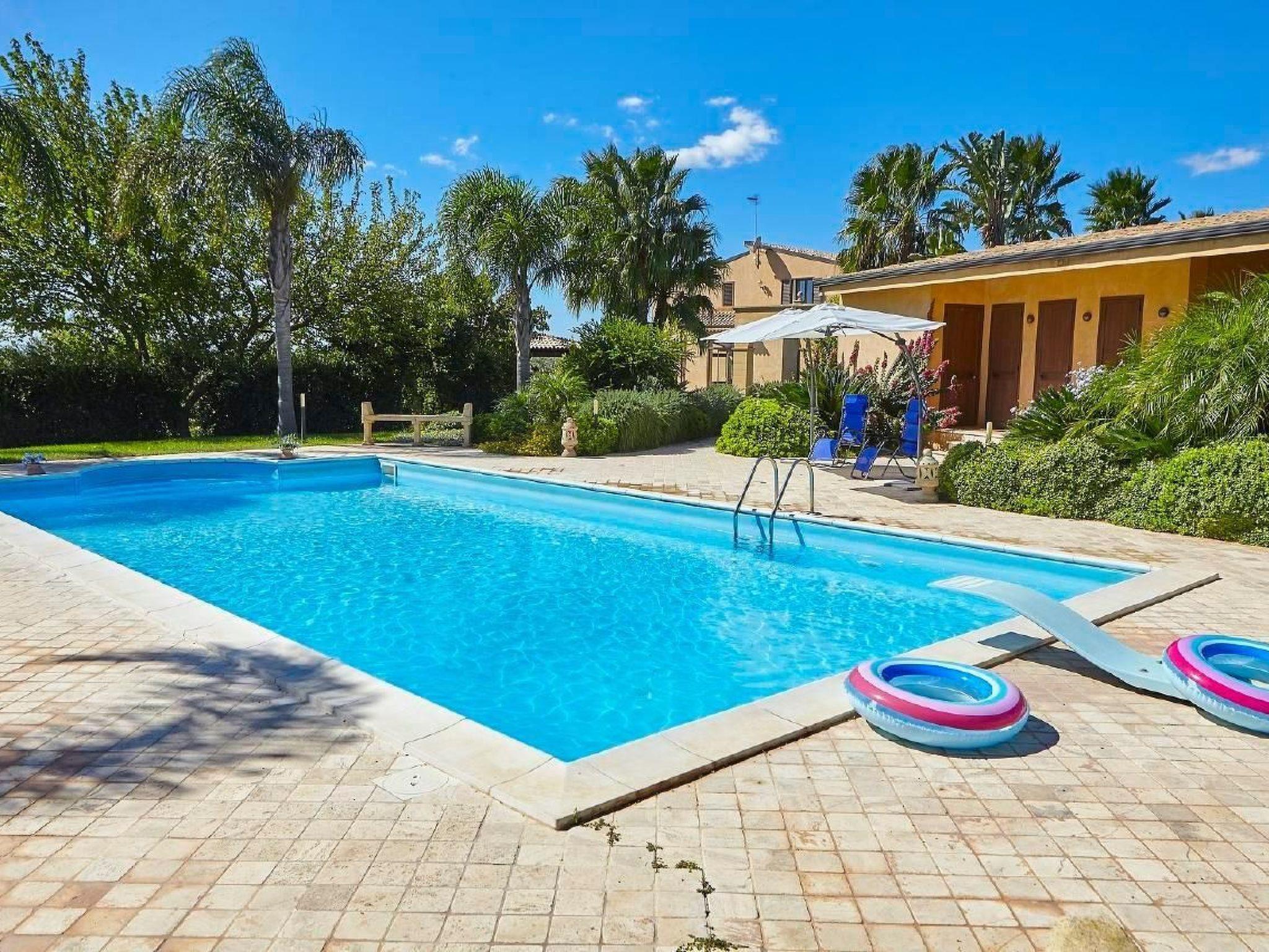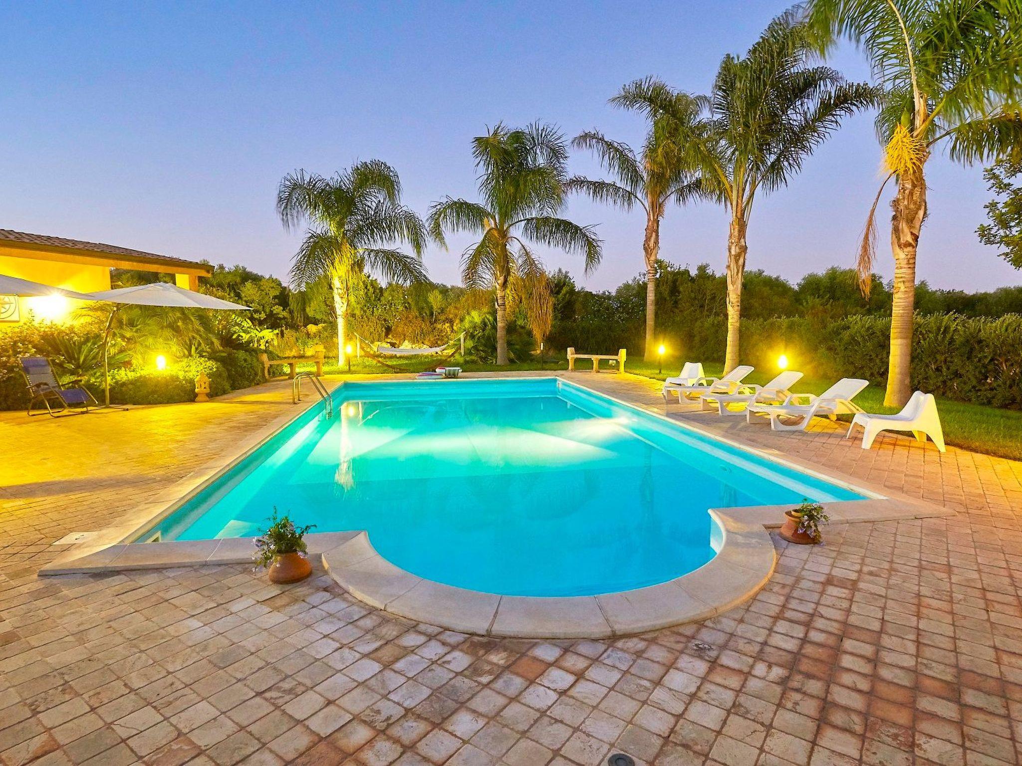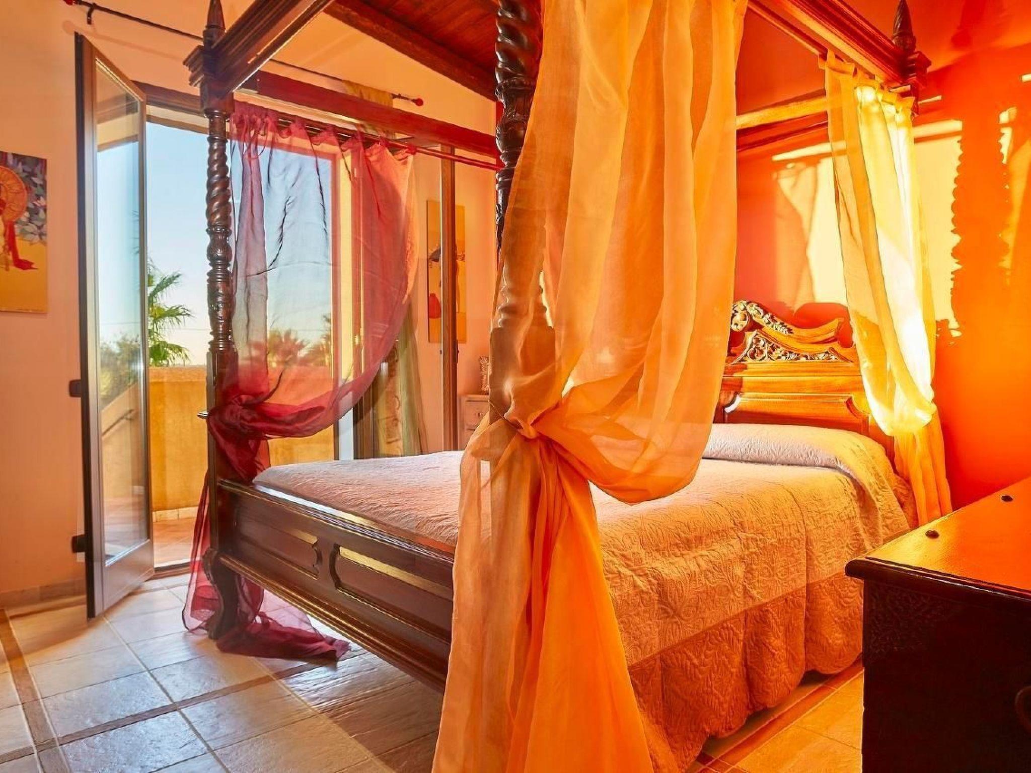 The villa is structured on two levels, you enter inside from the large and bright living room that is divided into different zones: dining, relaxing, reading corner. The furnishings take a vague inspiration from Oriental style according to the taste of the owner, even if some details recall the Sicilian culture and traditions. The large kitchen, appointed with attention to the smallest detail, overlooks the dining area and the large windows allow guests to enjoy the beautiful and lush vegetation that surrounds the villa and the wonderful colors of the flowers and plants that grow in the oasis. It should also be remembered that the villa is dipped in a property of 14,000 square meters of land, cultivated with olive groves, vineyards and fruit trees.The bedrooms are four, two double bedrooms and two twin bedrooms. There are two bathrooms, one with shower on the ground floor and one with tub on the first floor.Short description 1Number of kitchens : 1