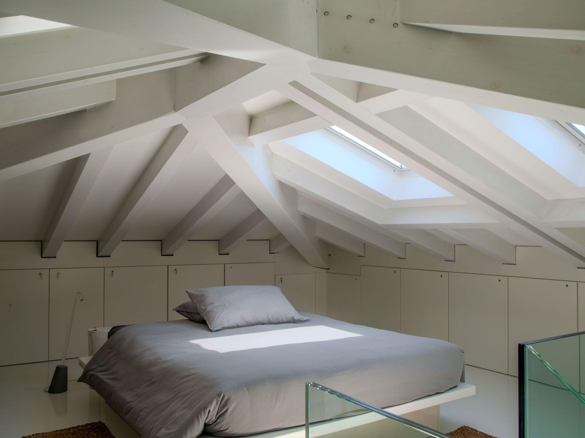 Loft with exposed beams and roof windows for a pleasant, light-filled ambience