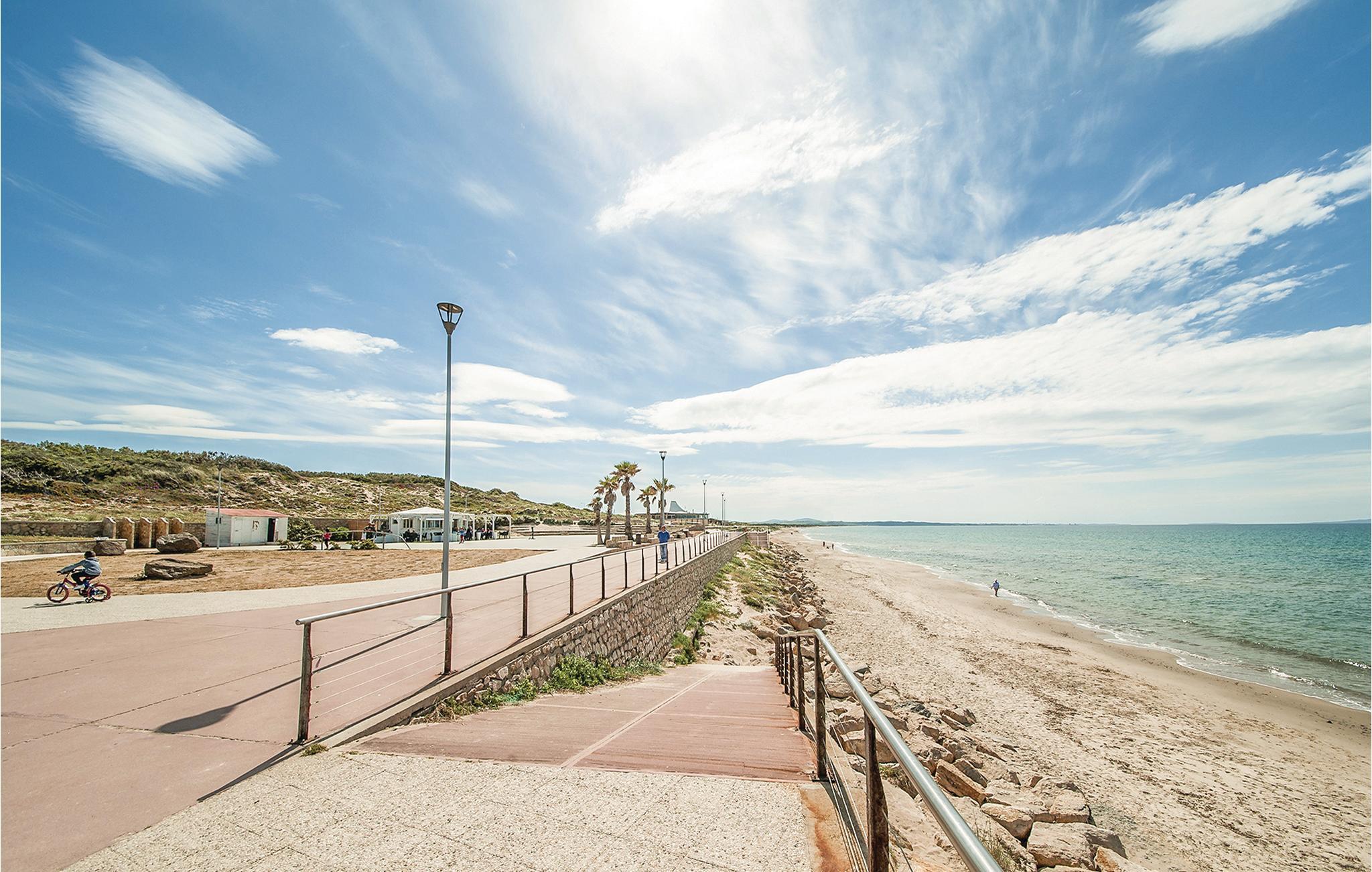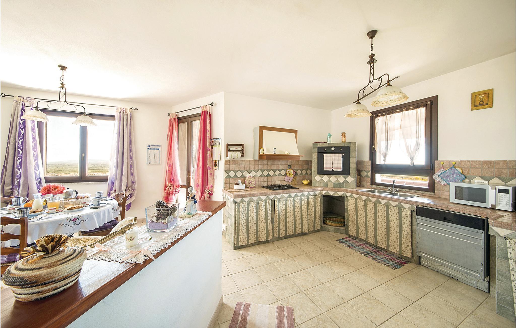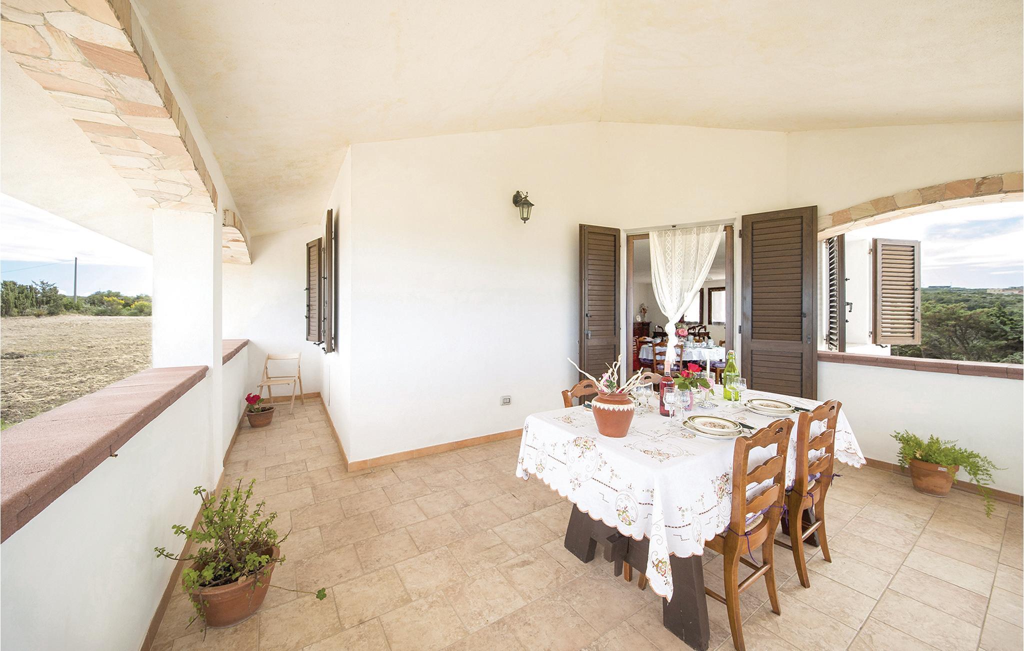 Ferielejlighed i et dobbelthus 500 meter fra centrum af Sennori med smuk udsigt over Asinarabugten. Til jeres rådighed er en skøn overdækket panoramaterrasse med bord og stole til udendørs spisning. Derudover er der rummelige udendørsarealer med havemøbler og grill til fælles brug. Det er den ideelle bolig for store familier og gæster, der rejser med husdyr. Nyd en ferie omgivet af grønne områder tæt på kysten, som ligger kun 6 km væk. Sassari, den næststørste by på øen med et charmerende historisk centrum, ligger kun 13 km væk. Den berømte Porto Torres (20 km) byder på smukke strande og en havn med forbindelser til Korsika og den nærliggende ø Asinara, som er en nationalpark. I omgivelserne kan I også arrangere bådture, dykning, ridning eller fiskeri. I Sennori finder I butikker og tjenesteydelser af enhver art. Ejendommen er beliggende på mezzaninen i et to familiehus, hvor ejerne også bor. En trappe med syv trin fører til indgangen.
