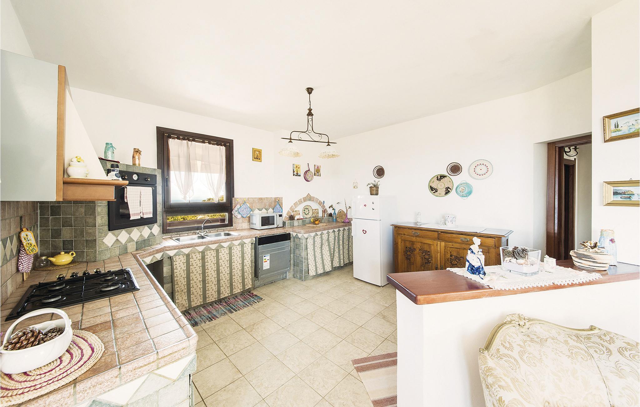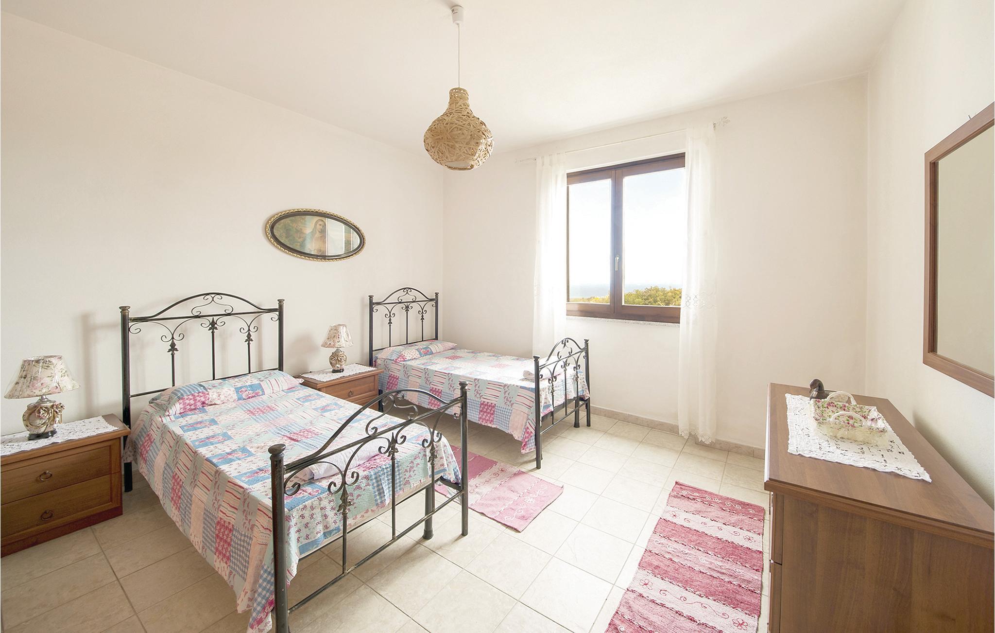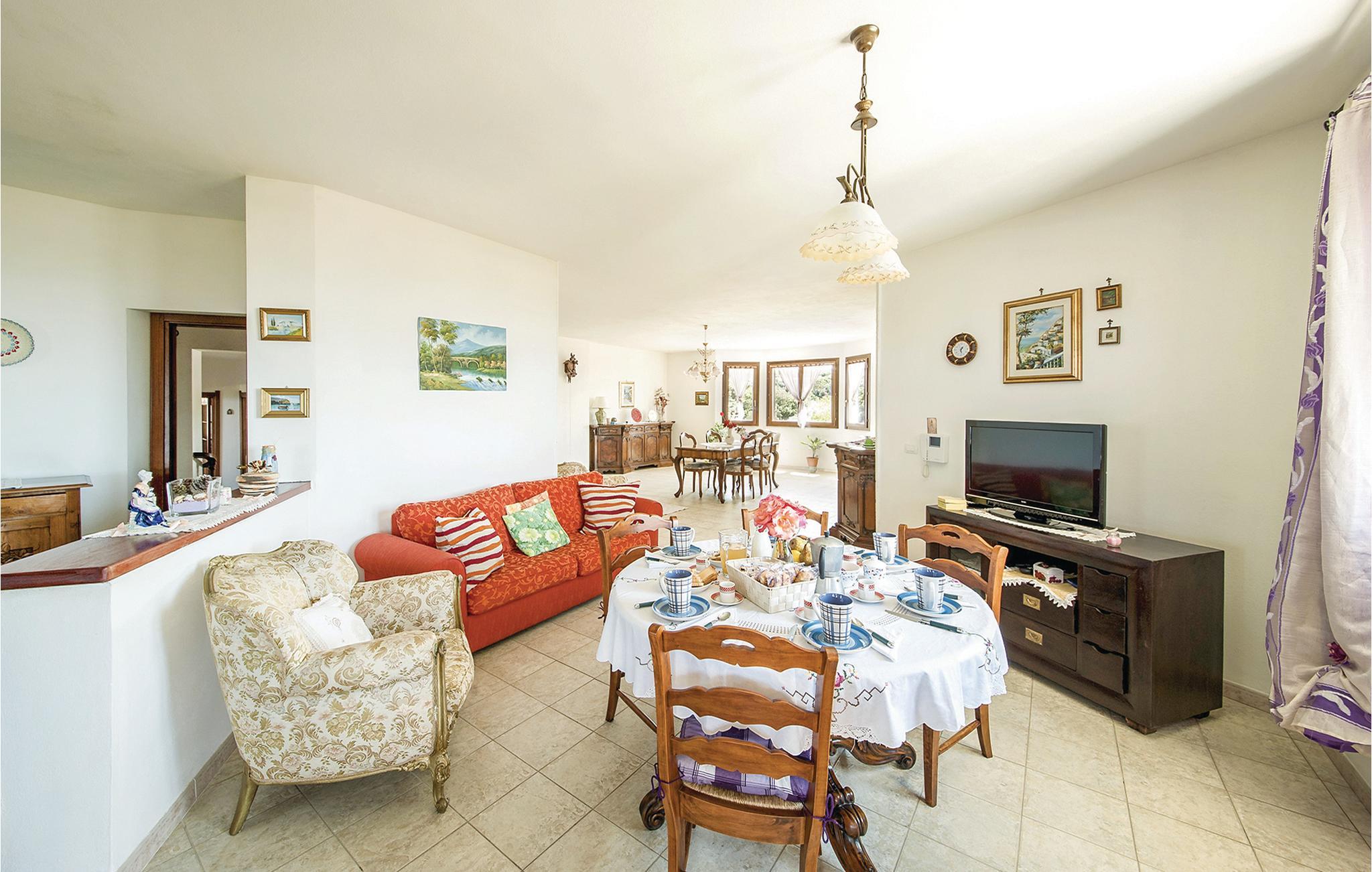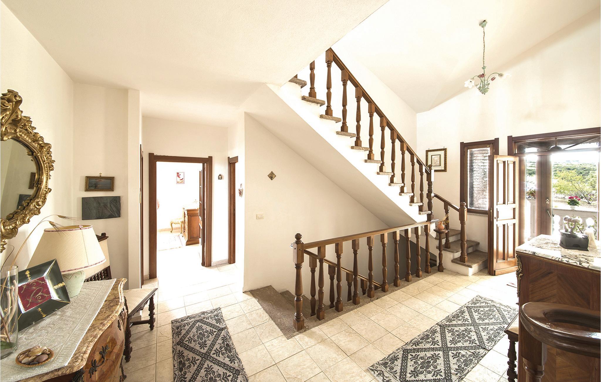 Ferielejlighed i et dobbelthus 500 meter fra centrum af Sennori med smuk udsigt over Asinarabugten. Til jeres rådighed er en skøn overdækket panoramaterrasse med bord og stole til udendørs spisning. Derudover er der rummelige udendørsarealer med havemøbler og grill til fælles brug. Det er den ideelle bolig for store familier og gæster, der rejser med husdyr. Nyd en ferie omgivet af grønne områder tæt på kysten, som ligger kun 6 km væk. Sassari, den næststørste by på øen med et charmerende historisk centrum, ligger kun 13 km væk. Den berømte Porto Torres (20 km) byder på smukke strande og en havn med forbindelser til Korsika og den nærliggende ø Asinara, som er en nationalpark. I omgivelserne kan I også arrangere bådture, dykning, ridning eller fiskeri. I Sennori finder I butikker og tjenesteydelser af enhver art. Ejendommen er beliggende på mezzaninen i et to familiehus, hvor ejerne også bor. En trappe med syv trin fører til indgangen.