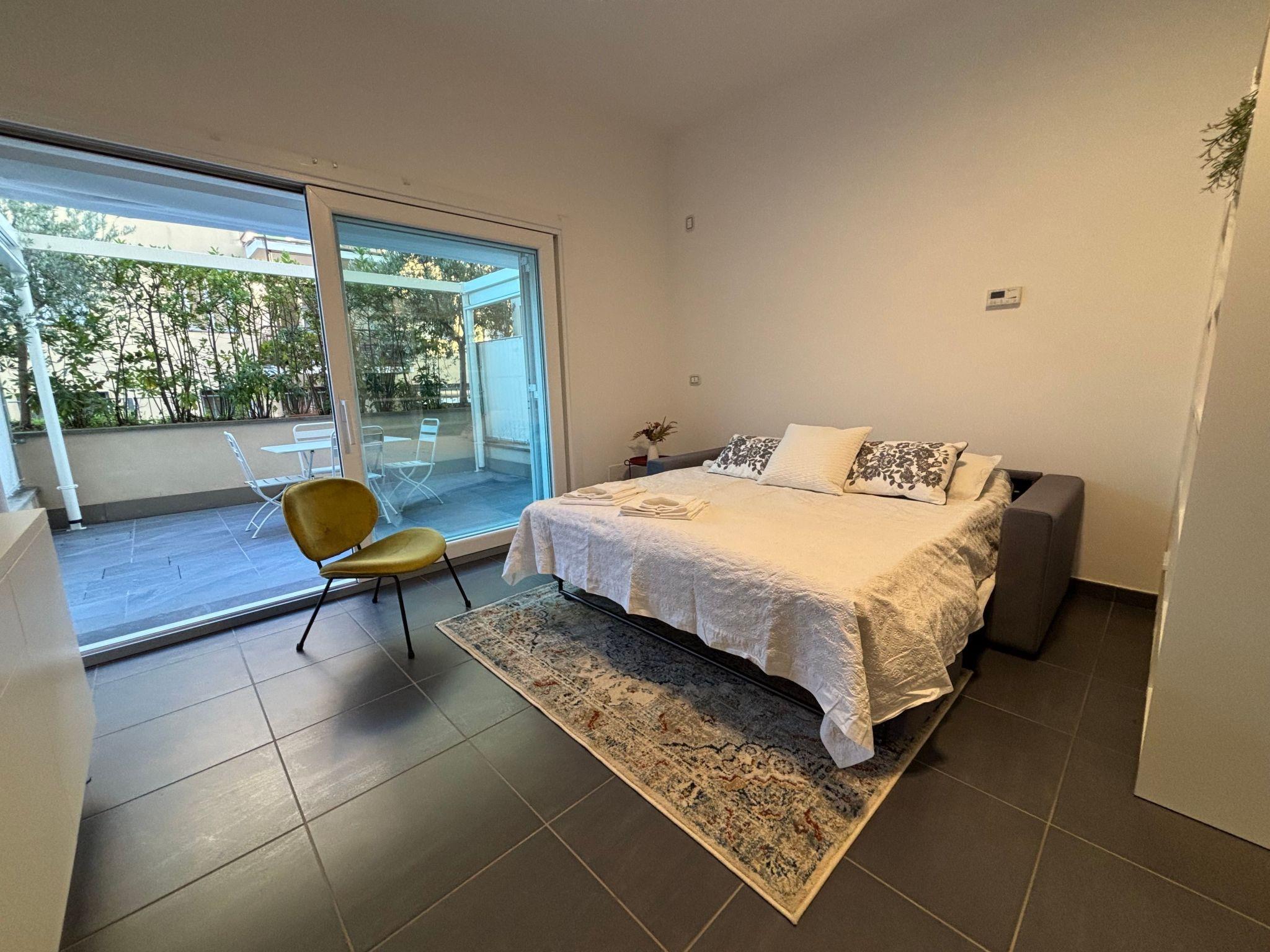 Casa Fruk is an elegant and cosy studio located on the ground floor of a small building a few metres from the sea in Sestri Levante. The modern and functional studio consists of a living/bedroom area with a double sofa bed, a foldaway bunk bed, a kitchenette with dining area and a bathroom. Casa Fruk also has a large terrace, where you can dine al fresco, sunbathe and enjoy moments of conviviality with your loved ones.