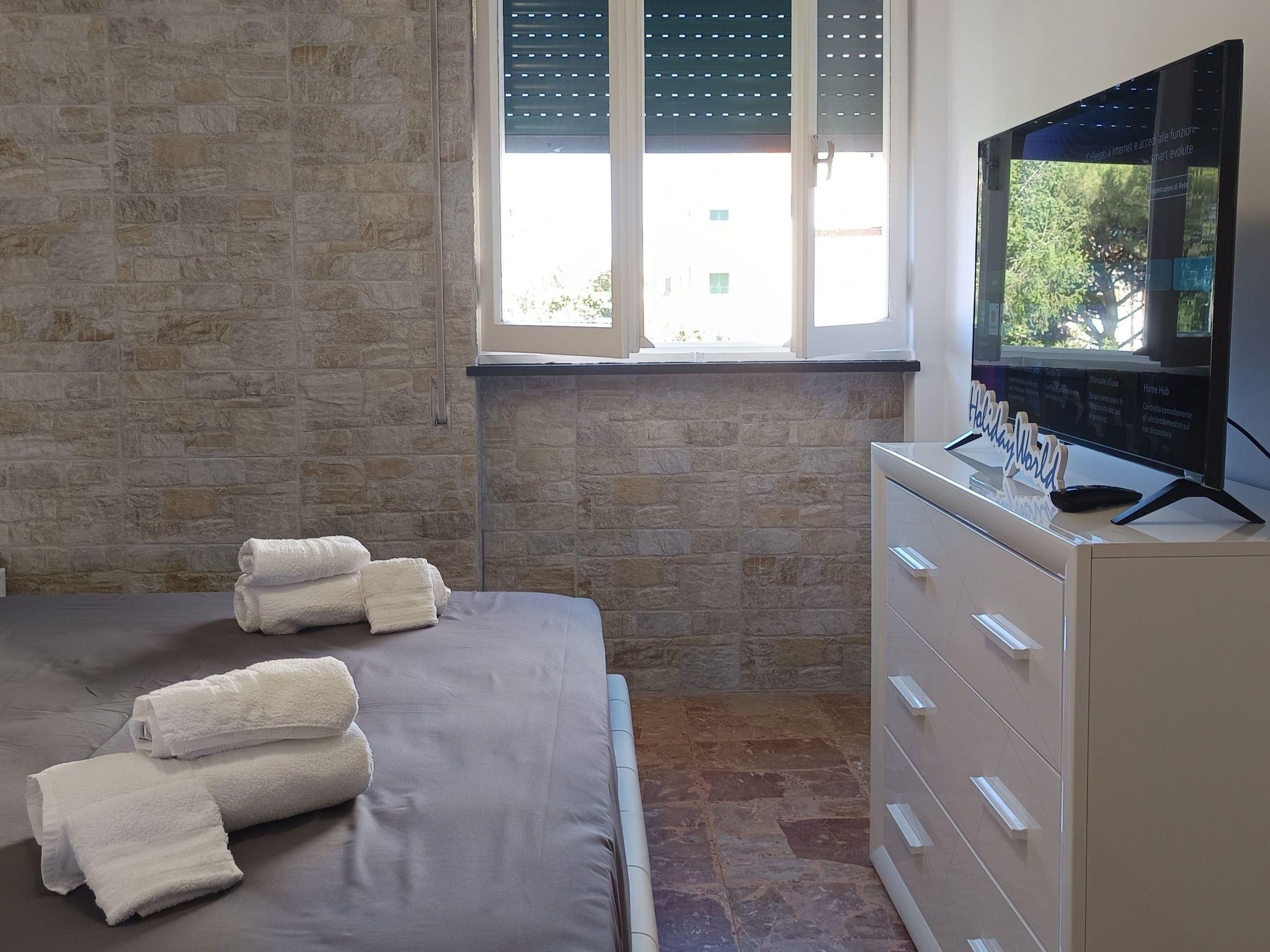 Welcome to this bright, recently renovated 130 sqm flat, located in Via Antica Romana Occidentale, in a strategic position for reaching the historic centre, the beaches and the main roads. The apartment is located on the second floor served by a lift, and is perfect for those seeking space, comfort and tranquillity. It consists of three spacious bedrooms, a large living area with a comfortable sitting room, an eat-in kitchen, two windowed bathrooms, a livable terrace for relaxing outdoors and a balcony. The flat is equipped with WI-FI, TV and all amenities for short or long stays. A large communal car park is available a few steps away, convenient and always accessible. The area is quiet but well served: supermarkets, shops, bars and bus stops are within easy walking distance.