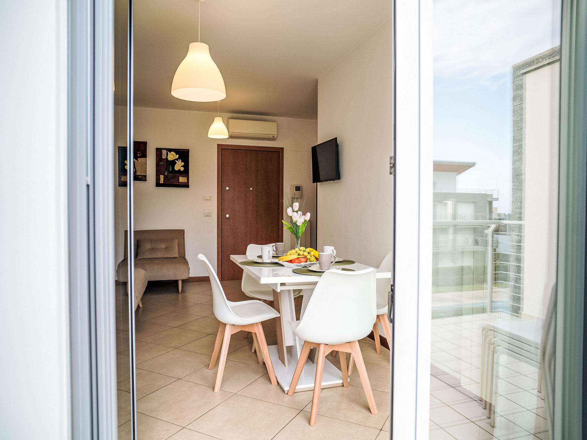 "Le Dune Silvi Mare", 3-room terraced house 55 m2 on 2nd floor. Bright, fully renovated, very modern furnishings: living/dining room with digital TV and air conditioning. Exit to the terrace. 1 double bedroom. Exit to the terrace. 1 room with 2 beds. Open kitchen (4 gas rings, toaster, kettle). Exit to the terrace. Shower/bidet/WC. Heating. Marvellous panoramic view of the sea and the swimming pool. Facilities: washing machine, hair dryer. Internet (WiFi). Maximum 1 pet/ dog allowed. IT067040C2AMUFRD3Q