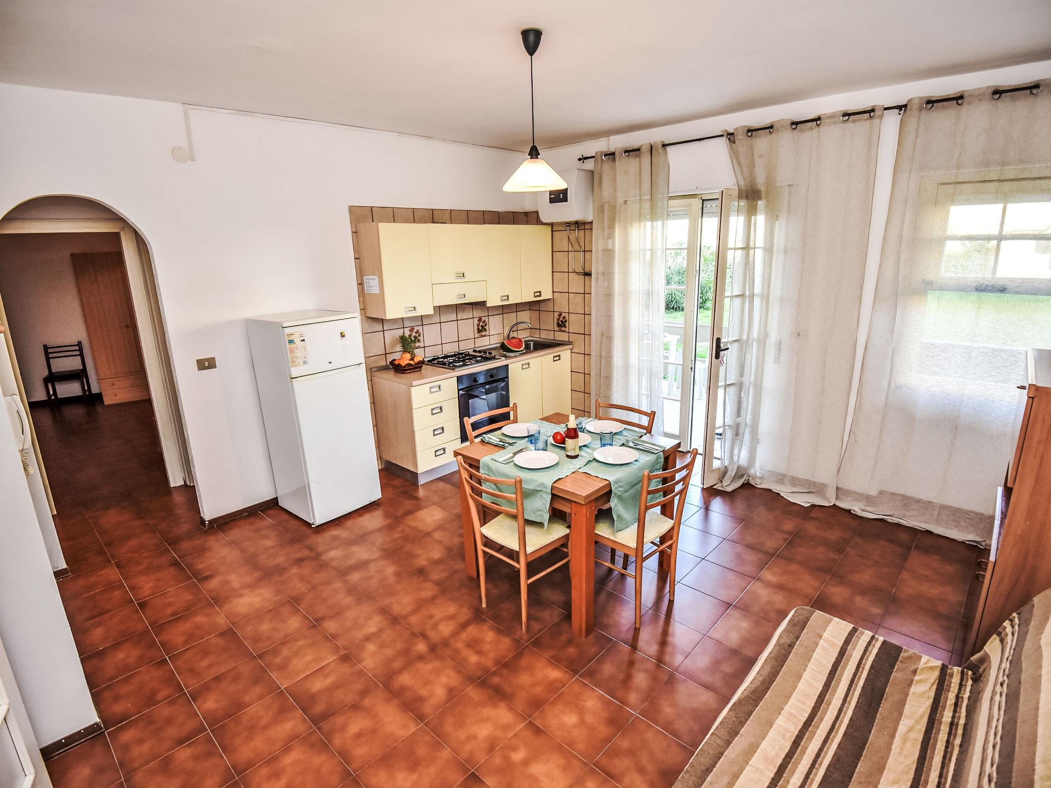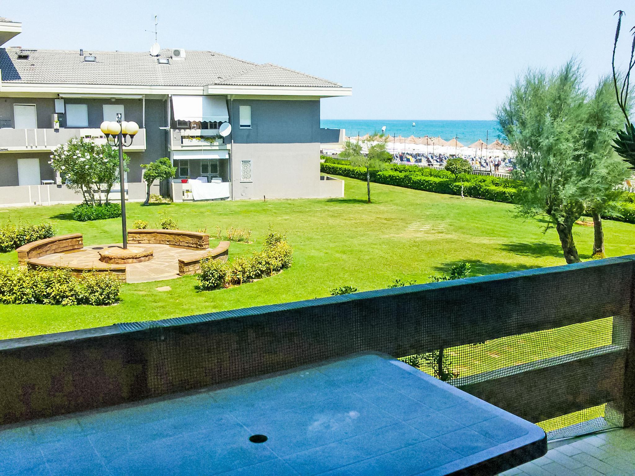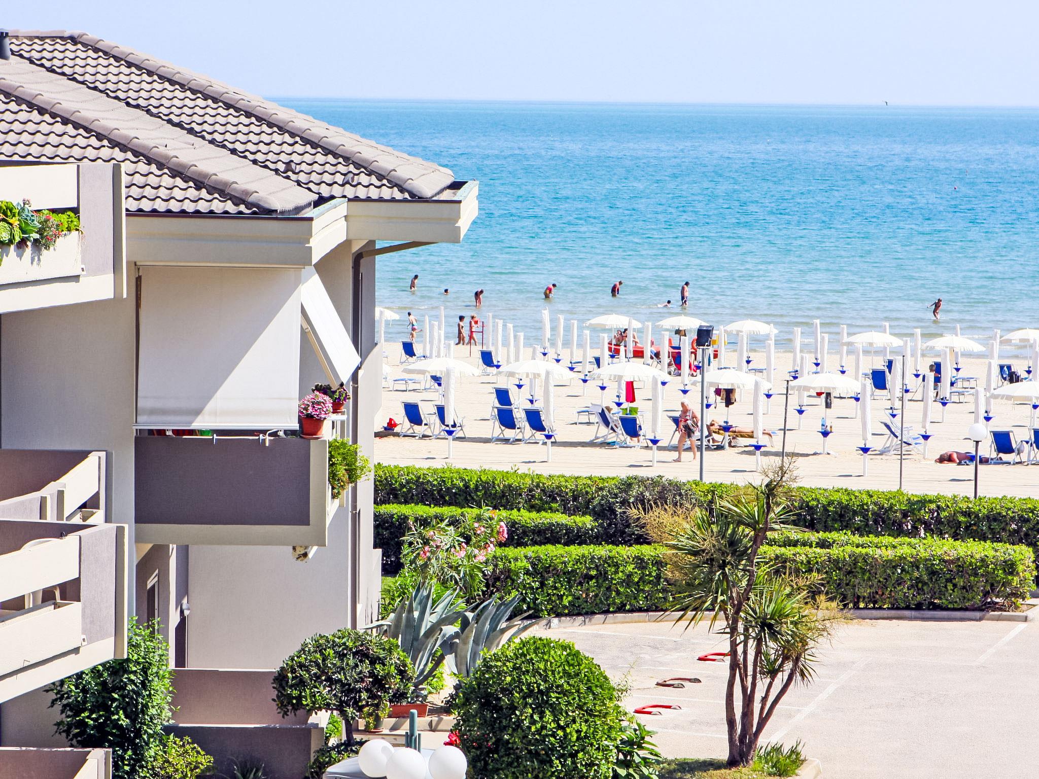 Holiday development "Green Marine, Palme, Ismare". 2 km from the centre of Silvi Marina, 50 m from the sea, 50 m from the beach. For shared use: garden, parking (limited number of spaces, extra). Grocery, restaurant, bar 100 m, bus stop 2.3 km, sandy beach 50 m. Nearby attractions: Pescara. Please note: no lift. The photograph shows a typical example.